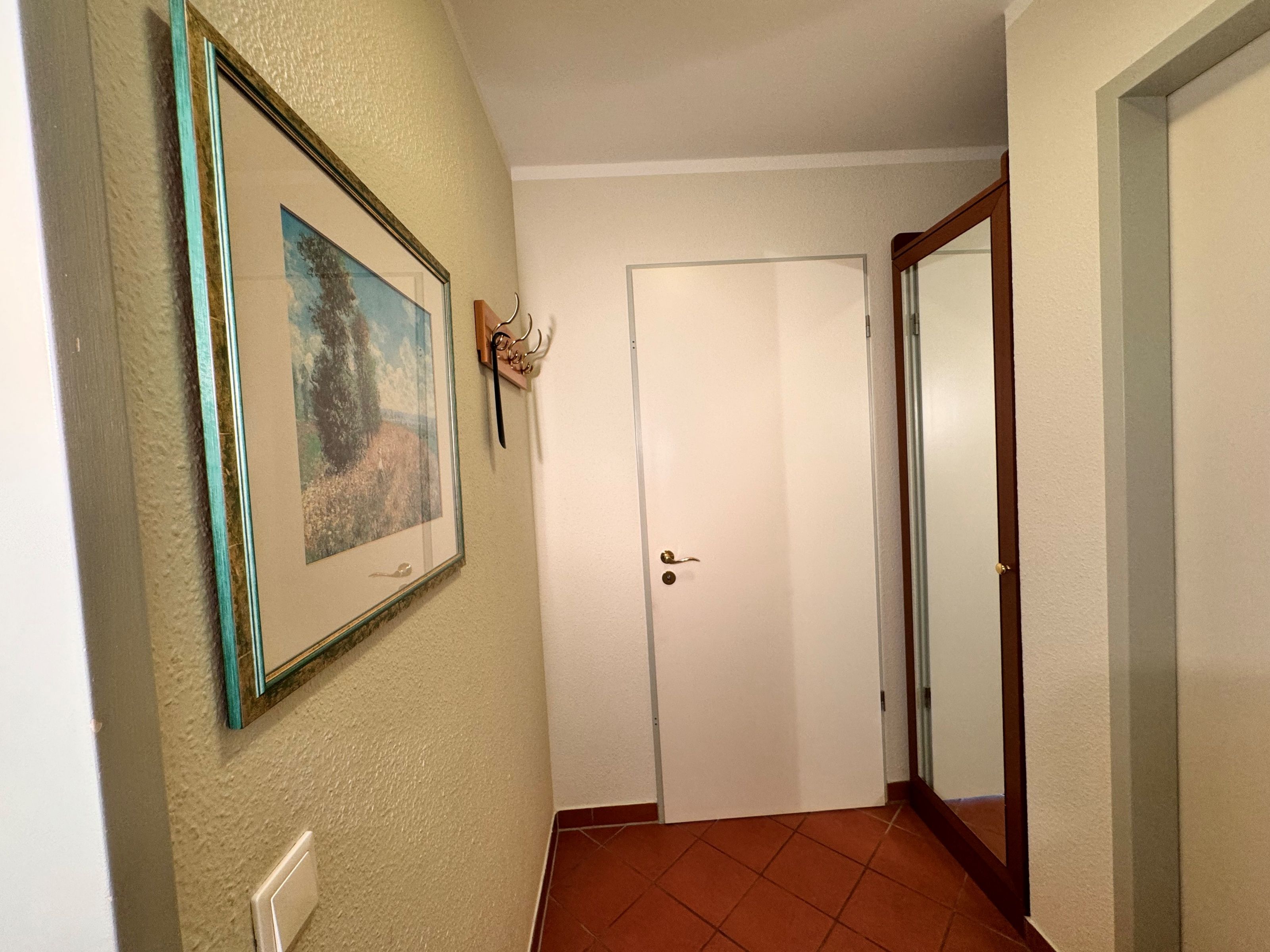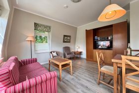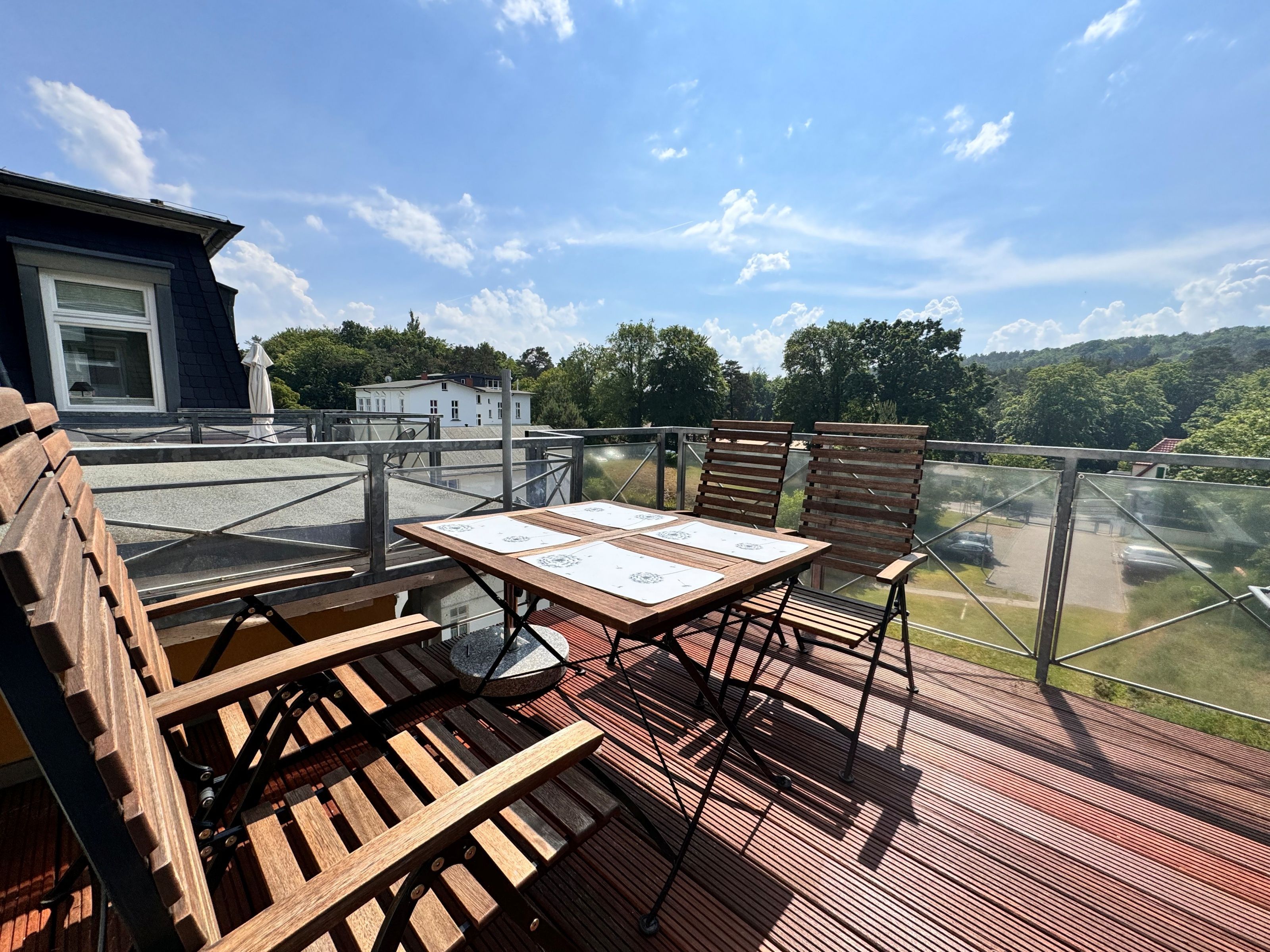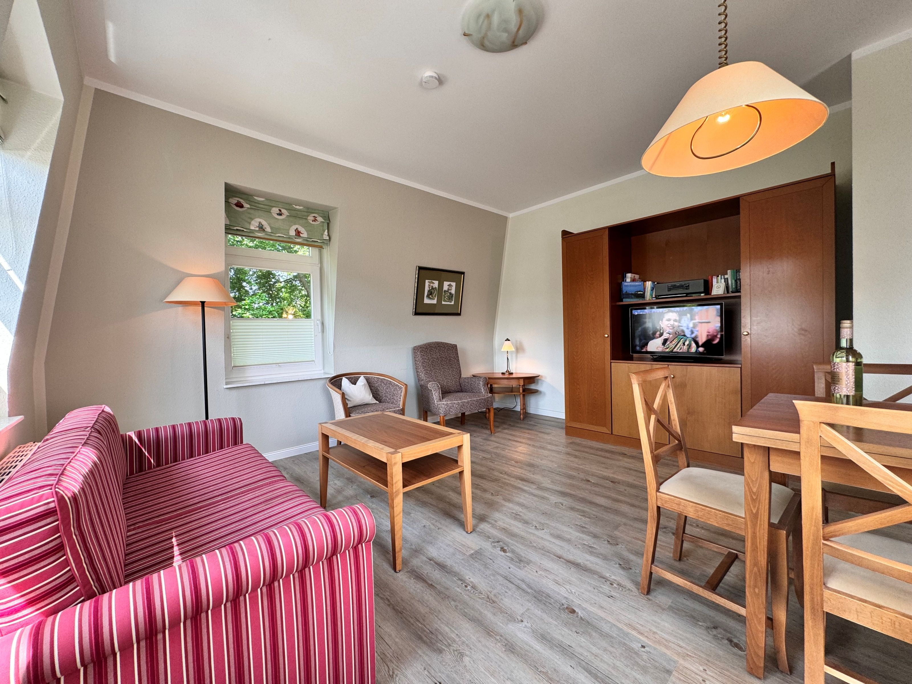 Freundlich und charmant - mit einer großzügigen Fläche von 58 qm im zweiten Obergeschoss bietet es Ihnen einen hellen Wohnbereich, der mit einer bequemen Doppelschlafcouch, einem einladenden Essplatz und einer TV-HiFi-Anlage ausgestattet ist. Das Schlafzimmer mit einem gemütlichen Doppelbett sorgt für erholsame Nächte, während das Duschbad/WC, auch wenn es ohne Fenster ist, durch seine Funktionalität überzeugt. In der voll ausgestatteten offenen Küche finden Sie alles, was Sie für Ihren Aufenthalt benötigen, darunter einen Ceranherd, Backofen, Kühlschrank mit Tiefkühlfach, Geschirrspüler, Mikrowelle, Kaffeemaschine, Toaster und Wasserkocher. Ein Highlight ist der große, möblierte Balkon zur sonnigen Südseite, der perfekt ist, um die warmen Sonnenstrahlen zu genießen und Ihren Urlaub in vollen Zügen auszukosten.
