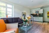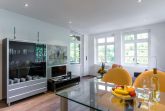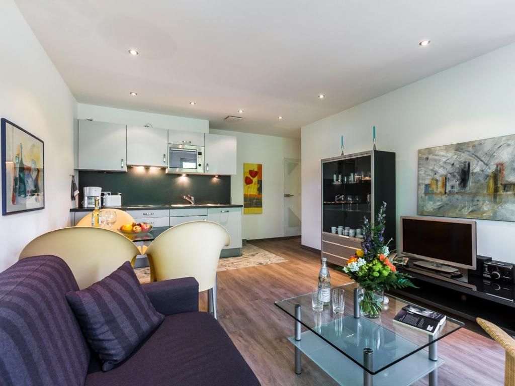 Ankommen und Wohlfühlen verspricht das 2-Raum-Appartement 6 in der strandnahen Villa Höger. Es empfängt Sie auf einer Wohnfläche von 45qm ein heller, mit kunstvollen Bildern dekorierter Wohn-/Essbereich. Machen Sie es sich bequem auf der behaglichen Couch, lesen ein Buch, genießen nach einem Strandtag vielleicht einen gemütlichen Flatscreen Fernsehabend oder hören Sie entspannt Musik. Selbstverständlich können Sie auch den kostenfreien WLAN - Zugang nutzen. Während der wärmeren Jahreszeit chillen Sie bestimmt gerne auf der überdachten Loggia in Richtung Seeseite, die Sie direkt vom Wohnbereich, wie auch vom Schlafzimmer erreichen.