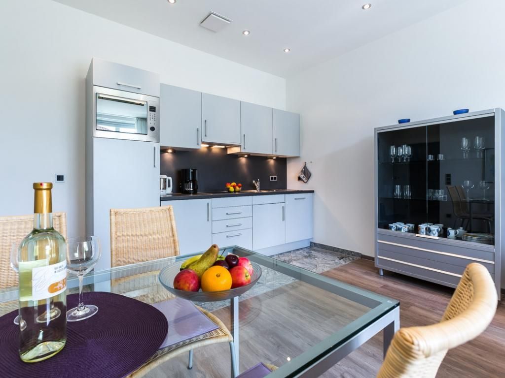 Nur 30 Meter zum feinsandigen Badestrand, der sich über eine länge von vier Kilometern erstreckt, befindet sich in der Villa Höger das 2-Zimmer Komfortappartement Nr.4 mit Balkon. Die Wohnfläche beträgt 45qm. Die hervorragend ausgestattete Ferienwohnung ist ideal für 2 Personen. Es empfängt Sie ein charmant möblierter Wohn-/Essbereich mit hochwertiger Möblierung. Flachbild Fernseher sowie Musikanlange sind ebenso vorhanden und Internet über WLAN können Sie kostenfrei nutzen. In den Wohnbereich ist eine offene Küchenzeile integriert, die mit Herd, Mikrowelle mit Backfunktion sowie Geschirrspülmaschine, Kaffeemaschine, Wasserkocher usw. ausgestattet ist. Ihre Mahlzeiten nehmen sie an einem Esstisch ein. Geruhsame Nächte verbringen Sie in einem separaten Schlafzimmer mit Doppelbett und Kleiderschrank. Bei Anreise sind als inklusive Service Leistung Ihre Betten bereits für Sie bezogen und auch Handt-/Duschtücher liegen bereit. Ihr Urlaubstag beginnt in einem hochwertigen Duschbad mit Granitbelägen und großen Spiegelflächen. Für die Gäste der Ferienwohnung Villa Höger 4 steht ein reservierter Strandkorb saisonal bereit. Ihren PKW können sie auf einem reservierten Stellplatz in der hauseigenen Tiefgarage abstellen, wohin Sie bequem mit dem gläsernen Fahrstuhl gelangen. Auch ein Fahrradabstellraum ist vorhanden sowie die Möglichkeit der Nutzung von Waschmaschine und Wäschetrockner gegen Gebühr. Sie verbringen Ihren Aufenthalt in einem Nichtraucher Domizil, in dem Haustiere nicht gestattet sind. In naher Umgebung befinden sich zahlreiche Restaurants, Cafe´s sowie Konzertmuschel.