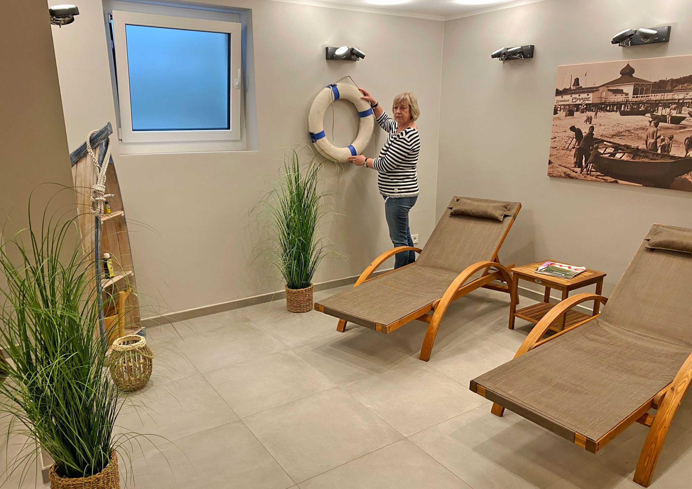 Verwöhnen Sie Ihren Körper auch in der hauseigenen Sauna. Die stilsicher und attraktiv gestaltete Wellnesslandschaft befindet sich im Souterrain der Villa Düne. Sie steht Ihnen (gegen eine kleine Gebühr) für Entspannung und Wohlgefühl zur Verfügung.