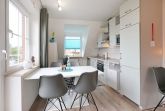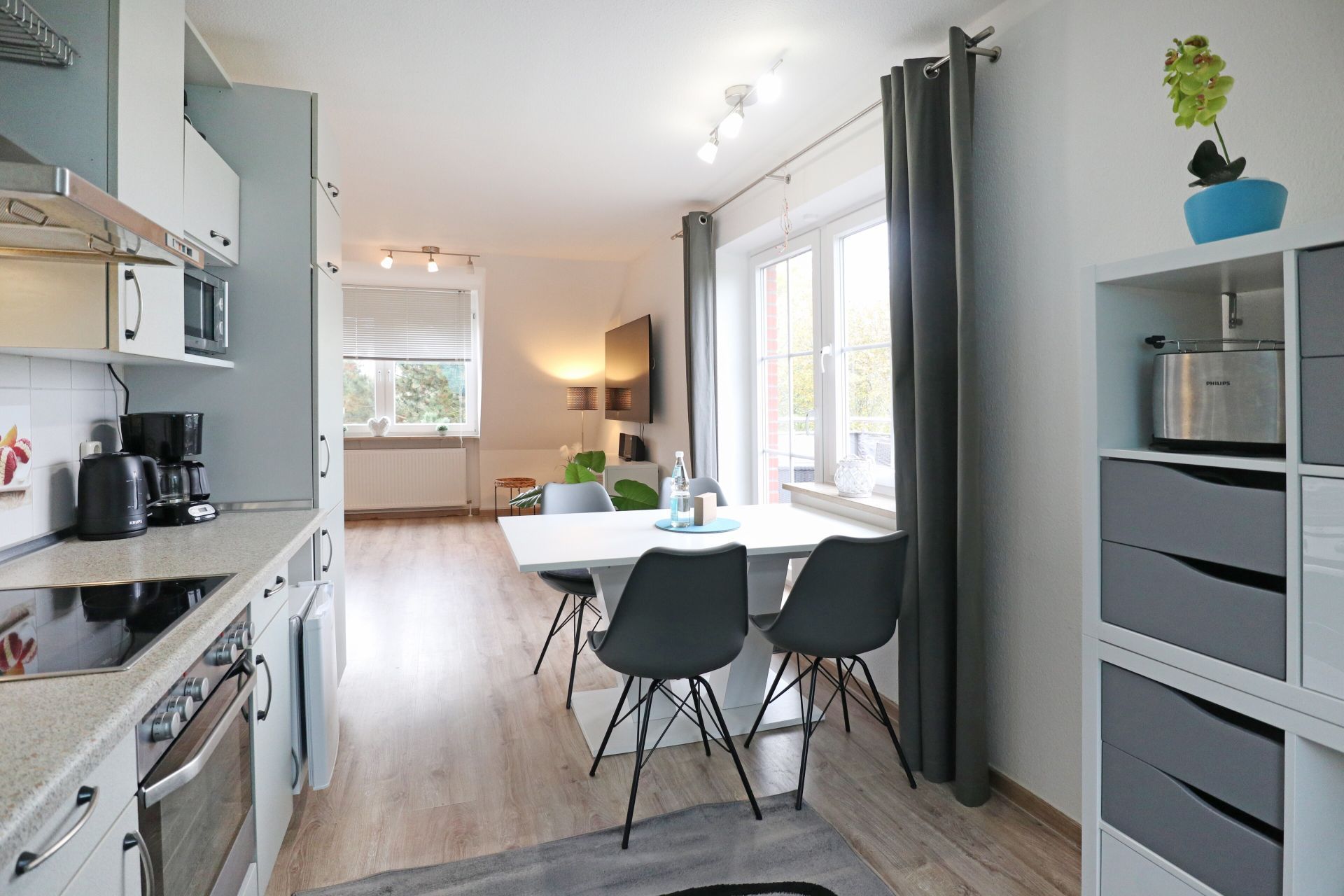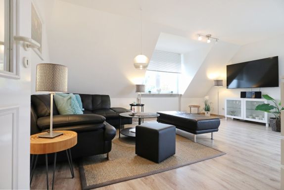 Die komfortabel möblierte 3- Zimmer Ferienwohnung Wiesenblick 5 befindet sich umgeben von Wiesen und Feldern, nur 900 Meter zum Strand an der Steilküste. Das moderne Appartement mit Balkon in westliche Ausrichtung besitzt eine großzügige Wohnfläche von 70qm ist bestens geeignet für bis zu 4 Gäste. Die Wohnung befindet ich im 1. Obergeschoss eines Mehrfamilienhauses. Der helle und schick eingerichtete Wohn-Essbereich verfügt über ein großes Sofa, einen Esstisch sowie Flachbild Fernseher und Musikanlage. WLAN steht Ihnen kostenfrei zur Verfügung. Eine offene Wohnküche ist integriert und voll ausgestattet mit Ceranfeldherd, Backofen, Mikrowelle, Spülmaschine, Kaffeemaschine, Wasserkocher, Toaster usw. Vom Wohnzimmer gelangen Sie auf den saisonal möblierten Balkon, wo Sie wunderbare Sonnenuntergänge erleben können.