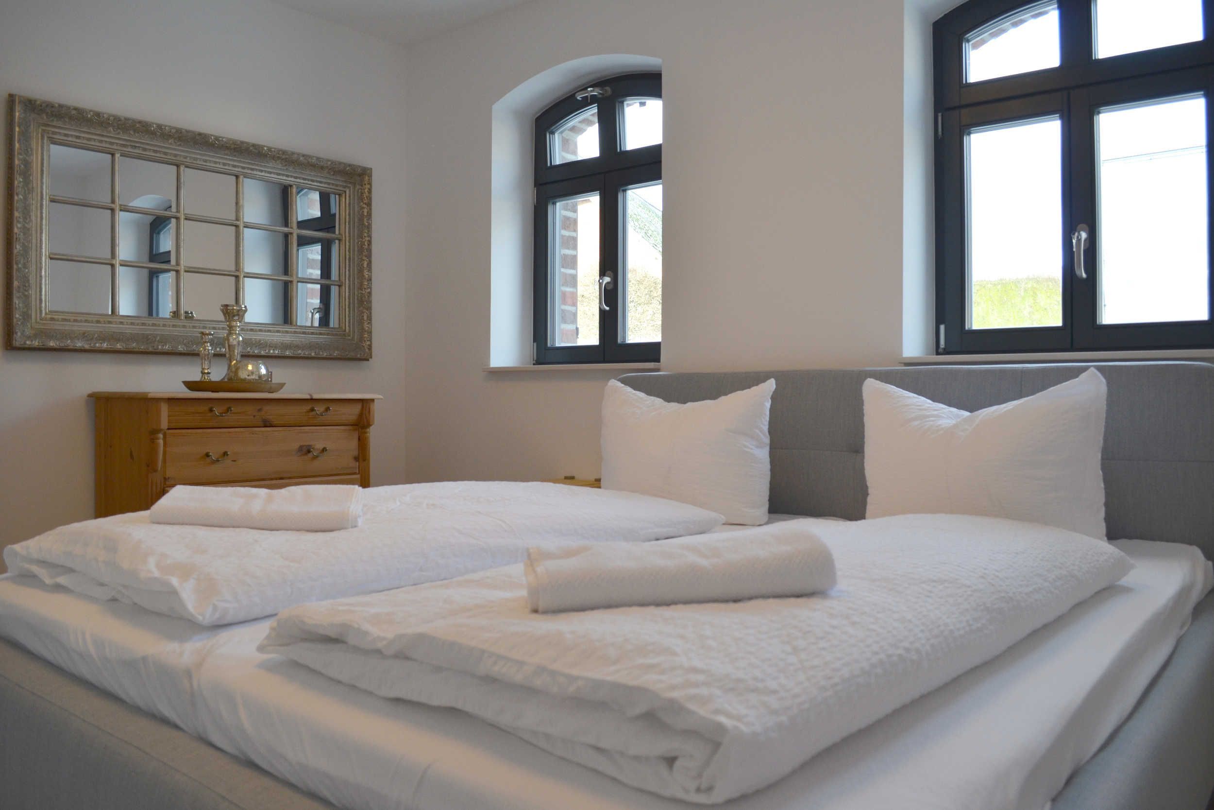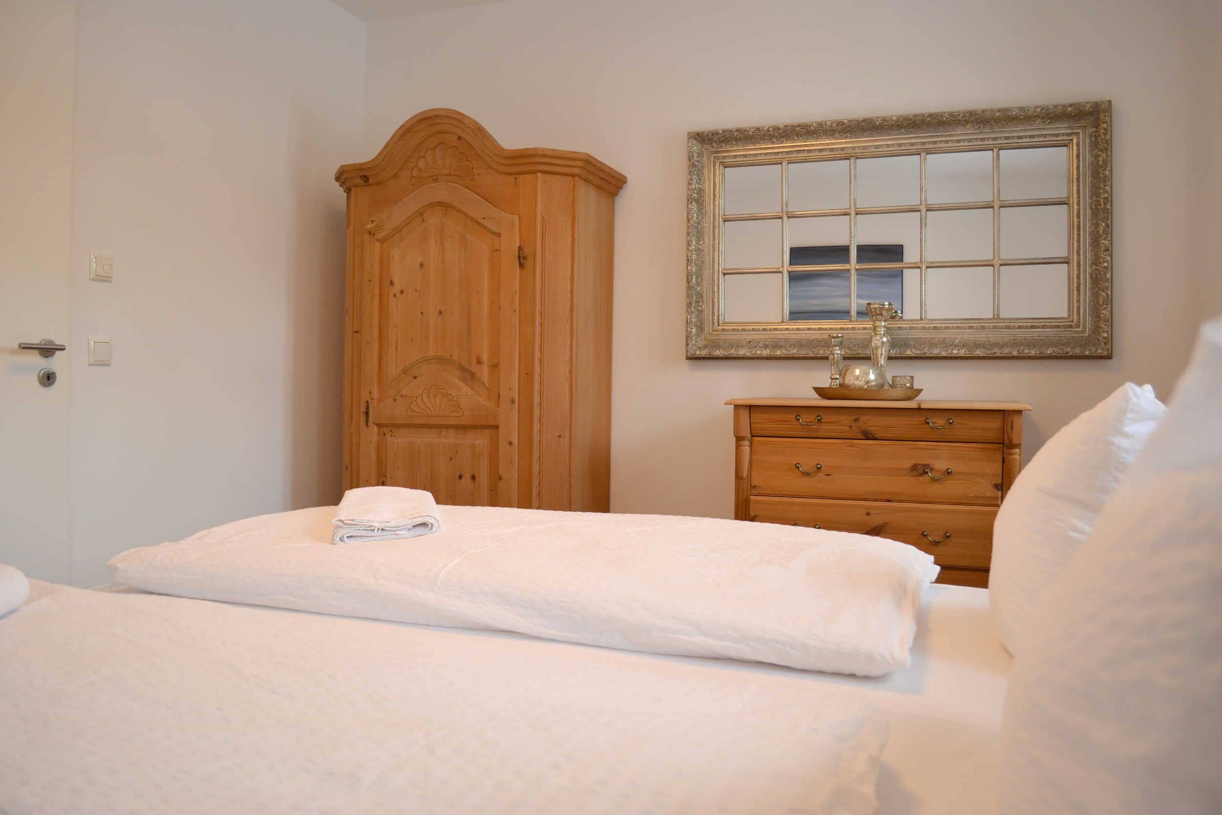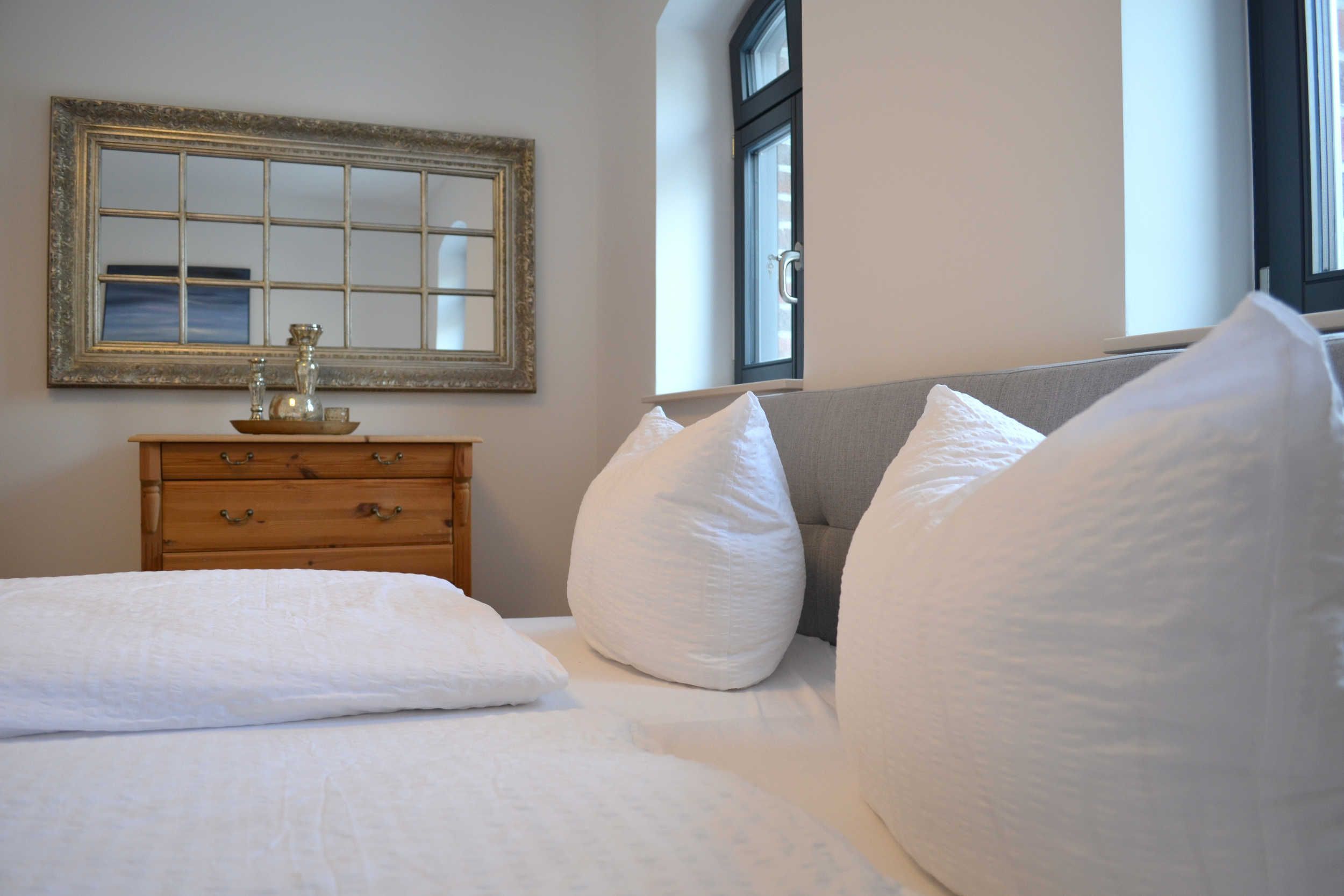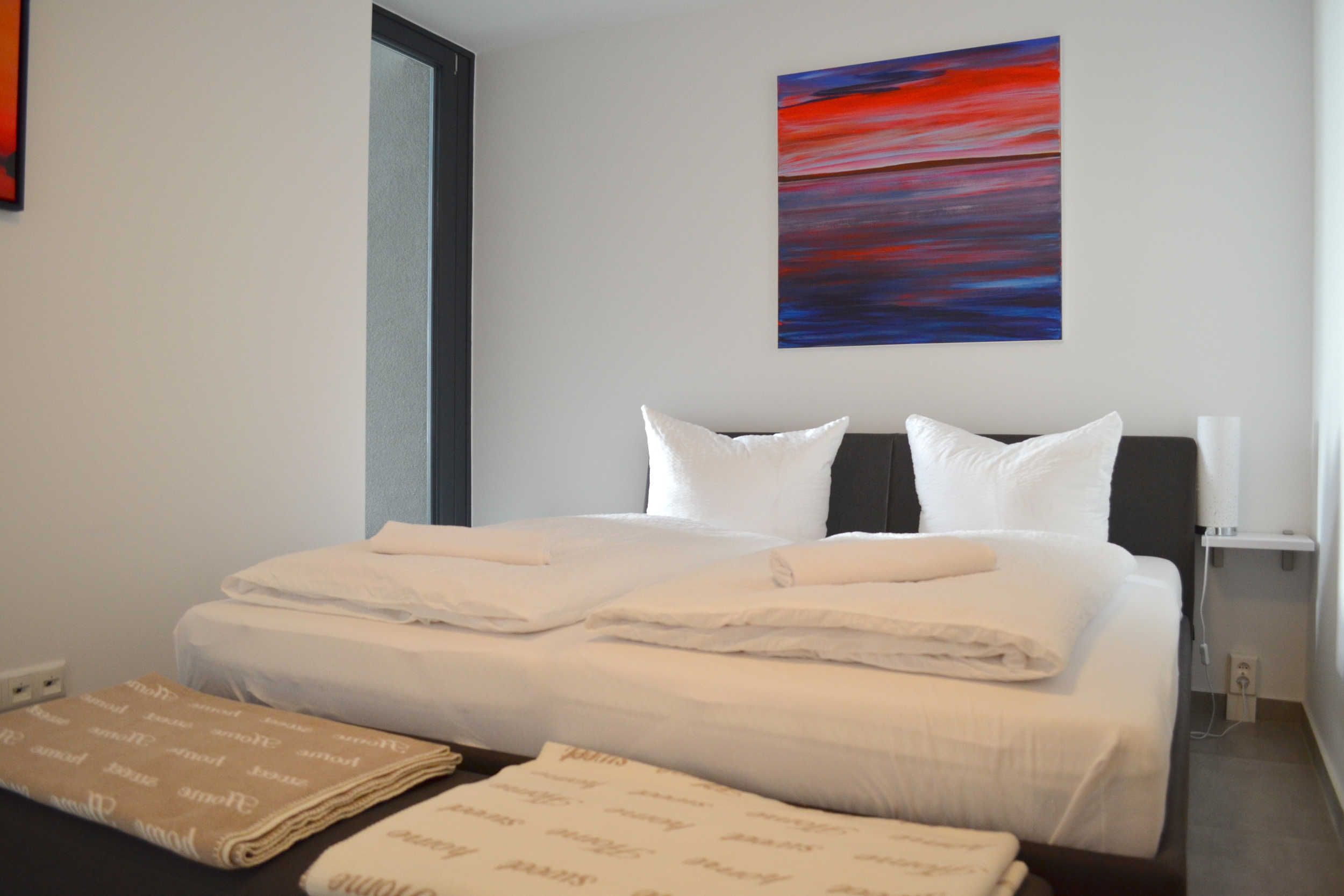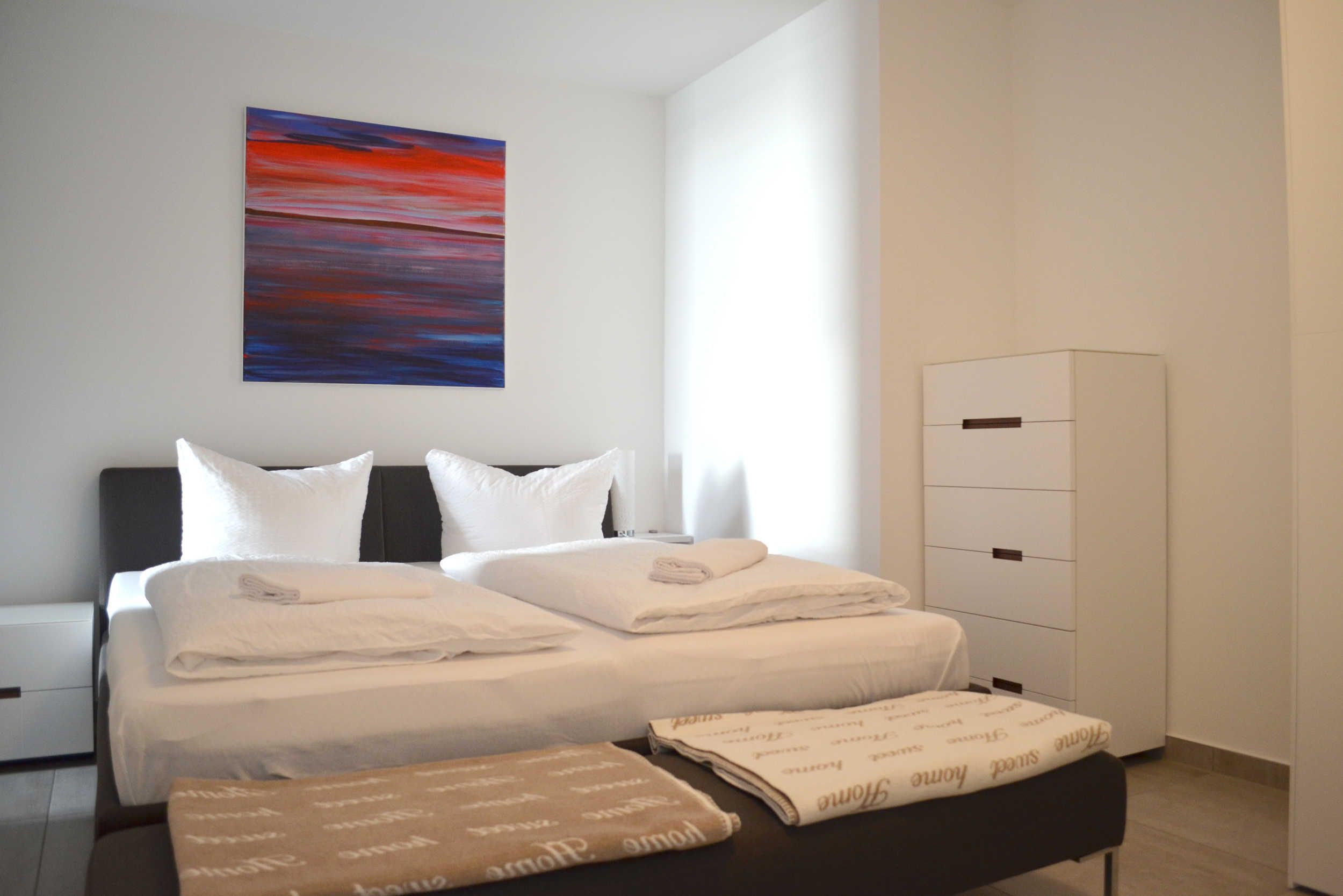 Die beiden Schlafzimmer sind mit jeweils einem gemütlichem Doppelbett (180x200m) sowie Schränken und Kommoden mit reichlich Stauraum eingerichtet und durch den intelligenten Zuschnitt der Wohnung sogar etwas voneinander separiert. Inspirierende Bilder einer irischen Künstlerin in allen Räumen sorgen für Atmosphäre und Klasse. Für Ihr Auto gibt es zudem einen geschützten, kostenfreien Tiefgaragen-Stellplatz.