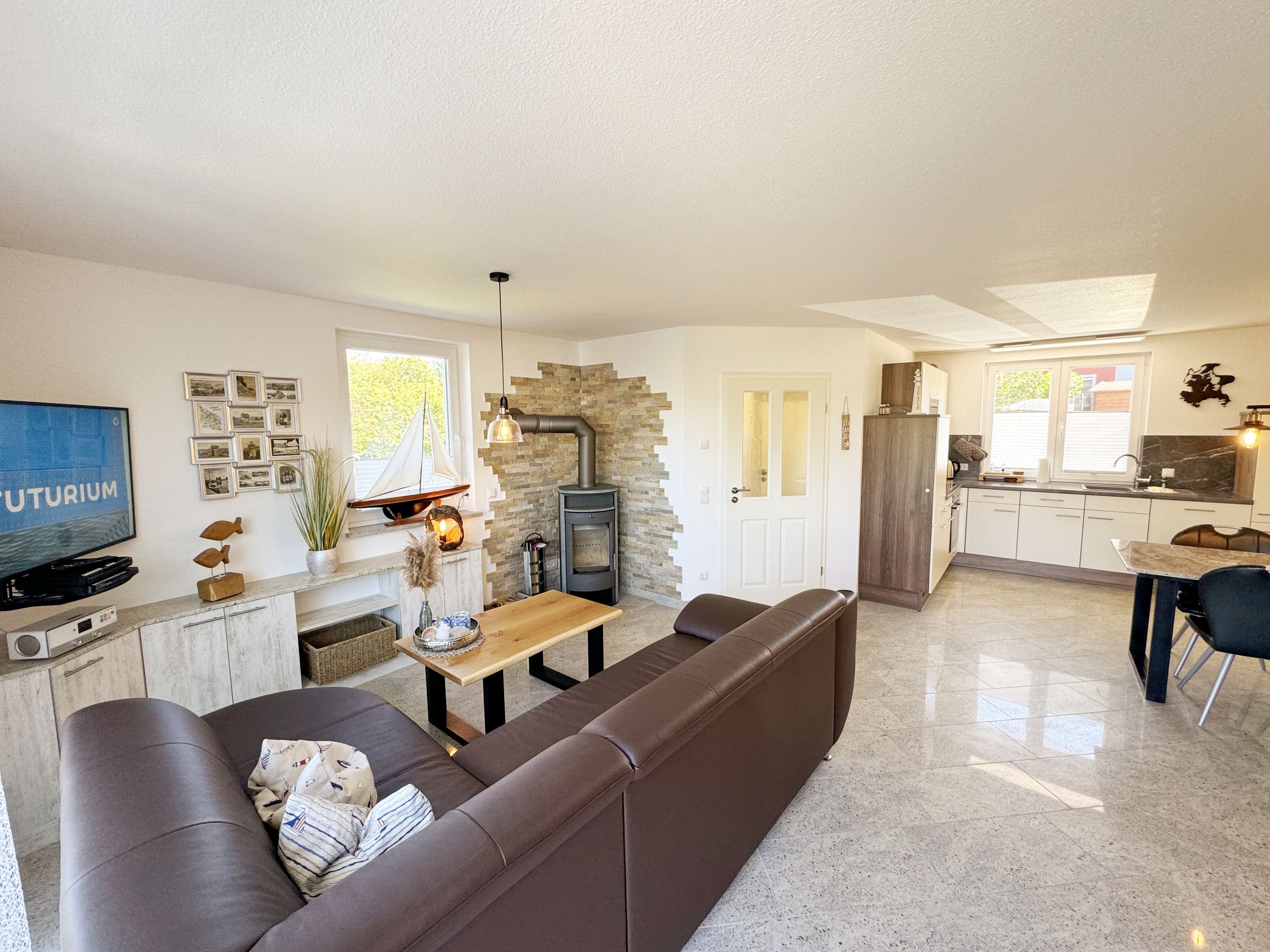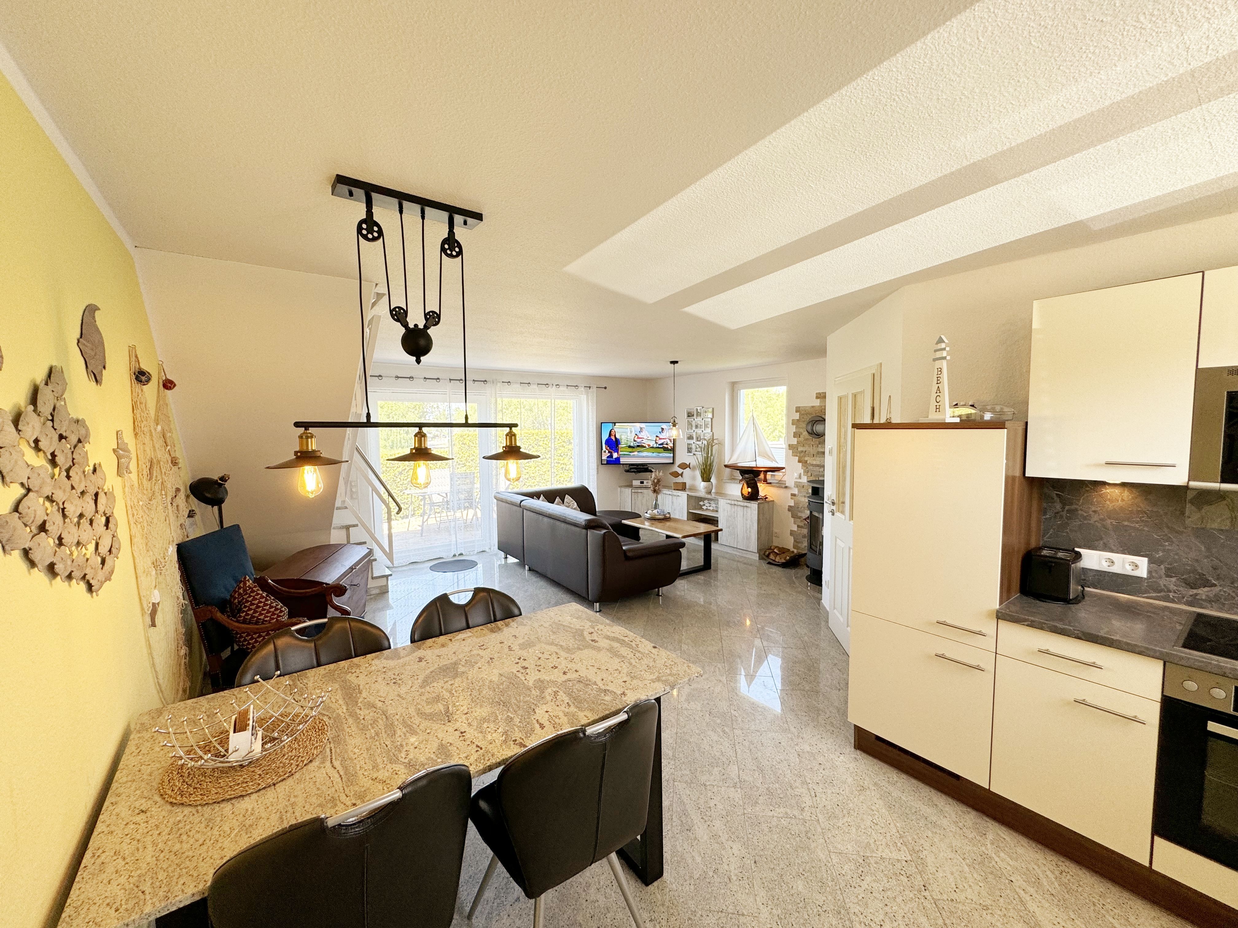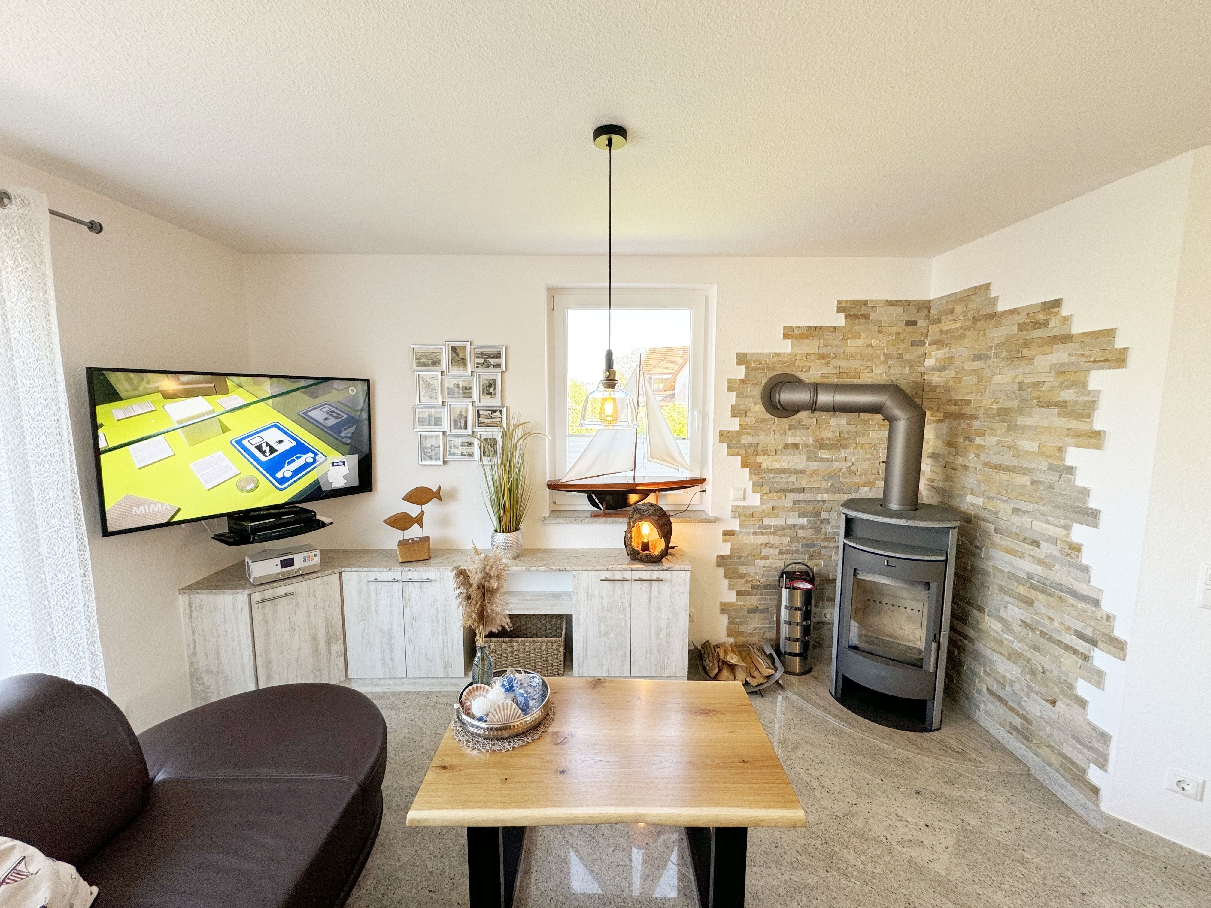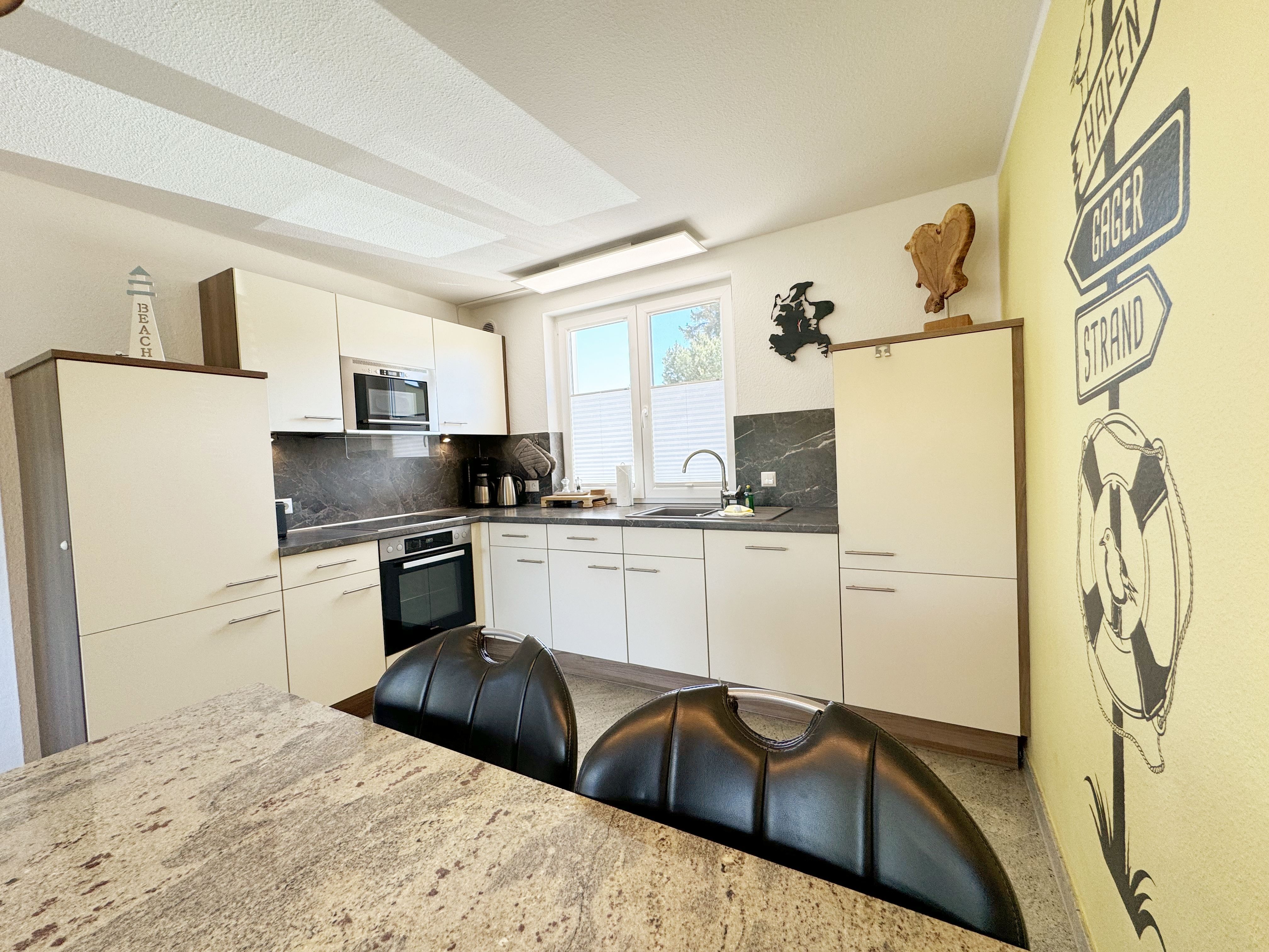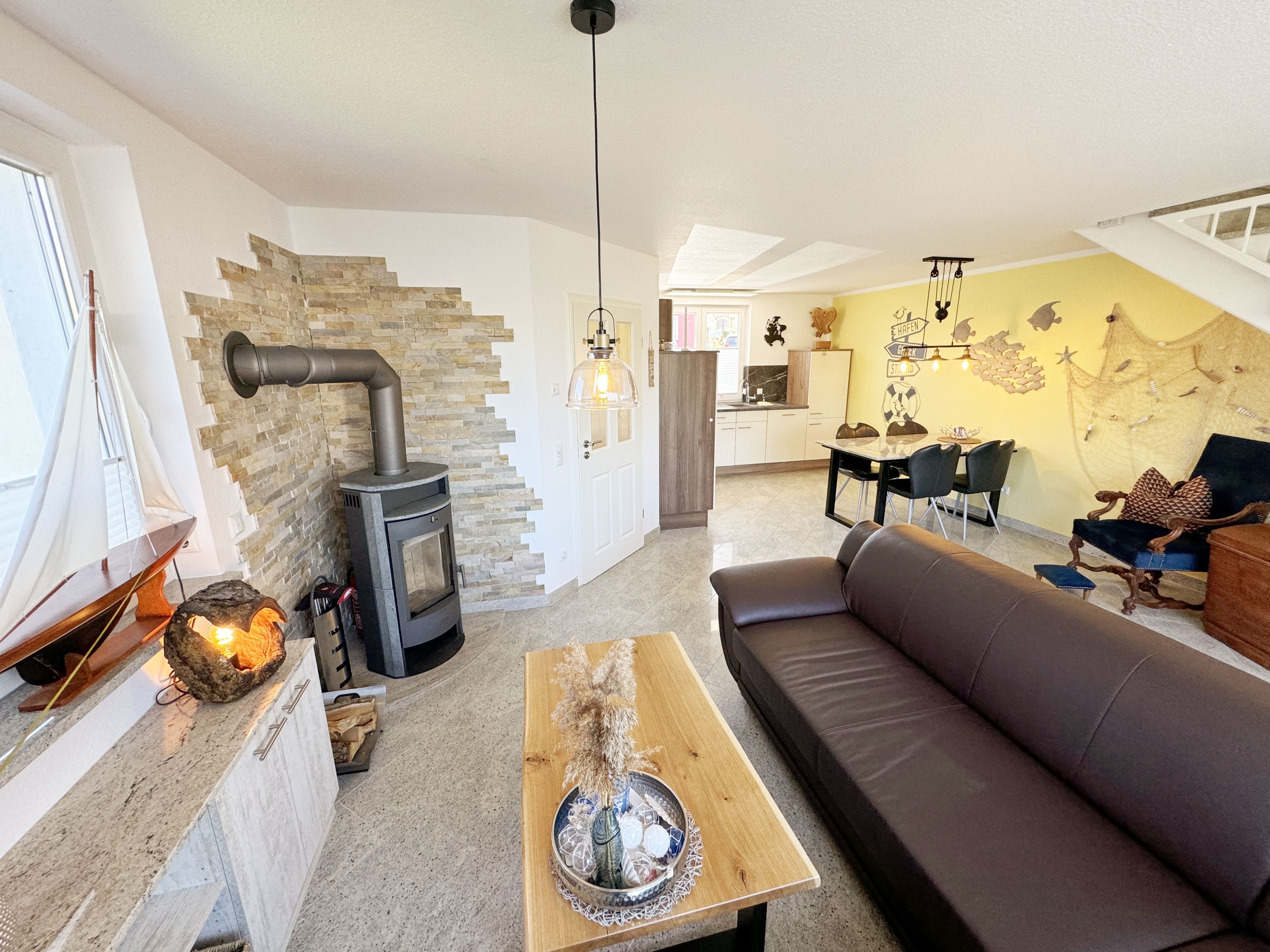 Die Doppelhaushälfte Meeresbrise ist mit Ihren ca. 75 m² großzügig geschnitten und bietet ausreichend Platz für bis zu 5 Personen. Die Unterkunft (Nichtraucher) ist auf 2 Ebenen verteilt und verfügt zusätzlich über eine Terrasse mit Bestuhlung, Sonnenschirm, Strandkorb und einem Weber Kugelgrill. Im Erdgeschoss verfügt die Doppelhaushälfte Meeresbrise über einen großen Wohn/Essbereich mit einem Esstisch für 5 Personen, eine gemütliche Couch, Smart-TV mit Sky (Auswahl von Sport, Film, Dokumentation), Blu-Ray-Player, DAB-Radio und direkten Zugang über die Schiebetür auf die Terrasse. Auch im Urlaub müssen Sie nicht auf einen Internetanschluss (WLAN) verzichten. Die in dem Wohnbereich integrierte Küchenzeile verfügt über einen Backofen mit Umluft, Ceranfeld, Mikrowelle, Kühlschrank mit Gefrierfach, Geschirrspüler, Spüle, Kaffeemaschine, Toaster, Wasserkocher, Eierkocher, Brotschneidemaschine, Bosch Tassimo Maschine, Heißluftfriteuse und weitere diverse Küchenutensilien. Für die kältere Jahreszeit sorgt ein Kaminofen für gemütliche Abende. Ein Gäste-WC befindet sich im Erdgeschoss. Über die Treppe erreichen Sie das Obergeschoss, wo sich 2 Schlafzimmer, ein Duschbad und ein Wirtschaftsraum mit Waschtrockner, Bügelbrett und Bügeleisen befinden. Das 1. Schlafzimmer verfügt über ein Doppelbett (1,80m x 2,00m), Smart-TV, Kleiderschrank & Kommode sowie einen Relax-Sessel. Das 2. Schlafzimmer ist mit einem Einzelbett (0,90m x 2,00m), einem Tandembett (Einzelbett mit Ausziehfunktion je 0,90m x 2,00m), Flachbild-TV, einer Kommode und einem Kleiderschrank ausgestattet. Das großzügig gestaltete Bad verfügt über eine Glasrunddusche, Handtuchtrockner, Waschtisch, Spiegelschrank, Fön und WC. Das gesamte Haus ist mit einer Fußbodenheizung ausgestattet und mit Granit (außer die Schlafzimmer) gefliest. Alle Fenster können durch elektrische Außenrollos abgedunkelt werden, rundherum sind Insektenschutzgitter installiert. Ein PKW-Stellplatz befindet sich direkt am Haus sowie eine Ladestation für Elektrofahrzeuge (kostenpflichtig). Die überdachte Fahrradunterstellmöglichkeit für max. 4 Fahrräder befindet sich am Gartenhaus. Auf der Wiese ist eine Wäschespinne für Sie aufgestellt. Von der Terrasse mit Strandkorb aus, können Sie den Tag bei einem Gläschen ausklingen lassen und wunderschöne Sonnenuntergänge in Richtung Hafen genießen. An kühleren Tagen steht Ihnen eine neue Fasssauna zur Verfügung. Für unsere kleinen Gästen stehen 1 Kinderbett sowie 1 Hochstuhl inklusive zur Verfügung. Auf dem eingezäunten Grundstück sind max. 2 Haustiere (kniehoch, keine Katzen) gegen eine Extragebühr erlaubt. Die Erstausstattung eines Wäschepaketes (komplette Bettwäsche, 1 Duschhandtuch, 1 kleines Handtuch) können Sie bis 14 Tage vor Anreise gegen einen Aufpreis dazu buchen oder durch Eigenes ergänzen. Ab 2 gebuchten Paketen erhalten Sie einmalig 1 Geschirrhandtuch und 1 Duschvorleger hinzu.