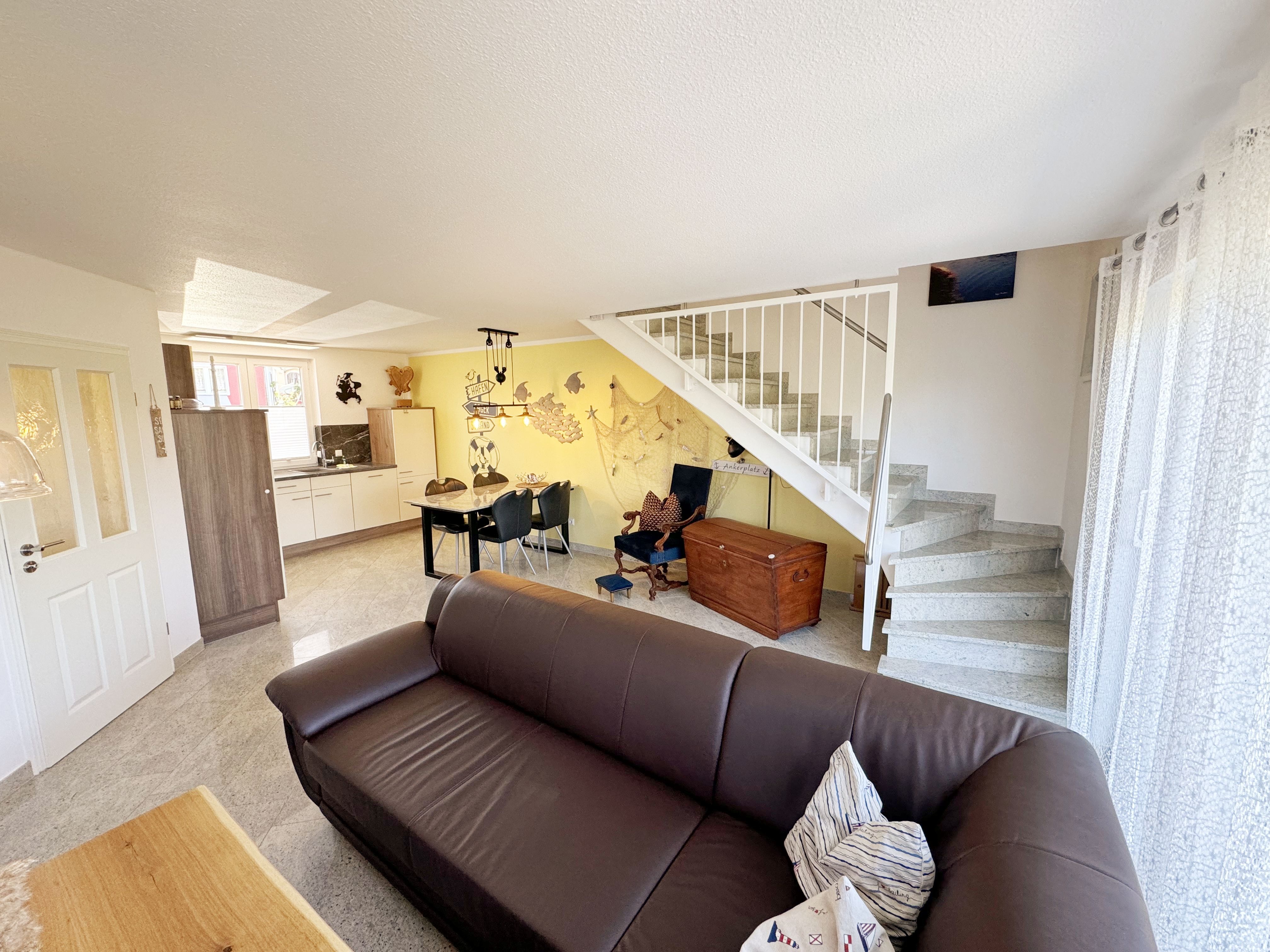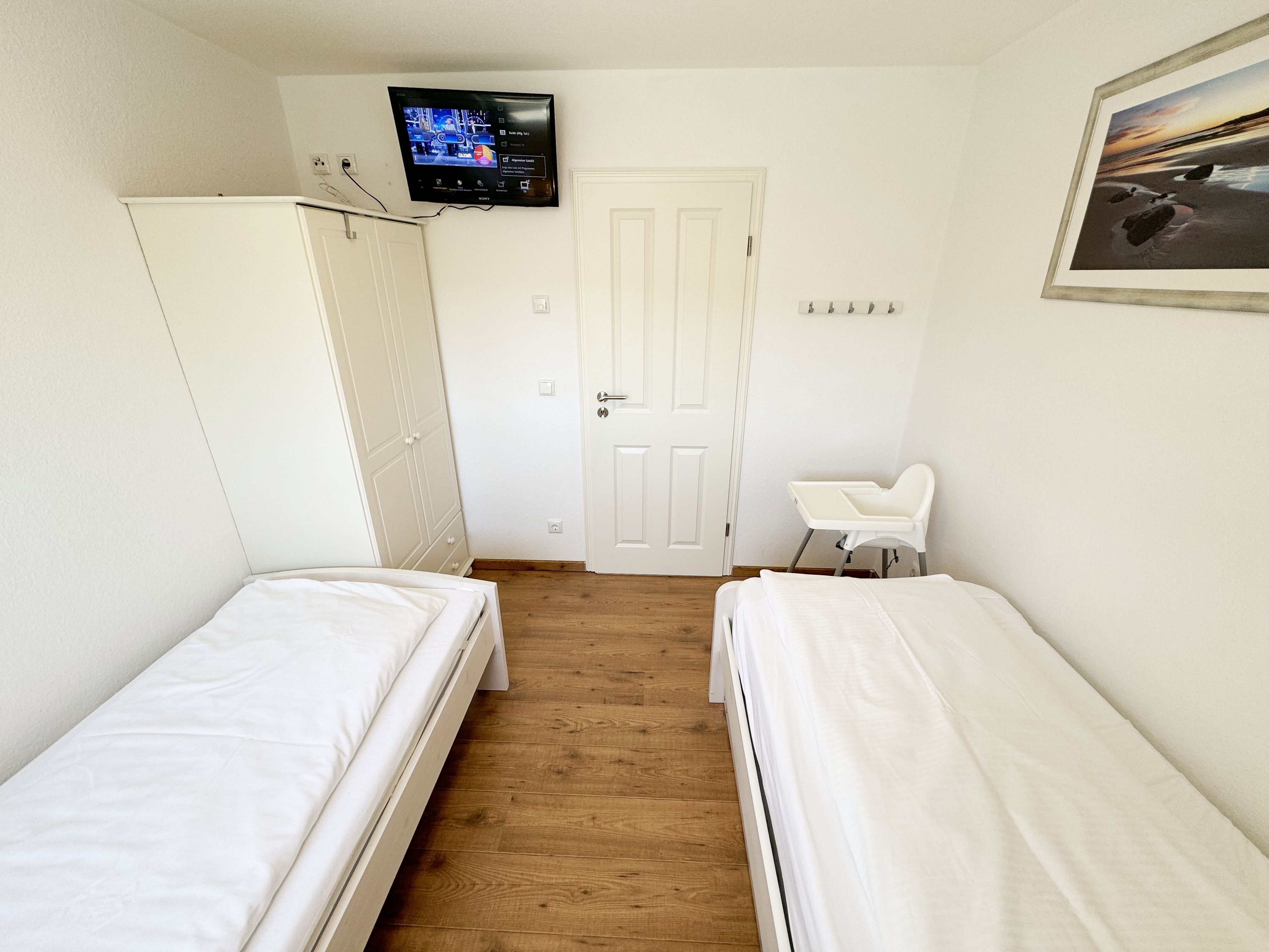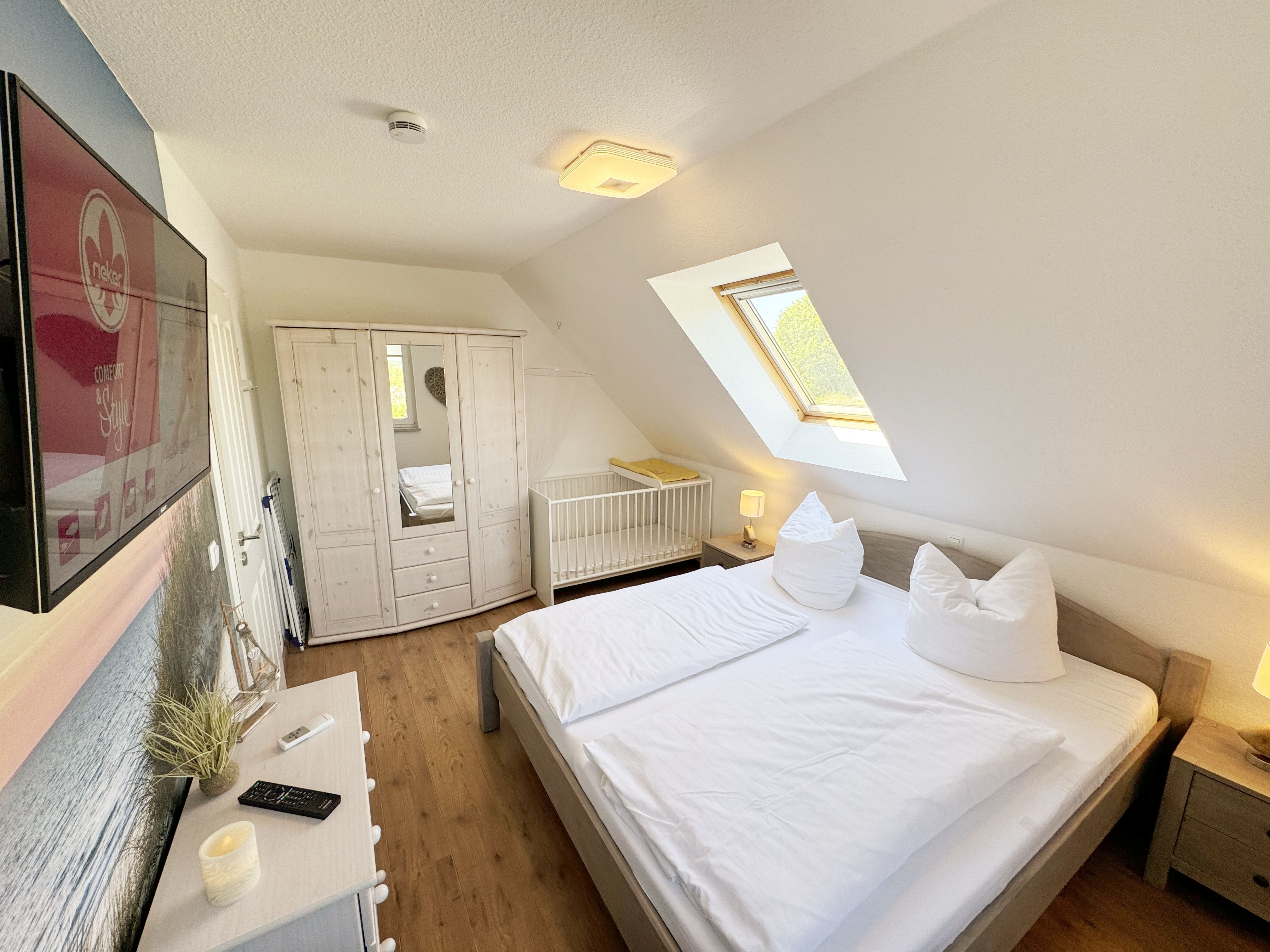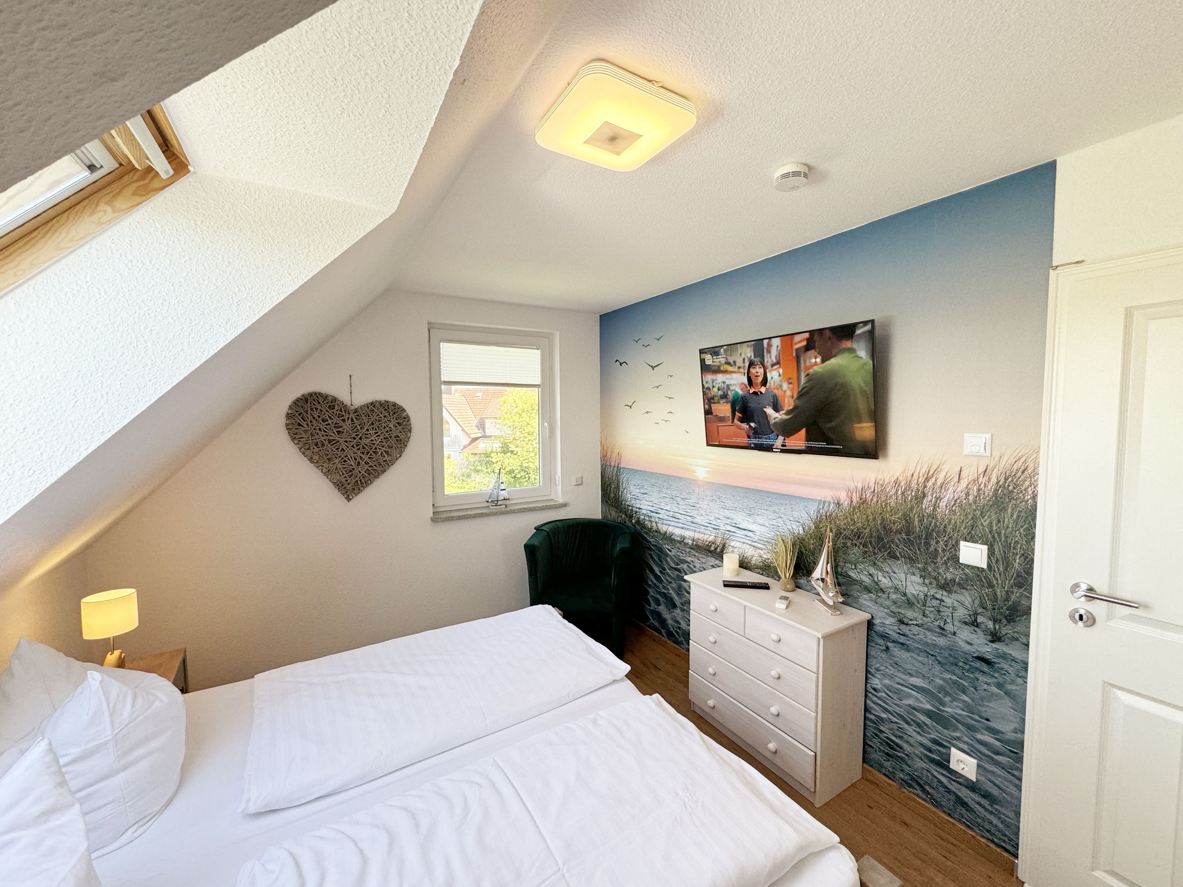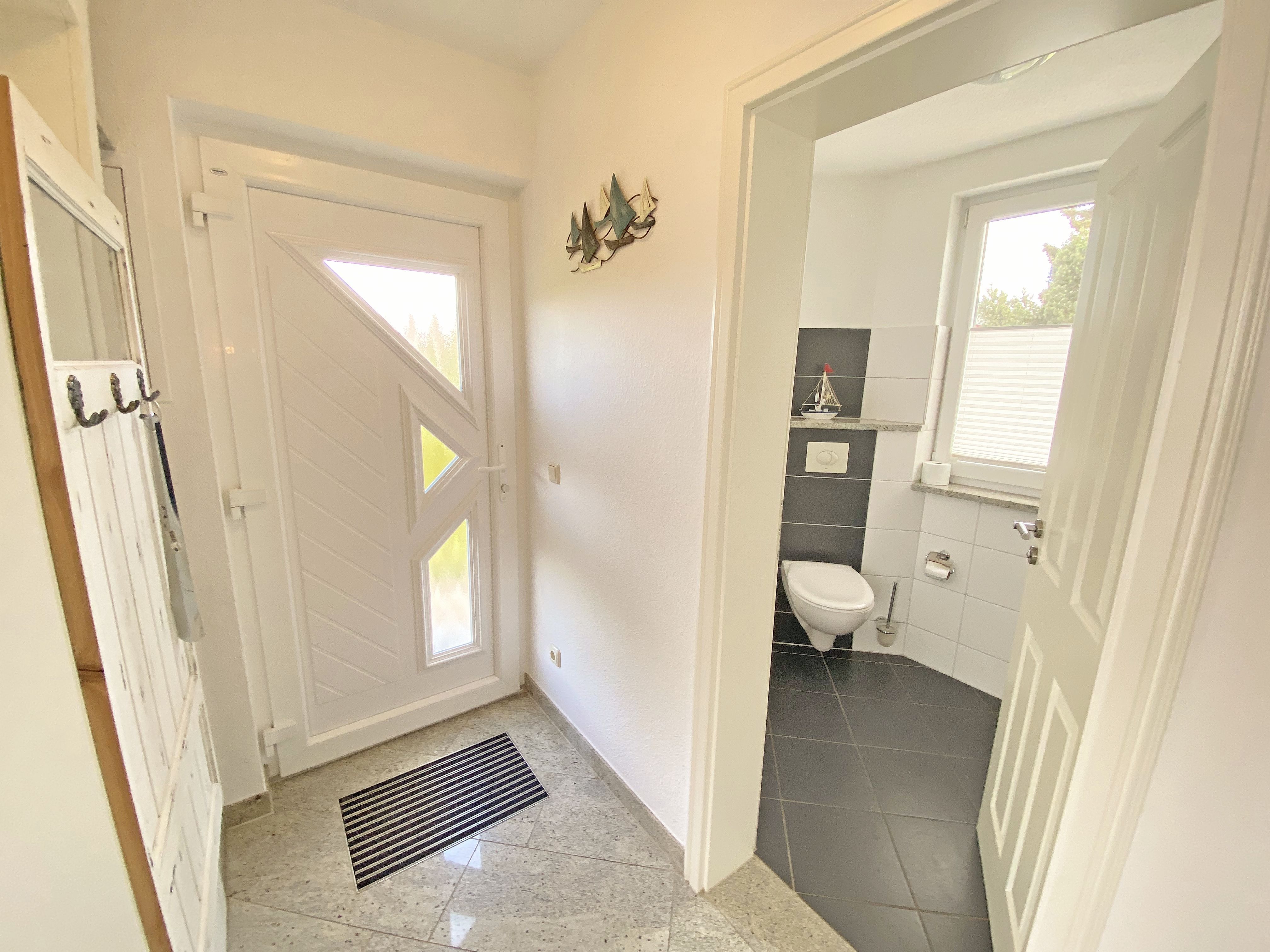 Die Doppelhaushälfte Meeresbrise ist mit Ihren ca. 75 m² großzügig geschnitten und bietet ausreichend Platz für bis zu 5 Personen. Die Unterkunft (Nichtraucher) ist auf 2 Ebenen verteilt und verfügt zusätzlich über eine Terrasse mit Bestuhlung, Sonnenschirm, Strandkorb und einem Weber Kugelgrill. Im Erdgeschoss verfügt die Doppelhaushälfte Meeresbrise über einen großen Wohn/Essbereich mit einem Esstisch für 5 Personen, eine gemütliche Couch, Smart-TV mit Sky (Auswahl von Sport, Film, Dokumentation), Blu-Ray-Player, DAB-Radio und direkten Zugang über die Schiebetür auf die Terrasse. Auch im Urlaub müssen Sie nicht auf einen Internetanschluss (WLAN) verzichten. Die in dem Wohnbereich integrierte Küchenzeile verfügt über einen Backofen mit Umluft, Ceranfeld, Mikrowelle, Kühlschrank mit Gefrierfach, Geschirrspüler, Spüle, Kaffeemaschine, Toaster, Wasserkocher, Eierkocher, Brotschneidemaschine, Bosch Tassimo Maschine, Heißluftfriteuse und weitere diverse Küchenutensilien. Für die kältere Jahreszeit sorgt ein Kaminofen für gemütliche Abende. Ein Gäste-WC befindet sich im Erdgeschoss. Über die Treppe erreichen Sie das Obergeschoss, wo sich 2 Schlafzimmer, ein Duschbad und ein Wirtschaftsraum mit Waschtrockner, Bügelbrett und Bügeleisen befinden. Das 1. Schlafzimmer verfügt über ein Doppelbett (1,80m x 2,00m), Smart-TV, Kleiderschrank & Kommode sowie einen Relax-Sessel. Das 2. Schlafzimmer ist mit einem Einzelbett (0,90m x 2,00m), einem Tandembett (Einzelbett mit Ausziehfunktion je 0,90m x 2,00m), Flachbild-TV, einer Kommode und einem Kleiderschrank ausgestattet. Das großzügig gestaltete Bad verfügt über eine Glasrunddusche, Handtuchtrockner, Waschtisch, Spiegelschrank, Fön und WC. Das gesamte Haus ist mit einer Fußbodenheizung ausgestattet und mit Granit (außer die Schlafzimmer) gefliest. Alle Fenster können durch elektrische Außenrollos abgedunkelt werden, rundherum sind Insektenschutzgitter installiert. Ein PKW-Stellplatz befindet sich direkt am Haus sowie eine Ladestation für Elektrofahrzeuge (kostenpflichtig). Die überdachte Fahrradunterstellmöglichkeit für max. 4 Fahrräder befindet sich am Gartenhaus. Auf der Wiese ist eine Wäschespinne für Sie aufgestellt. Von der Terrasse mit Strandkorb aus, können Sie den Tag bei einem Gläschen ausklingen lassen und wunderschöne Sonnenuntergänge in Richtung Hafen genießen. An kühleren Tagen steht Ihnen eine neue Fasssauna zur Verfügung. Für unsere kleinen Gästen stehen 1 Kinderbett sowie 1 Hochstuhl inklusive zur Verfügung. Auf dem eingezäunten Grundstück sind max. 2 Haustiere (kniehoch, keine Katzen) gegen eine Extragebühr erlaubt. Die Erstausstattung eines Wäschepaketes (komplette Bettwäsche, 1 Duschhandtuch, 1 kleines Handtuch) können Sie bis 14 Tage vor Anreise gegen einen Aufpreis dazu buchen oder durch Eigenes ergänzen. Ab 2 gebuchten Paketen erhalten Sie einmalig 1 Geschirrhandtuch und 1 Duschvorleger hinzu.