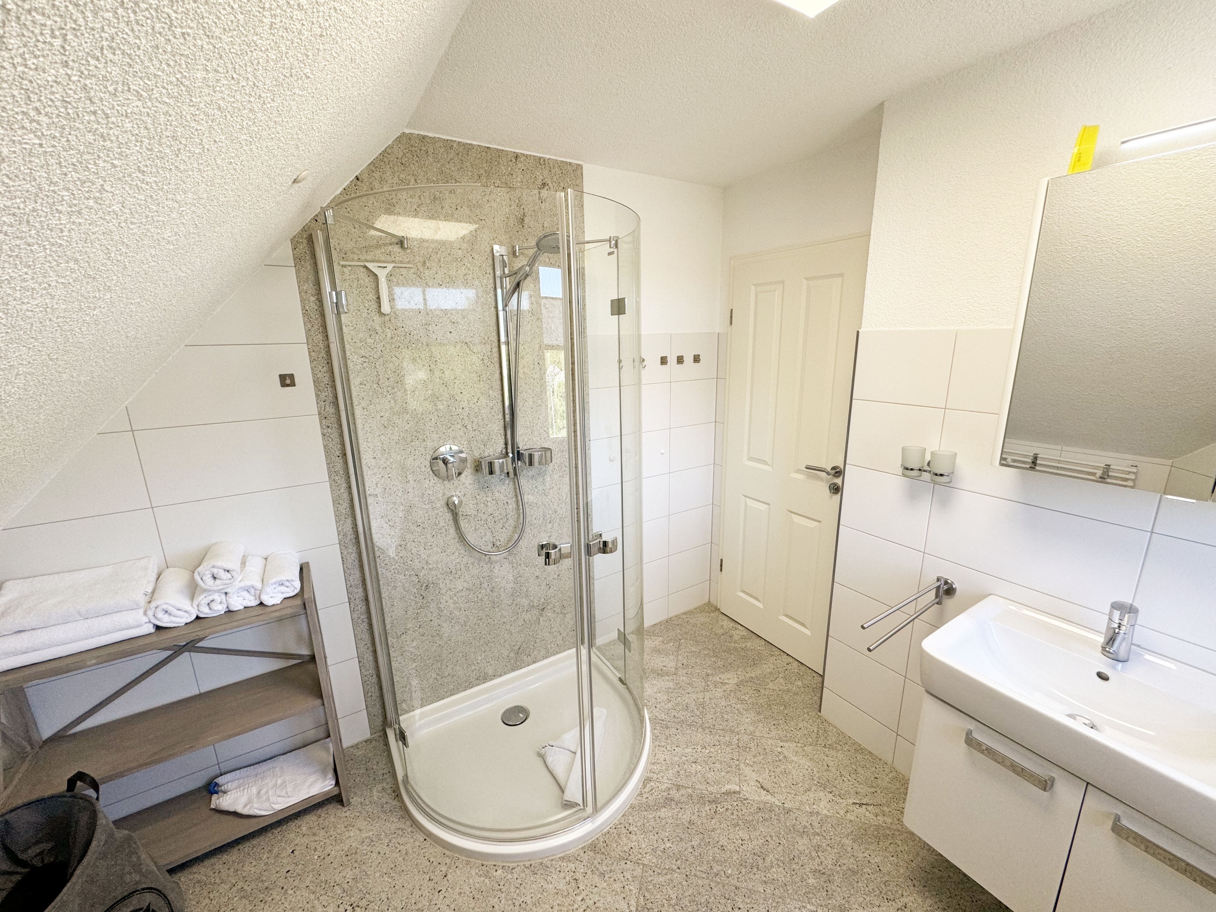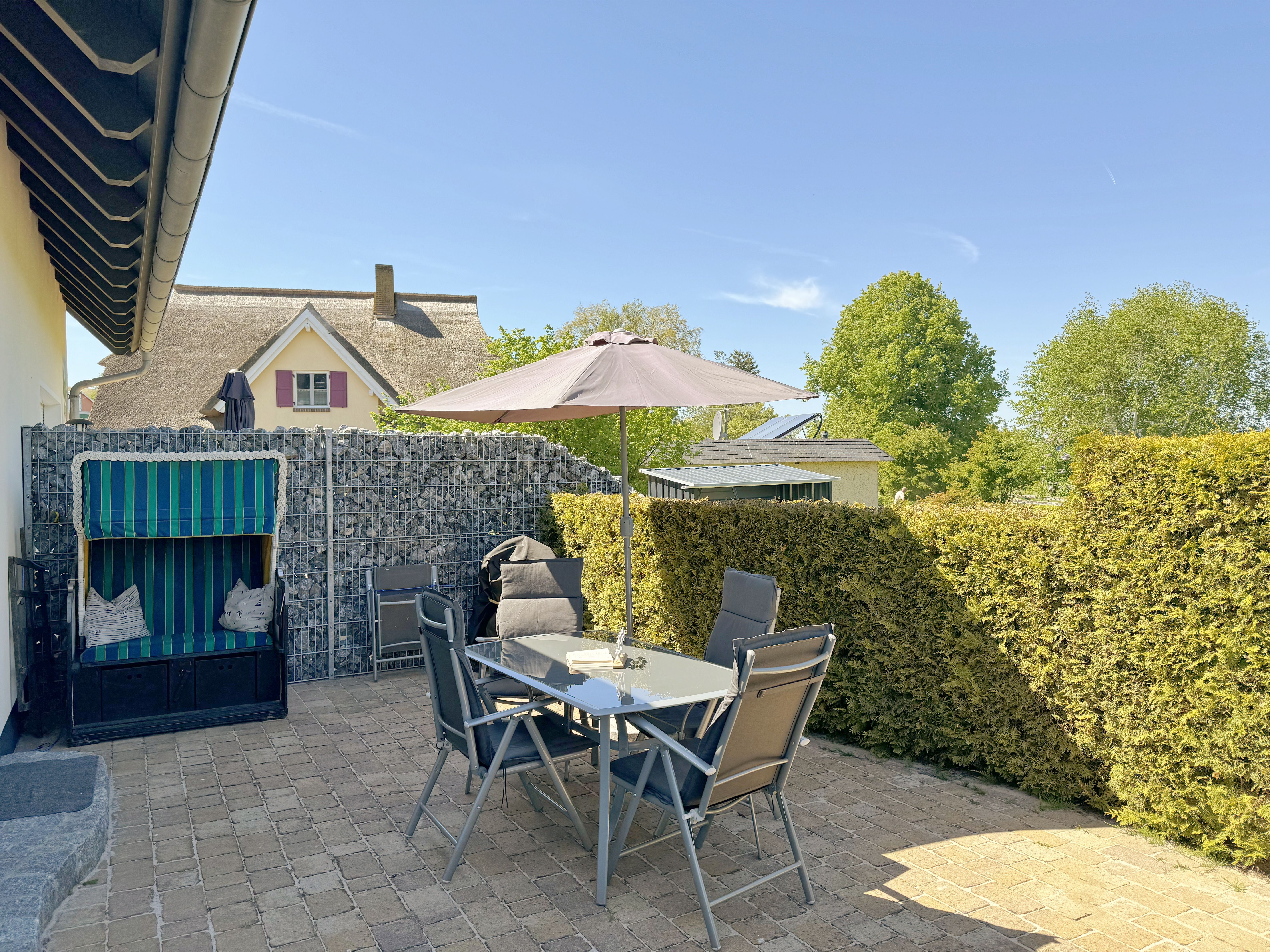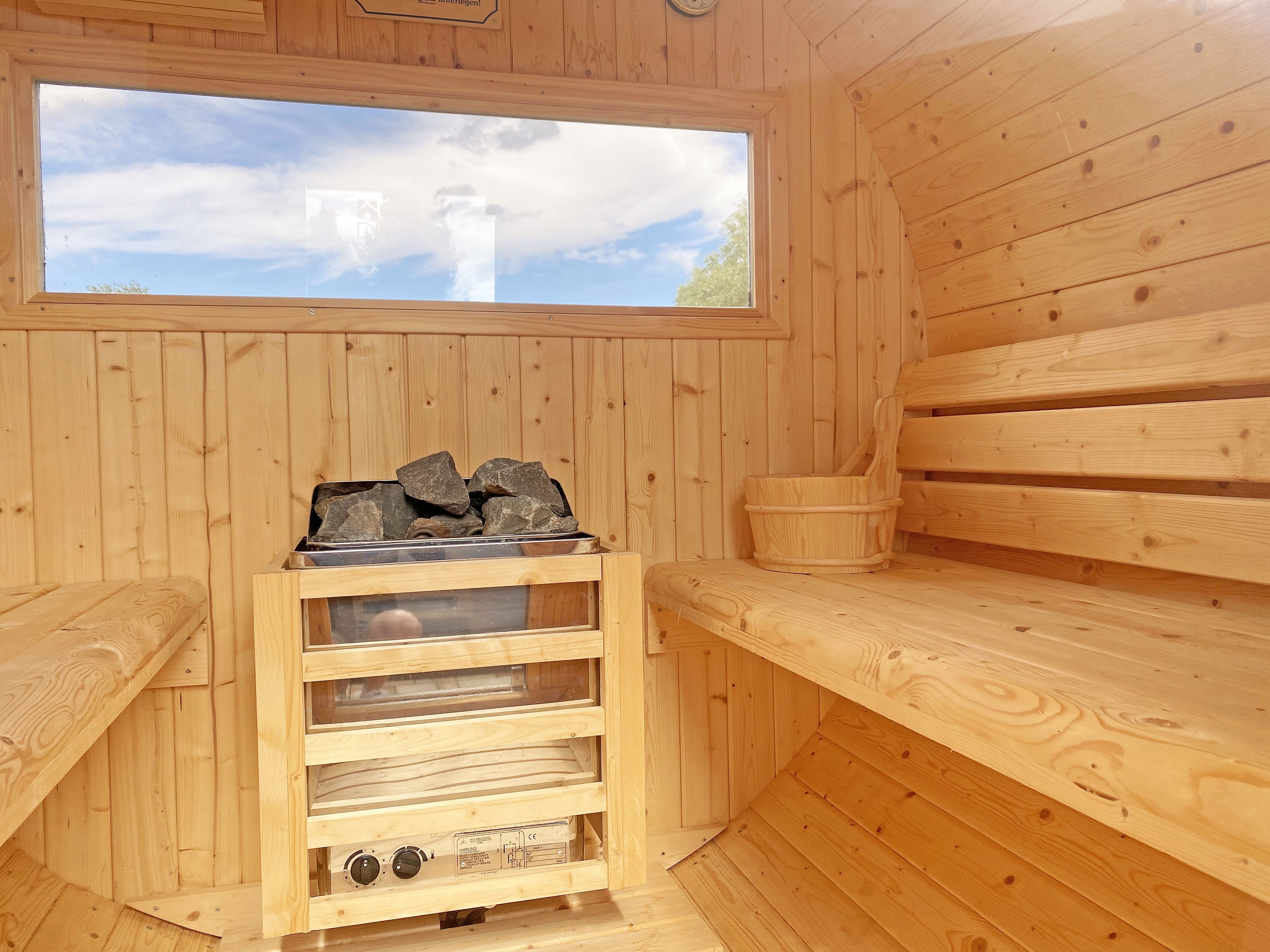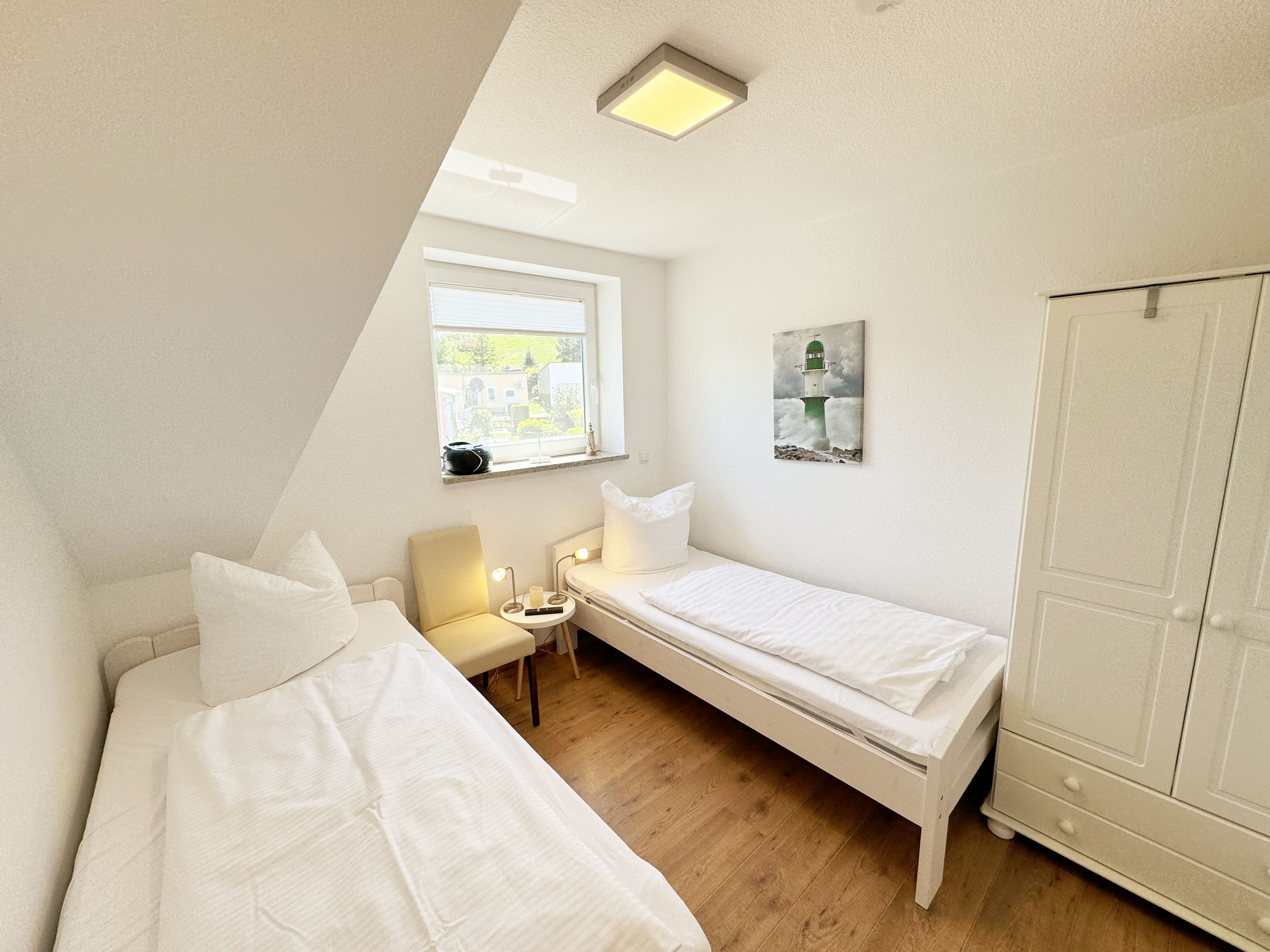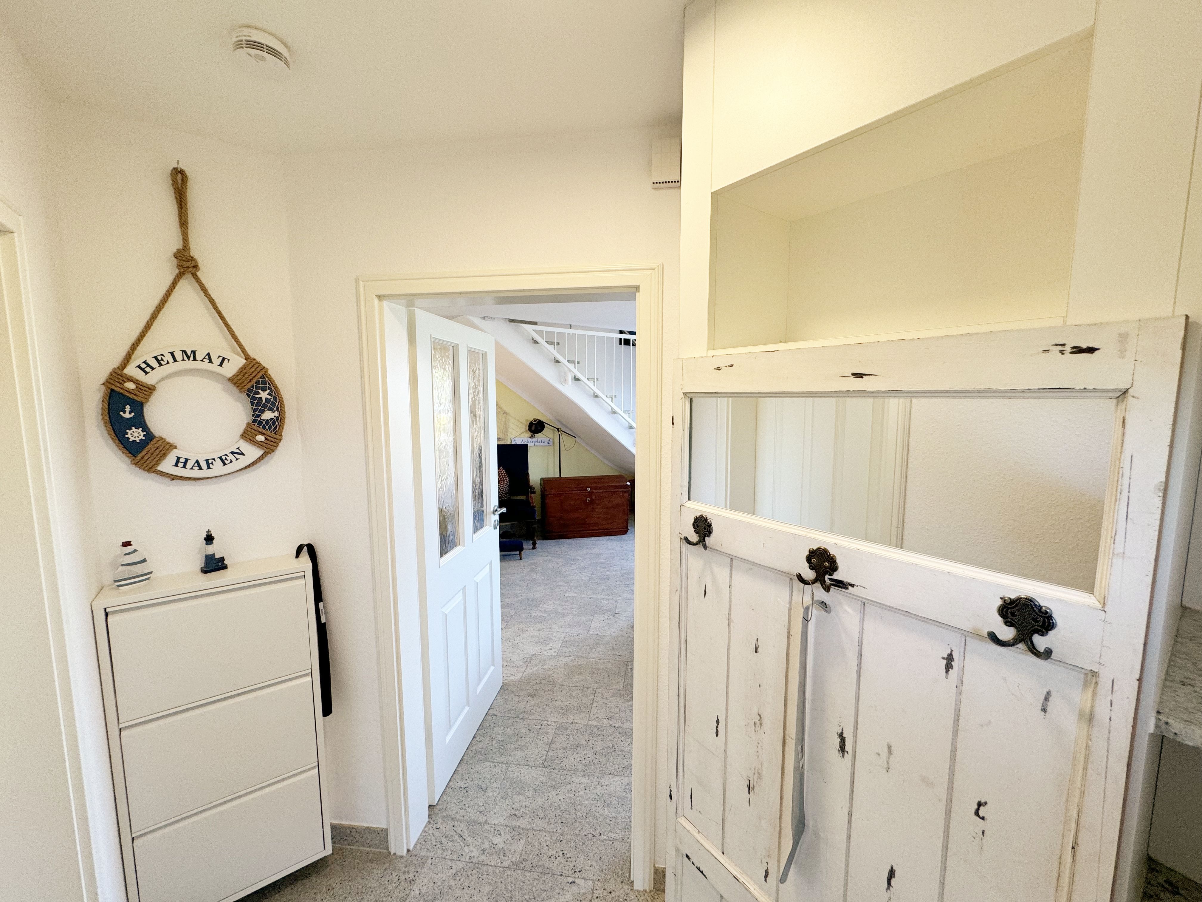 Die Doppelhaushälfte Meeresbrise ist mit Ihren ca. 75 m² großzügig geschnitten und bietet ausreichend Platz für bis zu 5 Personen. Die Unterkunft (Nichtraucher) ist auf 2 Ebenen verteilt und verfügt zusätzlich über eine Terrasse mit Bestuhlung, Sonnenschirm, Strandkorb und einem Weber Kugelgrill. Im Erdgeschoss verfügt die Doppelhaushälfte Meeresbrise über einen großen Wohn/Essbereich mit einem Esstisch für 5 Personen, eine gemütliche Couch, Smart-TV mit Sky (Auswahl von Sport, Film, Dokumentation), Blu-Ray-Player, DAB-Radio und direkten Zugang über die Schiebetür auf die Terrasse. Auch im Urlaub müssen Sie nicht auf einen Internetanschluss (WLAN) verzichten. Die in dem Wohnbereich integrierte Küchenzeile verfügt über einen Backofen mit Umluft, Ceranfeld, Mikrowelle, Kühlschrank mit Gefrierfach, Geschirrspüler, Spüle, Kaffeemaschine, Toaster, Wasserkocher, Eierkocher, Brotschneidemaschine, Bosch Tassimo Maschine, Heißluftfriteuse und weitere diverse Küchenutensilien. Für die kältere Jahreszeit sorgt ein Kaminofen für gemütliche Abende. Ein Gäste-WC befindet sich im Erdgeschoss. Über die Treppe erreichen Sie das Obergeschoss, wo sich 2 Schlafzimmer, ein Duschbad und ein Wirtschaftsraum mit Waschtrockner, Bügelbrett und Bügeleisen befinden. Das 1. Schlafzimmer verfügt über ein Doppelbett (1,80m x 2,00m), Smart-TV, Kleiderschrank & Kommode sowie einen Relax-Sessel. Das 2. Schlafzimmer ist mit einem Einzelbett (0,90m x 2,00m), einem Tandembett (Einzelbett mit Ausziehfunktion je 0,90m x 2,00m), Flachbild-TV, einer Kommode und einem Kleiderschrank ausgestattet. Das großzügig gestaltete Bad verfügt über eine Glasrunddusche, Handtuchtrockner, Waschtisch, Spiegelschrank, Fön und WC. Das gesamte Haus ist mit einer Fußbodenheizung ausgestattet und mit Granit (außer die Schlafzimmer) gefliest. Alle Fenster können durch elektrische Außenrollos abgedunkelt werden, rundherum sind Insektenschutzgitter installiert. Ein PKW-Stellplatz befindet sich direkt am Haus sowie eine Ladestation für Elektrofahrzeuge (kostenpflichtig). Die überdachte Fahrradunterstellmöglichkeit für max. 4 Fahrräder befindet sich am Gartenhaus. Auf der Wiese ist eine Wäschespinne für Sie aufgestellt. Von der Terrasse mit Strandkorb aus, können Sie den Tag bei einem Gläschen ausklingen lassen und wunderschöne Sonnenuntergänge in Richtung Hafen genießen. An kühleren Tagen steht Ihnen eine neue Fasssauna zur Verfügung. Für unsere kleinen Gästen stehen 1 Kinderbett sowie 1 Hochstuhl inklusive zur Verfügung. Auf dem eingezäunten Grundstück sind max. 2 Haustiere (kniehoch, keine Katzen) gegen eine Extragebühr erlaubt. Die Erstausstattung eines Wäschepaketes (komplette Bettwäsche, 1 Duschhandtuch, 1 kleines Handtuch) können Sie bis 14 Tage vor Anreise gegen einen Aufpreis dazu buchen oder durch Eigenes ergänzen. Ab 2 gebuchten Paketen erhalten Sie einmalig 1 Geschirrhandtuch und 1 Duschvorleger hinzu.