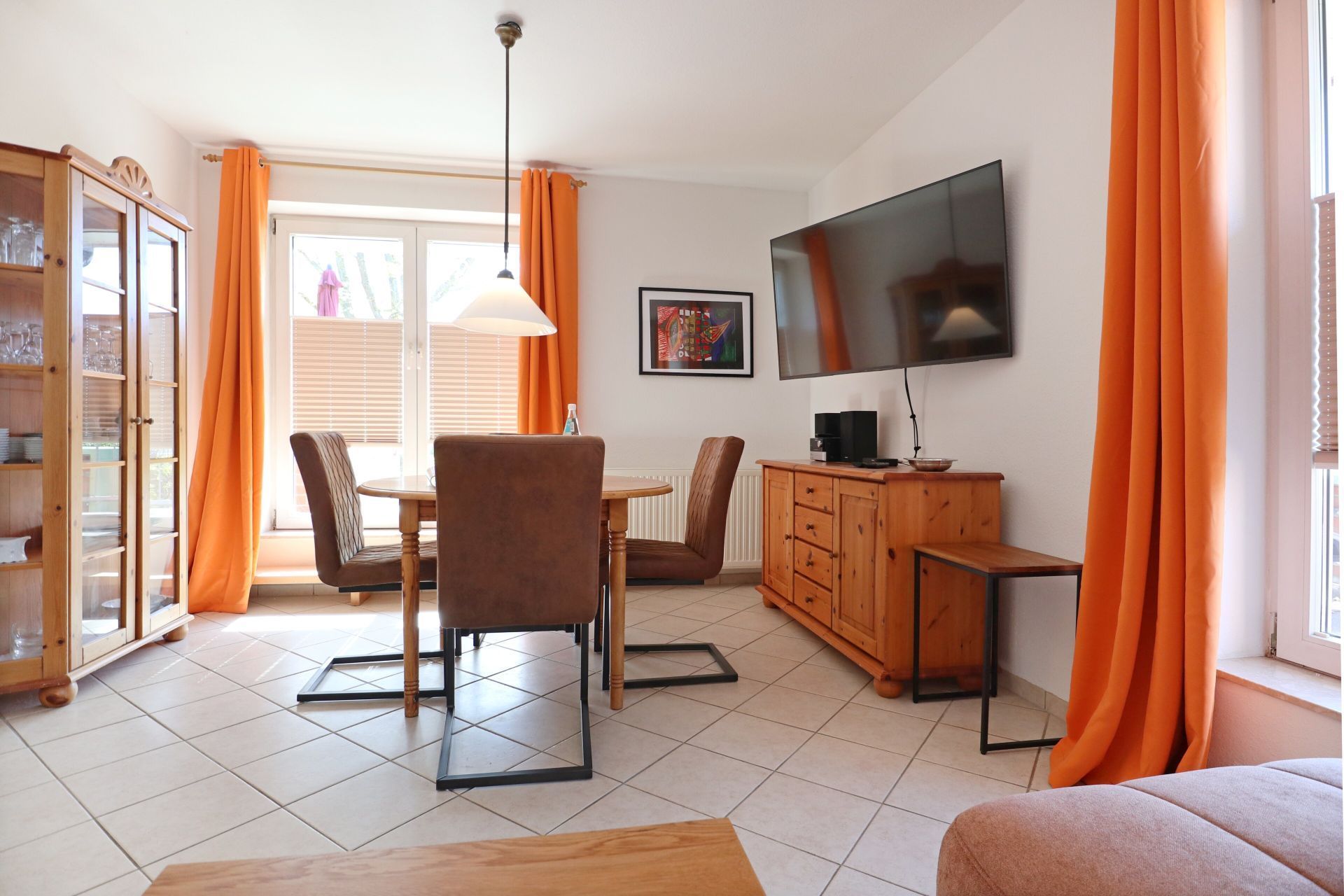 In wenigen Gehminuten sind Sie am Meer. Das gut ausgestattete 2-Zimmer-Appartement Goosbrink 29 ist eine Dachgeschoss Wohnung mit einer Wohnfläche von 50qm sowie einer Dachterrasse in Nord/Ost Ausrichtung. Eine Belegung ist mit maximal 3 Personen möglich. Der Wohn-Essbereich bietet eine Sofa Sitzgruppe, ein ausziehbares Sofa, einen Esstisch, Flachbild Fernseher und Musikanlage. Die separate Küche ist mit einem Herd, Backofen, Kühlschrank, Geschirrspüler, Toaster, Kaffeemaschine gut ausgestattet. Das separate Schlafzimmer ist mit einem Doppelbett und einem großen Kleiderschrank eingerichtet. Zugehörig ist ein Duschbad, das sich durch ein vorhandenes Fenster gut belüften lässt. Für Ihren PKW ist ein kostenfreier Stellplatz auf dem hauseigenen Parkplatz reserviert. Es handelt sich um eine Nichtraucher Wohneinheit. Haustiere sind herzlich willkommen. Für Hundebesitzer beginnen schöne Spazier- und Wanderwege in naher Umgebung. Den Strand erreichen Sie in 150 Meter. Den Hundestrand in ca. 1200 Meter.