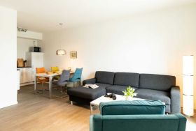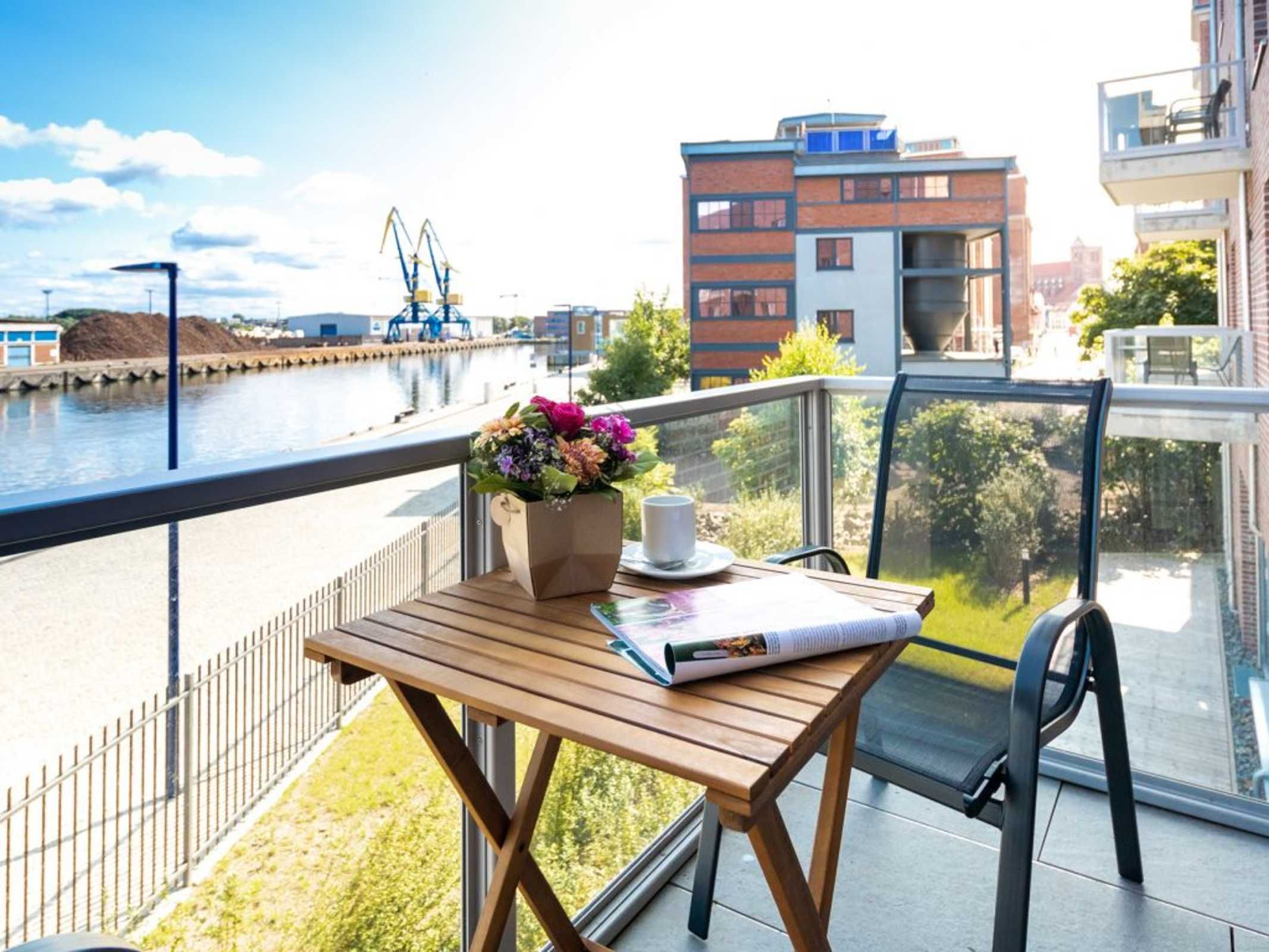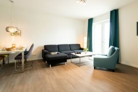 Im modernen Ambiente begrüßt Sie mit einer geräumigen Wohnfläche von 59qm dieses schicke 2-Zimmer-Appartement mit Balkon in der Hafenspitze 4. Die attraktive Ferienwohnung ist auf eine Belegung mit bis zu 4 Personen ausgelegt. Der geräumige Wohn-/ Essbereich mit bodentiefen Fenstern, lässt Sie komfortabel möbliert und zudem mit internetfähigem Flatscreen einen sehr angenehmen Aufenthalt genießen. Zwei zusätzliche Schlafmöglichkeiten, falls Sie mit mehr als 2 Personen anreisen möchten, sind vorhanden. WLAN steht kostenfrei zur Verfügung.