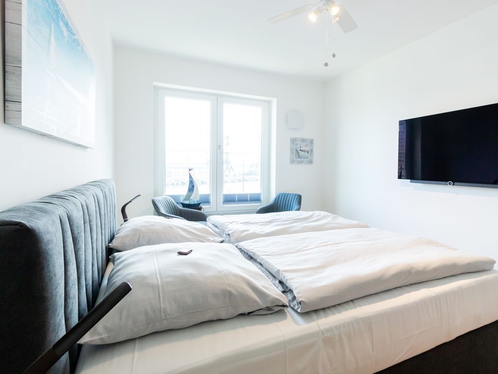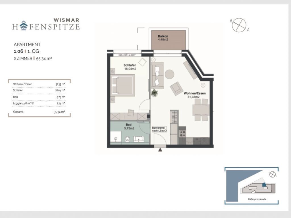 Sie verbringen Ihren Aufenthalt in maritimer Umgebung und gelangen in wenigen Gehminuten zur Altstadt von Wismar mit historischen Bauten und Kirchen der Backsteingotik mit Aussichtsplattform und Blick über die Hansestadt. Die hier beschriebenen Ferienwohnung Hafenspitze 6 ist ein geräumiges 2-Zimmer-Appartement mit Balkon in Nord/Ost Richtung Ohlerich Speicher. Die Wohnfläche beträgt großzügige 56qm. Ein separates Schlafzimmer mit großer Fensterfront sowie zwei weitere Schlafmöglichkeiten und 1 moderndes Duschbad sind vorhanden. Bei Anreise sind bezogene Betten für 2 Personen inklusive. Bei Bedarf können weitere Wäschepakete hinzu gebucht werden. Die Belegung ist mit bis zu 4 Personen möglich. Es handelt sich um eine Wohnung für Nichtraucher. Parkmöglichkeiten innerhalb eines Parkhauses befinden sich in ca. 300 Meter.