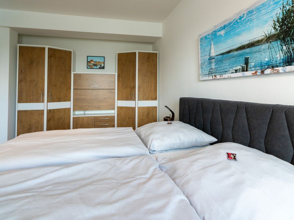 Ihre Nächte verbringen Sie in einem separaten Schlafzimmer mit großer Fensterfront, Doppelbett und Kleiderschrank. Zwei weitere Schlafmöglichkeiten sind vorhanden. Bei Ihrer Anreise sind die Betten für 2 Personen bereits bezogen und Handtücher liegen bereit. Gerne können Sie weitere Wäschepakete zu buchen. Das innenliegende Duschbad ist mit Glasduschtrennung, WC sowie Waschtisch, Handtuchheizung ausgestattet. Die in der Ferienwohnung vorhandene Fußbodenheizung bietet angenehme Wärme. Sollten Sie mit dem PKW anreisen, so besteht die Möglichkeit einen gebührenpflichtigen Stellplatz im ca. 300 Meter entfernten Parkhaus anzumieten.