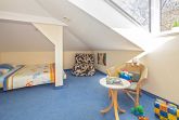 Die geräumige, moderne 3-Raum-Nichtraucher-Ferienwohnung (60 qm Wohnfläche nach Abzug der vorhandenen Dachschrägen), befindet sich im 1. OG. der Villa Seeblick (Dachgeschoß, in der gesamten Wohnung befinden sich Dachschrägen). Das kombinierte Wohn-/Esszimmer ist mit einem Esstisch mit 4 Stühlen, Kommode, Sat-TV, sowie einer Küchenzeile mit 4-Pl. Ceranherd, Backofen, Kaffeemaschine, Wasserkocher, Geschirr, Besteck, Spülmaschine und Kühlschrank mit Gefrierfach ausgestattet. Die Wohnung verfügt über zwei Schlafräume (jeweils mit Doppelbetten 160 x 200 m, nur von einer Seite Einstieg möglich), Nachtschrank und Kommode. In einem der beiden Schlafzimmer befindet sich ein Schlafsessel, der als Aufbettung für die 5. Person dient. Der Sessel ist auch für eine erwachsene Person geeignet. Bad (mit Badewanne/WC, Spiegelschrank) und das separate Gäste-WC sind vom Wohnzimmer zu erreichen. Die Ferienwohnung ist für max. 4 Personen geeignet. Die Erstausstattung Bettwäsche kann gegen Gebühr dazugebucht werden. Die Erstausstattung Handtücher und Geschirrtücher sind inklusive. Ein Kinderbett und Hochstuhl auf Anfrage.