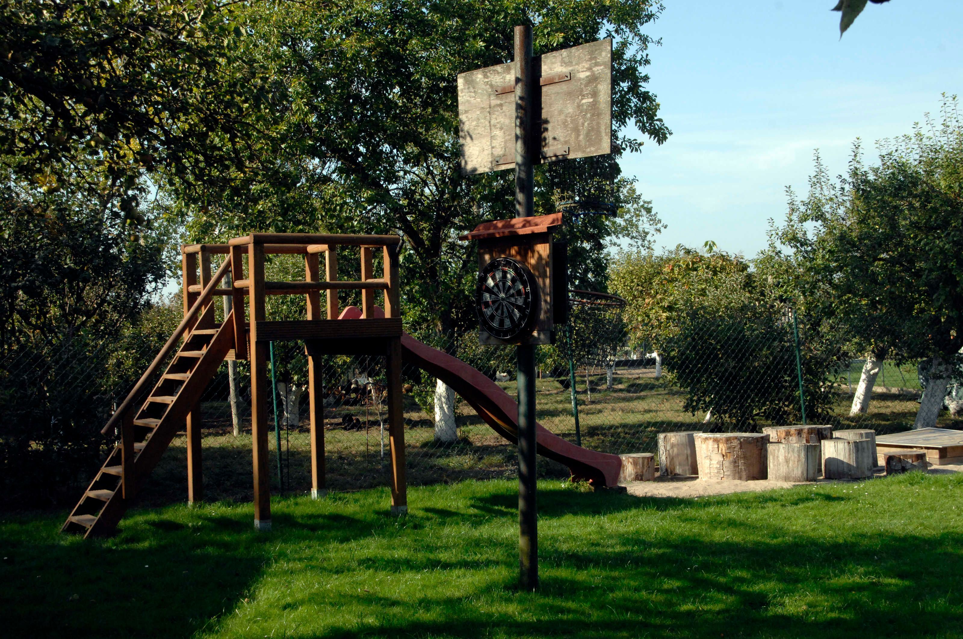 Kinder-Extras: kleiner Streichelzoo auf dem Hof (Hunde, Katzen, Hühner, Enten, Gänse, Kaninchen). Spielwiese mit Schaukel, Sandkasten, Tischtennisplatte und Basketball-Korb. Großer Spielplatz im Dorf. Zelten im Garten möglich. Babybett und Hochstuhl, Kindergeschirr/ -besteck.