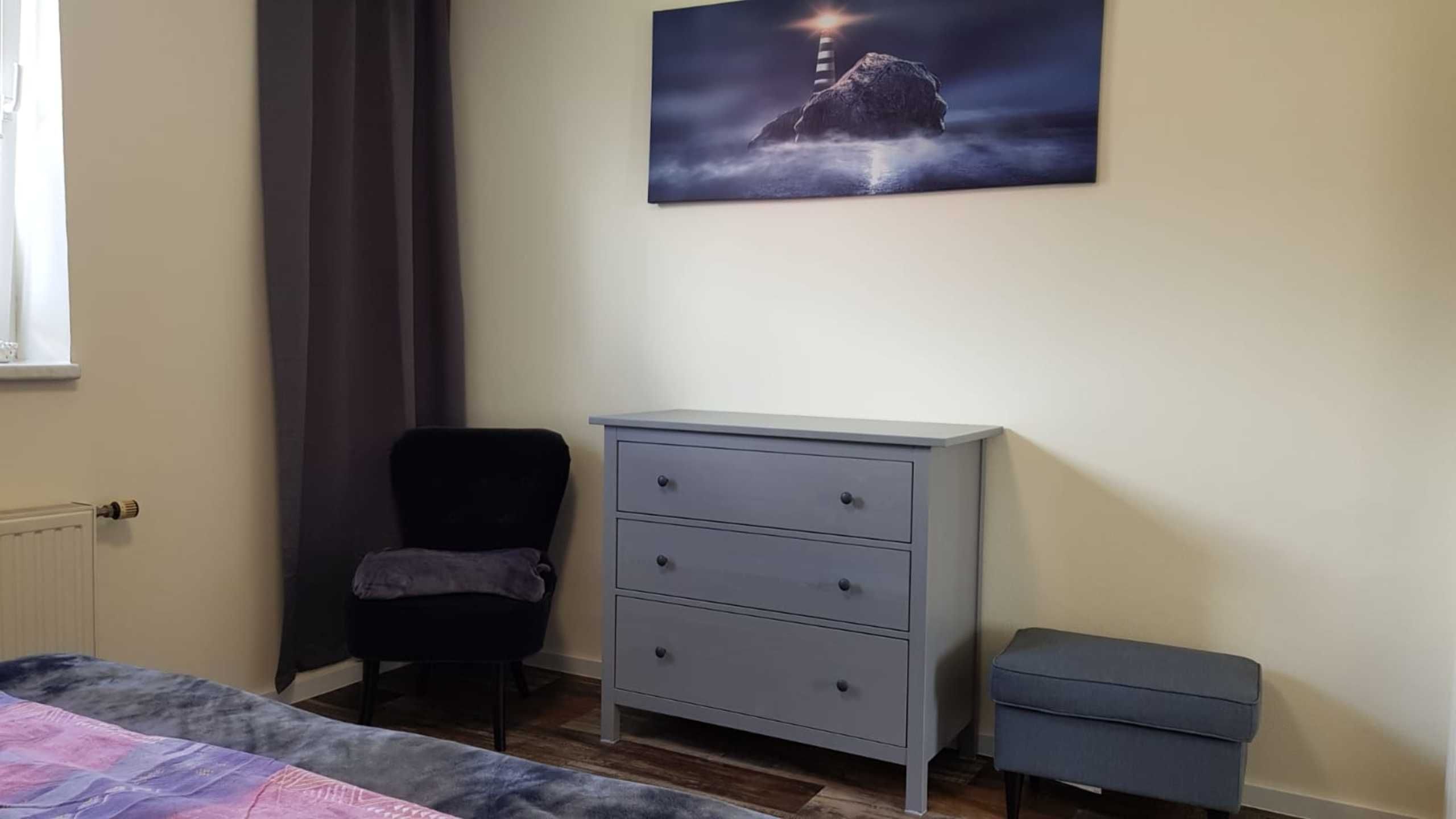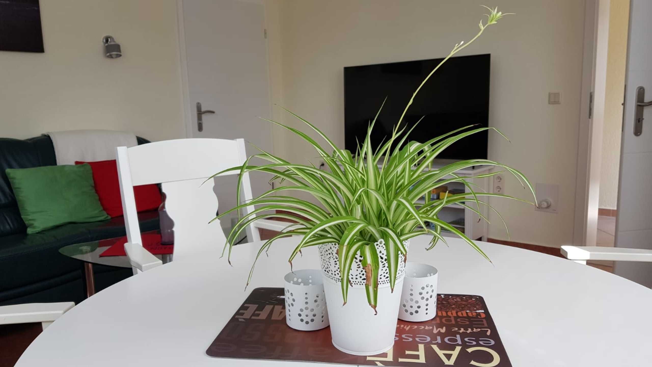 Die gemütliche Wohnung ist eingeteilt in eine Küche mit Sitzplätzen für 4 Personen, einem großen Bad mit Dusche, Wanne und WC, Schlafzimmer und Wohnzimmer.