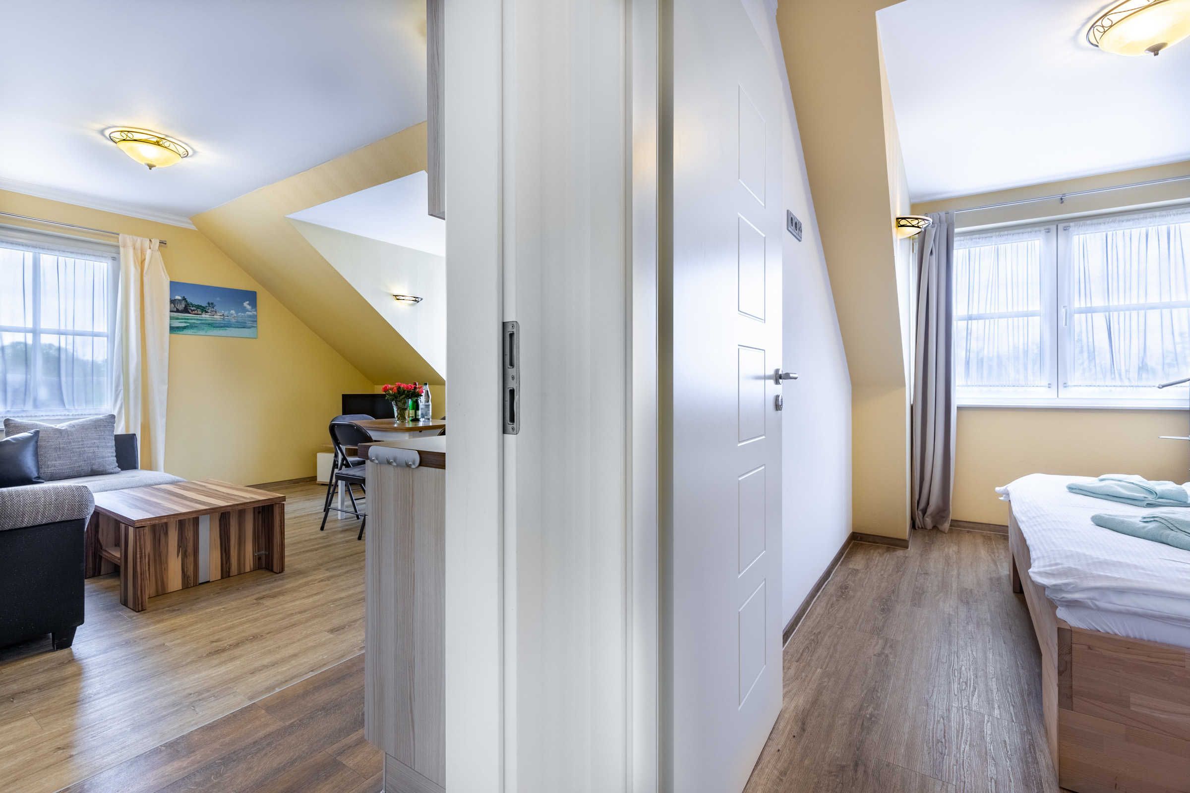 Die großzügigen, hellen und komfortablen Ferienwohnungen sind für 2 - 8 Personen eingerichtet und können ebenso kombiniert gebucht werden. Die Ferienwohnung Barbara ist zudem komplett barrierefrei und rollstuhlgerecht ausgestattet. Das Haus bietet für ebenso Platz für Gruppen. So kann bei Verfügbarkeit das gesamte Haus mit bis zu 30 Personen gebucht werden oder die einzelnen Etagen mit je bis zu 15 Personen.