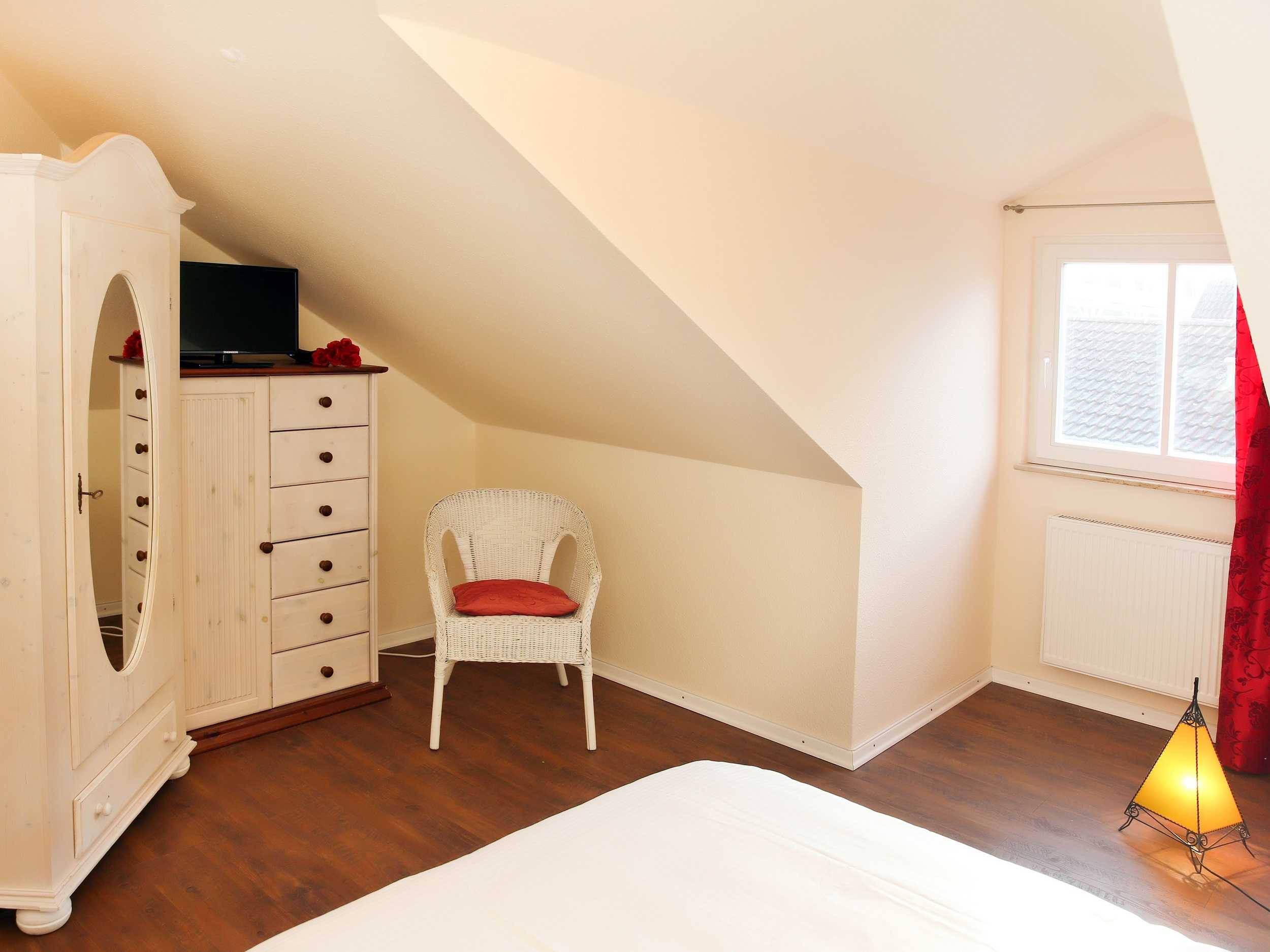 Sie wohnen in einer hochwertig eingerichteten 4-Raum-Ferienwohnung von 93 m² Größe, die sich im ersten Dachgeschoß befindet. Das Wohnzimmer ist ausgestattet mit einer bequemen Sitzgarnitur, Essecke, Flatscreen-TV und Dolby Surround-Anlage mit DVD Player. Vom Wohnraum aus betreten Sie die Südwestdachterrasse, die zum Entspannen einlädt. Die Küche ist ausgestattet mit Geschirrspüler, Mikrowelle, Ceranfeld mit Backofen u.v.m. Die Wohnung verfügt über zwei Schlafzimmer mit Doppelbett, Kleiderschrank und Flatscreen-TV (vom großen Schlafzimmer können Sie den Südostbalkon betreten) sowie ein Schlafzimmer mit Etagenbett. Das Bad mit Eckbadewanne, Dusche und WC vervollständigt das Gesamtbild dieser Wohnung.