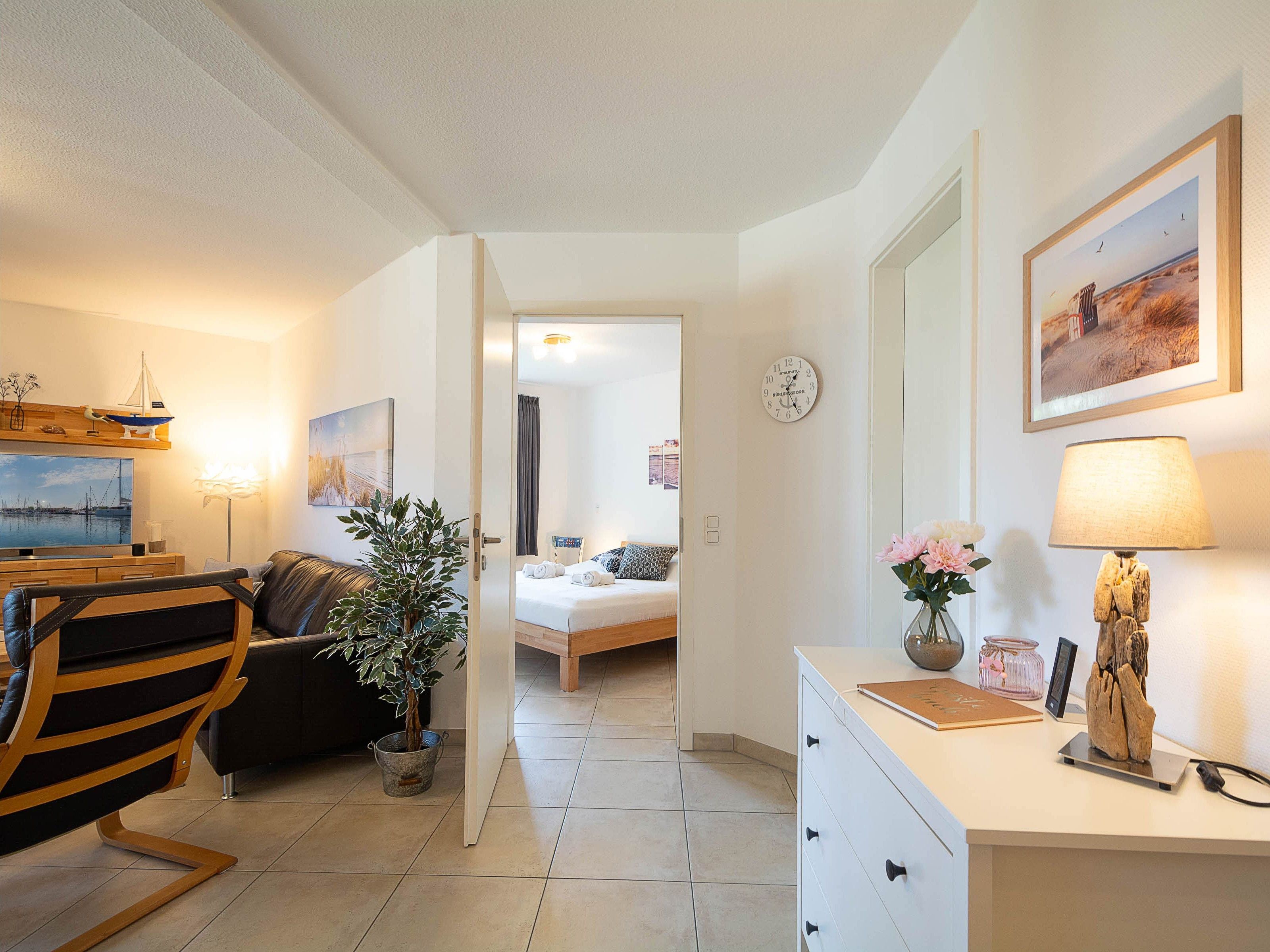 Die großzügig geschnittene und komfortabel ausgestattete 3-Raum-Ferienwohnung bietet auf ca. 60 m² ausreichend Platz für 2 bis 4 Personen. Sie befindet sich in der 1. Etage der beliebten Appartementanlage Strandkrone und überzeugt durch ihre stilvolle Einrichtung, funktionale Raumaufteilung und die strandnahe Lage.
