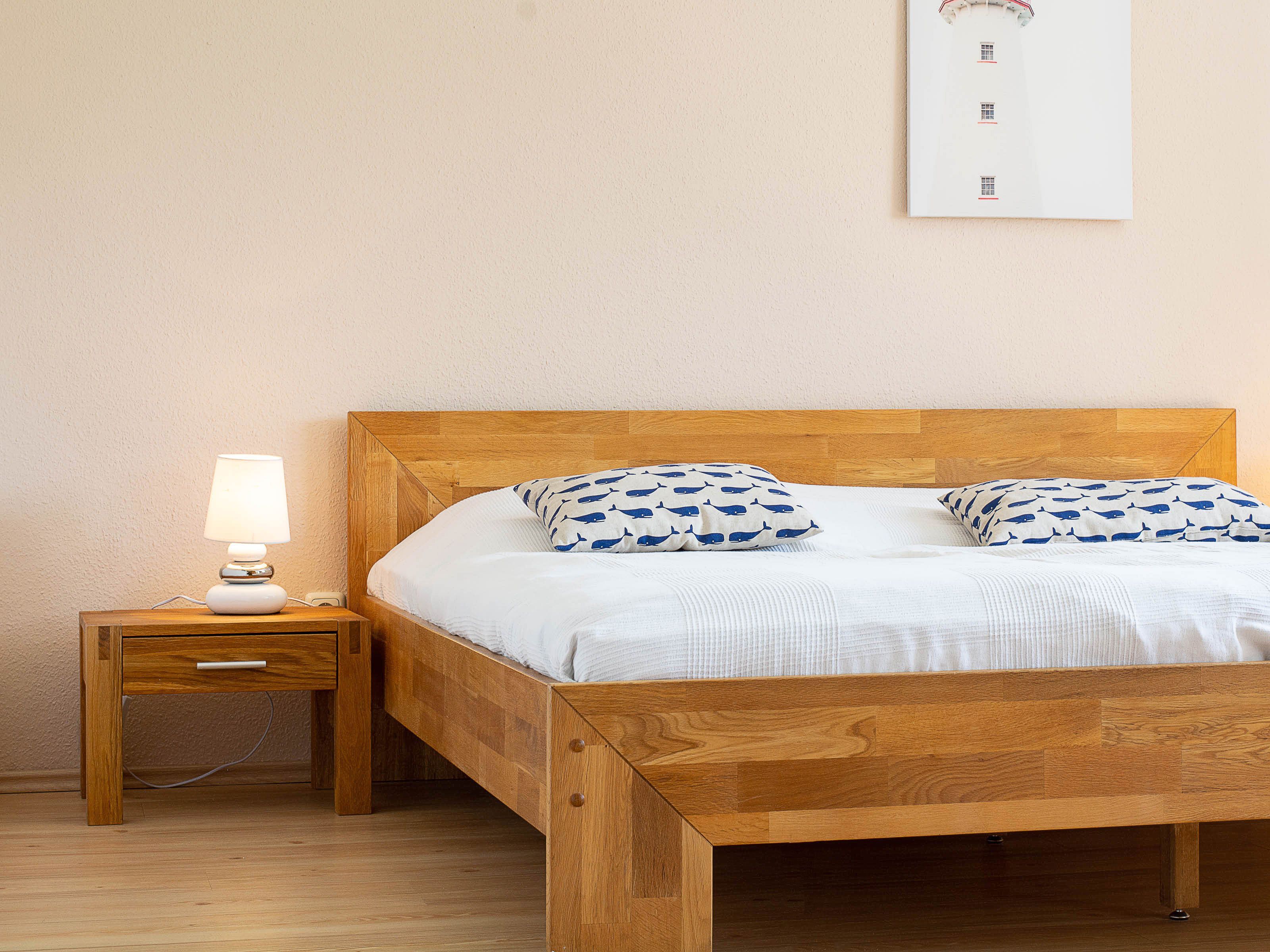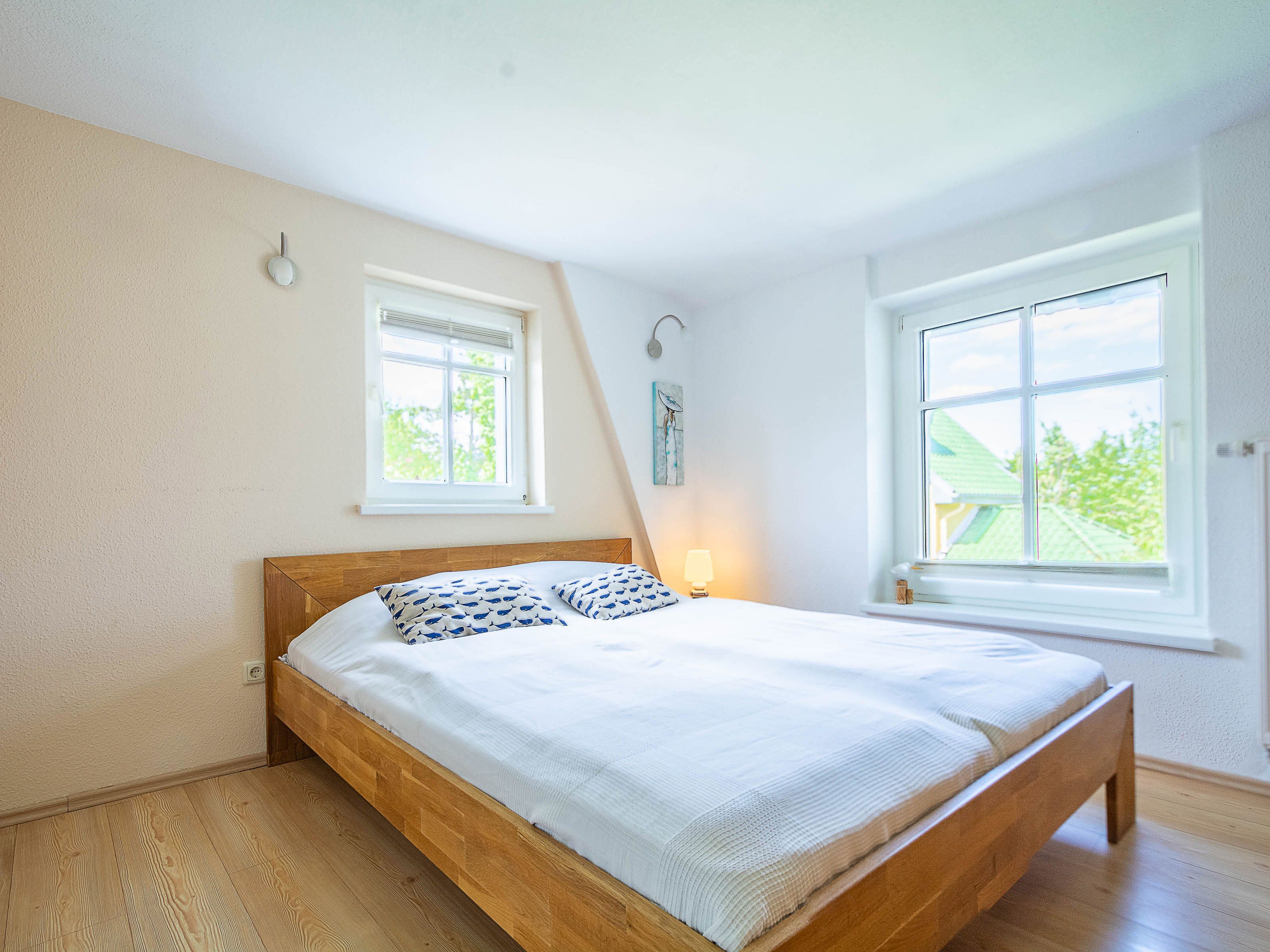 Das erste Schlafzimmer lädt Sie mit einem komfortables Doppelbett (2 x 90 x 200 cm) zur Nachtruhe ein. Der großzügige Kleiderschrank bietet ausreichend Platz für Ihre Urlaubsgarderobe. Ein 32Zoll-SmartTV befindet sich hier ebenfalls auf einer Kommode. Das zweite und dritte Schlafzimmer ist ebenfalls mit einem Massivholzbett (2 x 80 cm x 200cm) und einem Kleiderschrank eingerichtet. Vom dritten Schlafzimmer betreten Sie das Wannenbad. Als Sichtschutz bzw. zum Verdunkeln sind in allen Schlafzimmern Vorhänge und Plissees an den Fenstern angebracht.