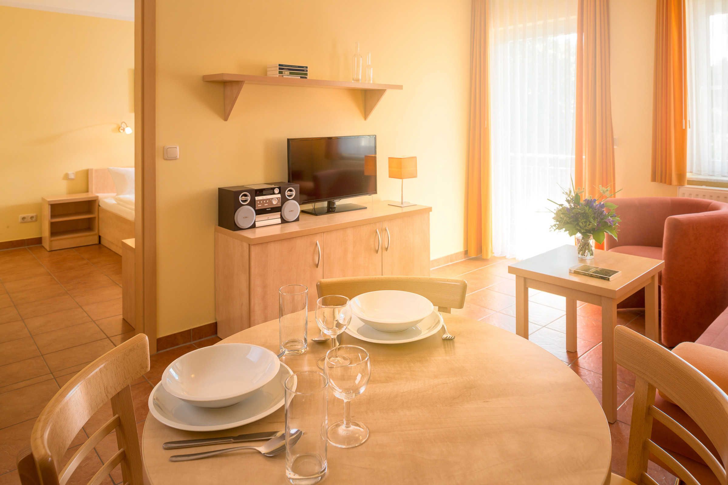 Die komfortablen Ferienwohnungen befinden sich im Haus Lausitz in ruhiger Lage am Waldrand der Granitz. In wenigen Gehminuten erreichen Sie die Wilhelmstraße, die zum Bummeln und zum Verweilen einlädt. Der Ostseestrand mit der herrlichen Seebrücke ist nur ca. 200m entfernt. Zur Bushaltestelle sind es ca. 600m und den Bahnhof des Rasenden Rolands erreichen Sie in 15 Minuten Fußweg. Das Freizeitbad ist ca. 800m entfernt. Jede Wohnung hat einen PKW-Stellplatz auf dem Objekt. Ein Kinderspielplatz und ein Grillplatz sind ebenfalls vorhanden. Das Haus Lausitz verfügt über einen separaten Gemeinschaftsraum mit bis zu 40 Sitzplätzen, einschließbar und separater Küche und Toiletten. Die Sauna ist kostenpflichtig. Für Radler und Wanderer ist es ein idealer Ausgangspunkt für ihre Aktivitäten. Kostenloses WLAN-steht im Objekt zur Verfügung.