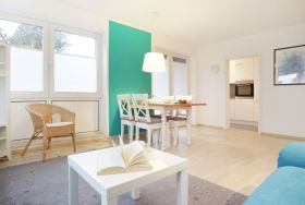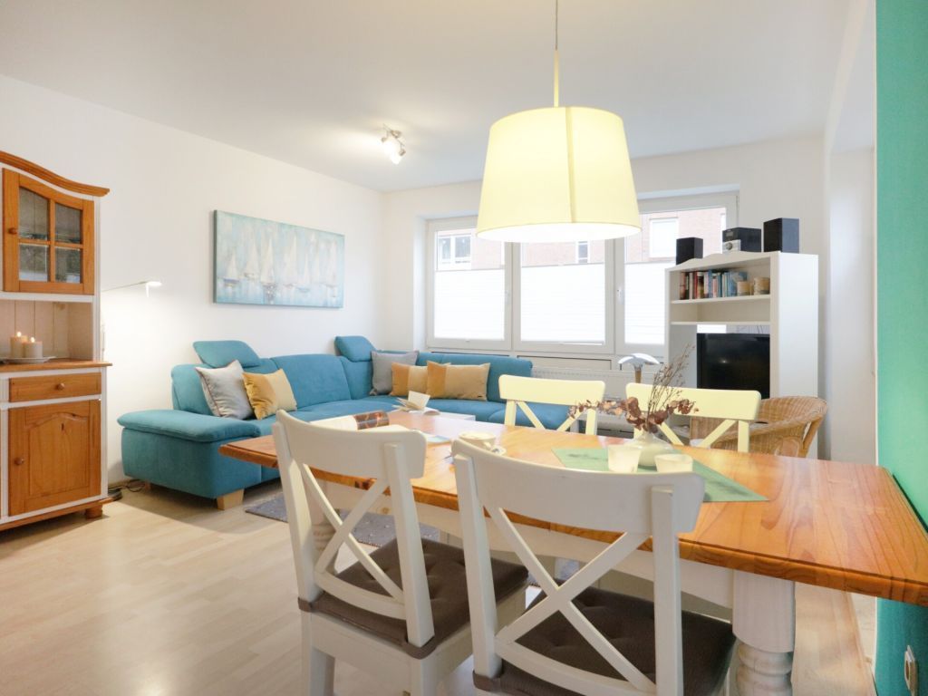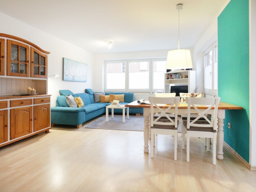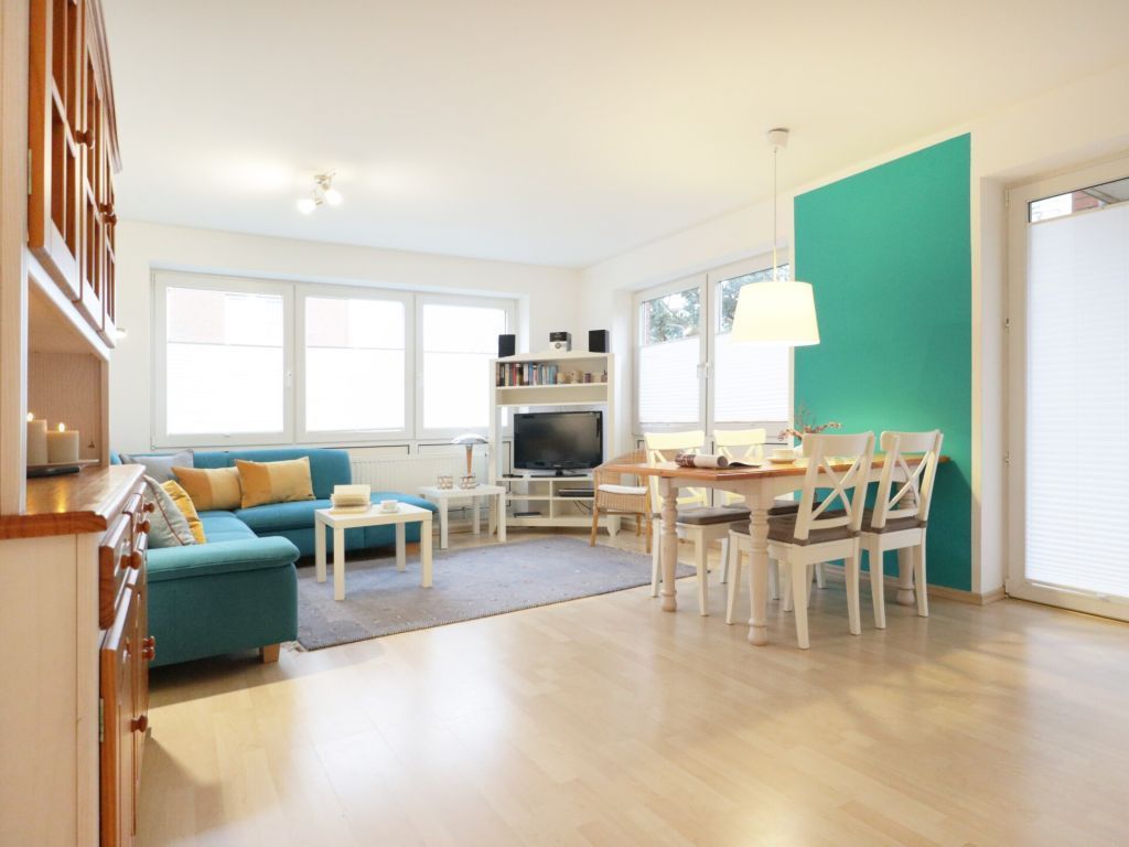 Das 2- Zimmer Ferienappartement Goosbrink 4 befindet sich nur 150 Meter zu Strand und empfängt Sie modern und schick möbliert. Die Wohnfläche beträgt 53qm und ist auf eine Belegung mit maximal 4 Personen ausgerichtet. Der helle Wohn-/Essereich bietet ein Komfortsofa, welches auch als Schlafgelegenheit für 2 Personen dienen kann. Für gemeinsame Mahlzeiten ist ein großer Esstisch im Wohnzimmer vorhanden und von hier gelangen Sie auf die sonnige Terrasse, die zum Entspannen einlädt. Für technische Unterhaltung im Wohnbereich sorgen zudem ein Flachbildfernseher sowie eine Musikanlage. In der separaten Küche befinden sich ein Ceranfeldherd, Backofen, Kühlschrank, Wasserkocher, Toaster, Kaffeemaschine usw. Erholsame Nächte verbringen Sie in dem geräumigen Schlafzimmer, das mit einem Doppelbett und Kleiderschrank eingerichtet ist. Zugehörig ist ein hell gefliestes, kleines Duschbad. Für mitgebrachte Fahrräder steht am Nebengebäude ein abschließbarer Abstellraum im Außenbereich bereit. Kostenfrei parken Sie Ihren PKW auf dem hauseigenen Außenabstellplatz. Die Wohneinheit Goosbrink 4 ist eine Nichtraucherwohnung. Haustiere sind nicht gestattet.