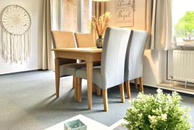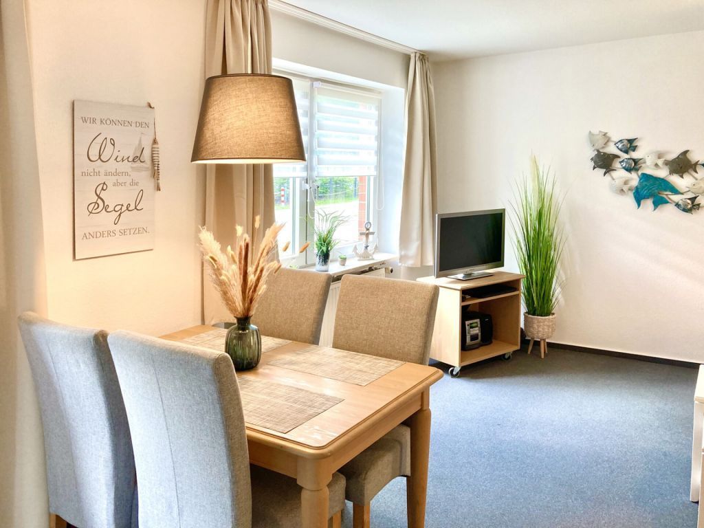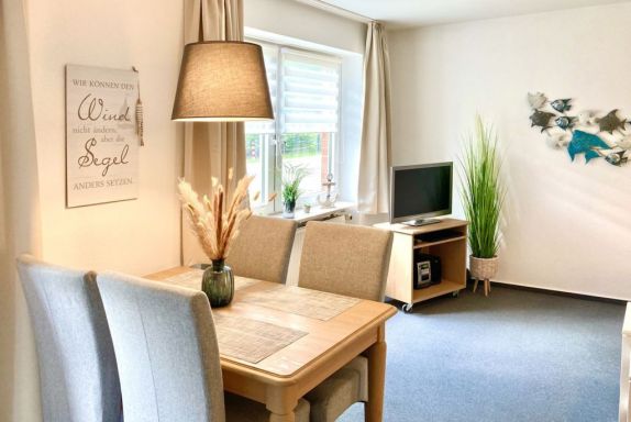 Nur 150 Meter zum Strand liegt das behaglich ausgestattete 2-Zimmer Erdgeschoss Appartement Goosbrink 3, welches über eine geräumige Wohnfläche von 50qm verfügt und zudem eine saisonal möblierte Terrasse bietet. Im gemütlichen Wohnzimmer befindet sich eine ausziehbare Couch, die in zwei zusätzliche Schlafmöglichkeiten umgewandelt werden kann. Ihre gemeinsamen Mahlzeiten nehmen Sie an einem Esstisch im Wohnbereich ein. Die voll ausgestattete Küche ist separat und mit Ceranfeldherd, Backofen, Mikrowelle, Geschirrspüler sowie Kaffeemaschine, Toaster usw. ausgestattet. Zugehörig ist ein hell gefliestes Duschbad, wo auch eine Waschmaschine kostenfrei zur Verfügung steht. Das Schlafzimmer ist mit einem Doppelbett Matratzen und einem Kleiderschrank eingerichtet. Für die kleinen Gäste stehen ein Kinderreisebett sowie ein Kinderhochstuhl bereit. Wäschepakete können gegen Gebühr hinzu gebucht werden. Ihren PKW parken Sie kostenfrei auf einem für Sie reservierten Außenstellplatz nah des Hauses.