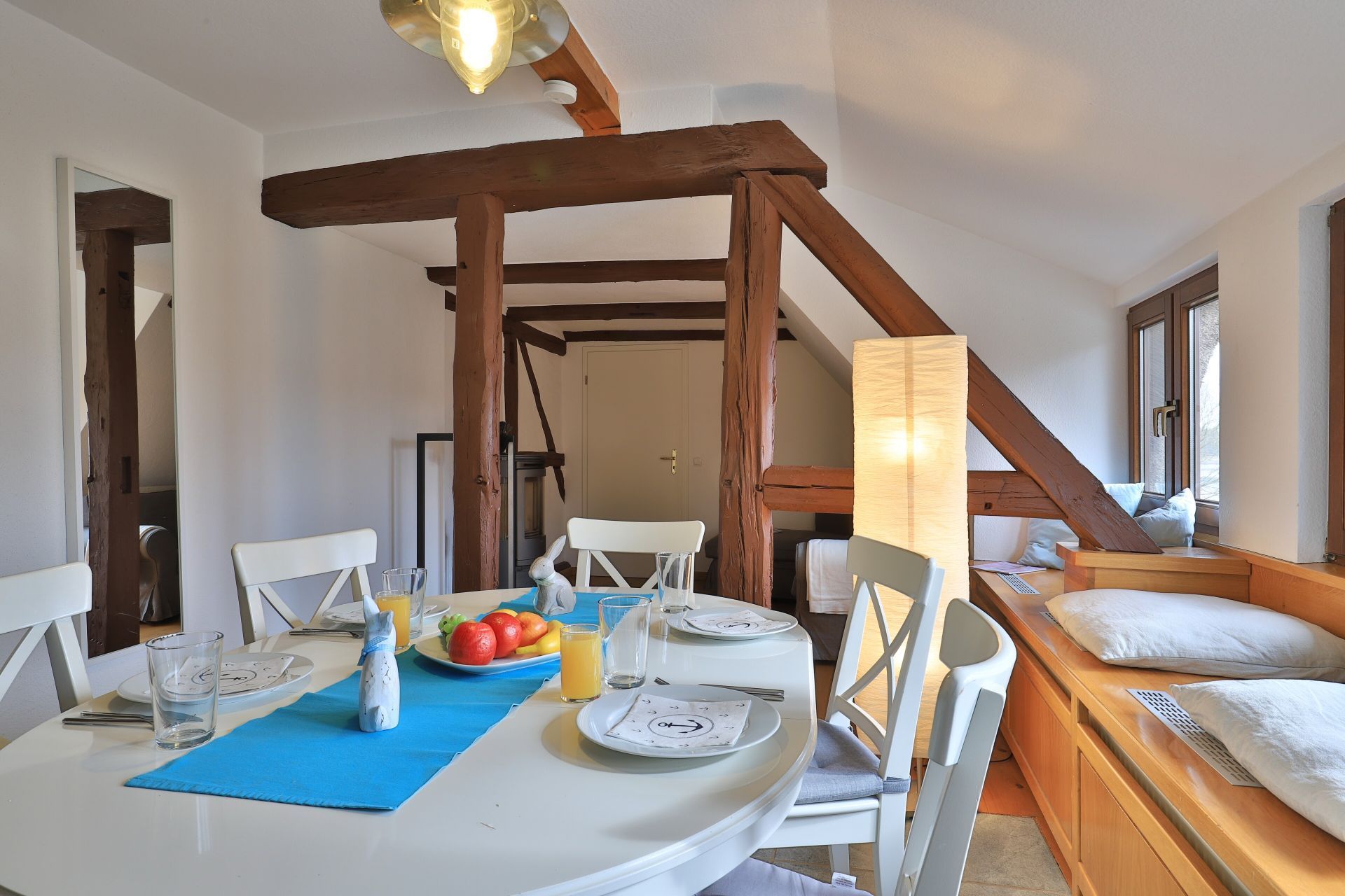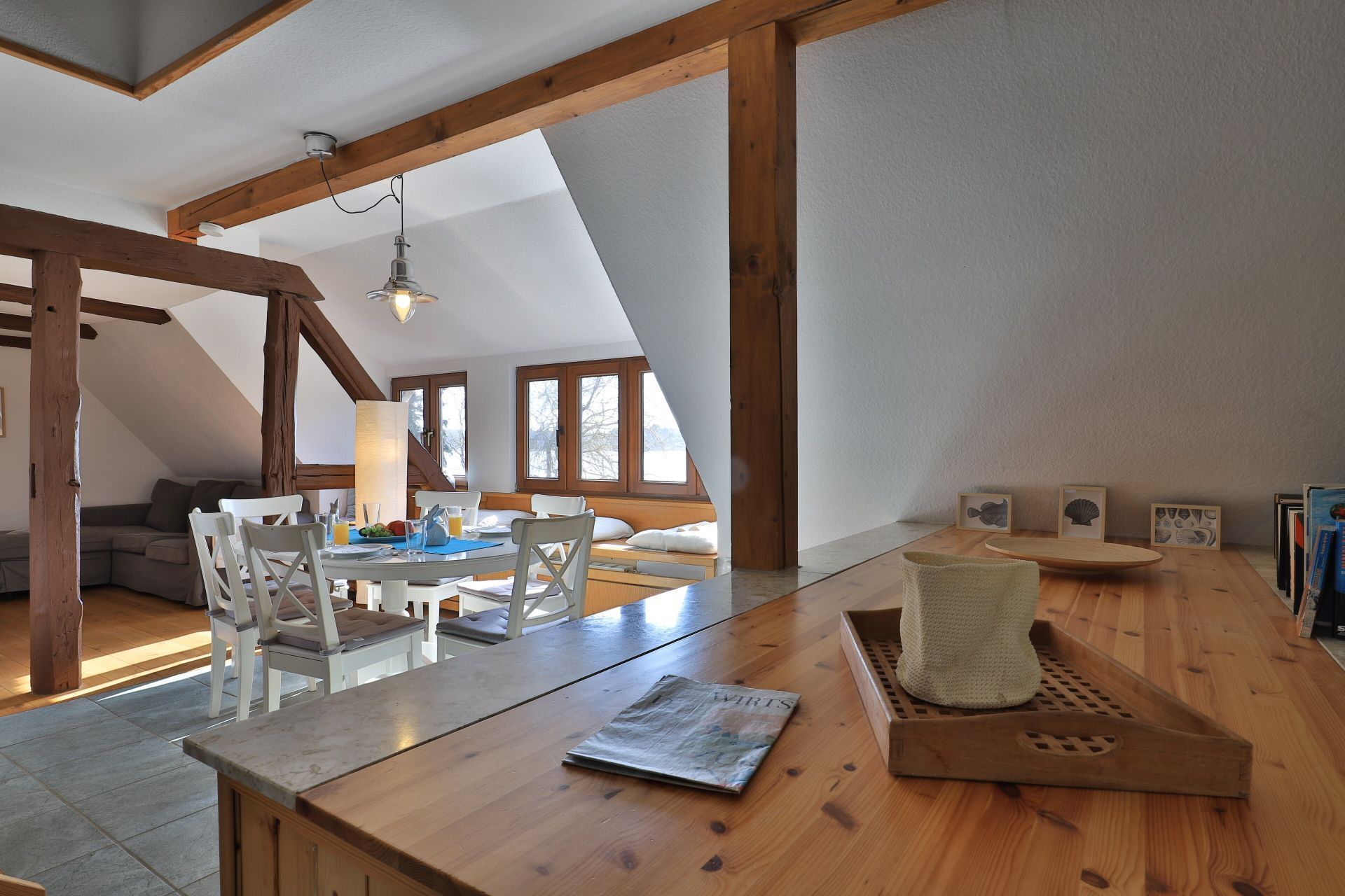 Für unsere Gäste, die sich nach Ruhe und Erholung sehnen bieten wir im historisch Reetgedeckten Fischerhaus drei komfortable 2 und 3 Zimmer Ferienwohnungen direkt am Neukloster See. Zwei der Wohnung verfügen über eigene Terrassen. Eine der Wohnungen befindet sich als Maisonette im Dachgeschoss des Hauses. Jede der Wohneinheiten lässt Sie den Blick auf den See genießen. Den Hausgästen stehen ein großes Gartengrundstück mit eigenem Seezugang zur Verfügung. Das familienfreundliche Feriendomizil bietet zudem gute Bade- und Angler Möglichkeiten. Die Zufahrt zum Gelände am Fischerhaus ist unseren Urlaubern vorbehalten. Gute Einkaufmöglichkeiten befinden sich in naher Umgebung. Insgesamt bietet die historische Ortschaft Neukloster eine gute Infrastruktur. Die hier beschriebene 3 -Zimmer Ferienwohnung Sonnenaufgang ist eine Maisonette Wohnung mit einer von Wohnfläche von 74qm. Eine Belegung ist mit maximal 4 Personen möglich. Der große Gemeinschaftsgarten lädt zum Entspannen ein. Behaglicher Wohnbereich mit Kaminofen. Moderne Wohnküche. Zwei Schlafzimmer. Geräumiges Tageslicht Vollbad. Ein PKW- Außenstellplatz befindet sich am Haus. Diese Wohneinheit ist eine Nichtraucherwohnung. Haustiere sind nicht gestattet.