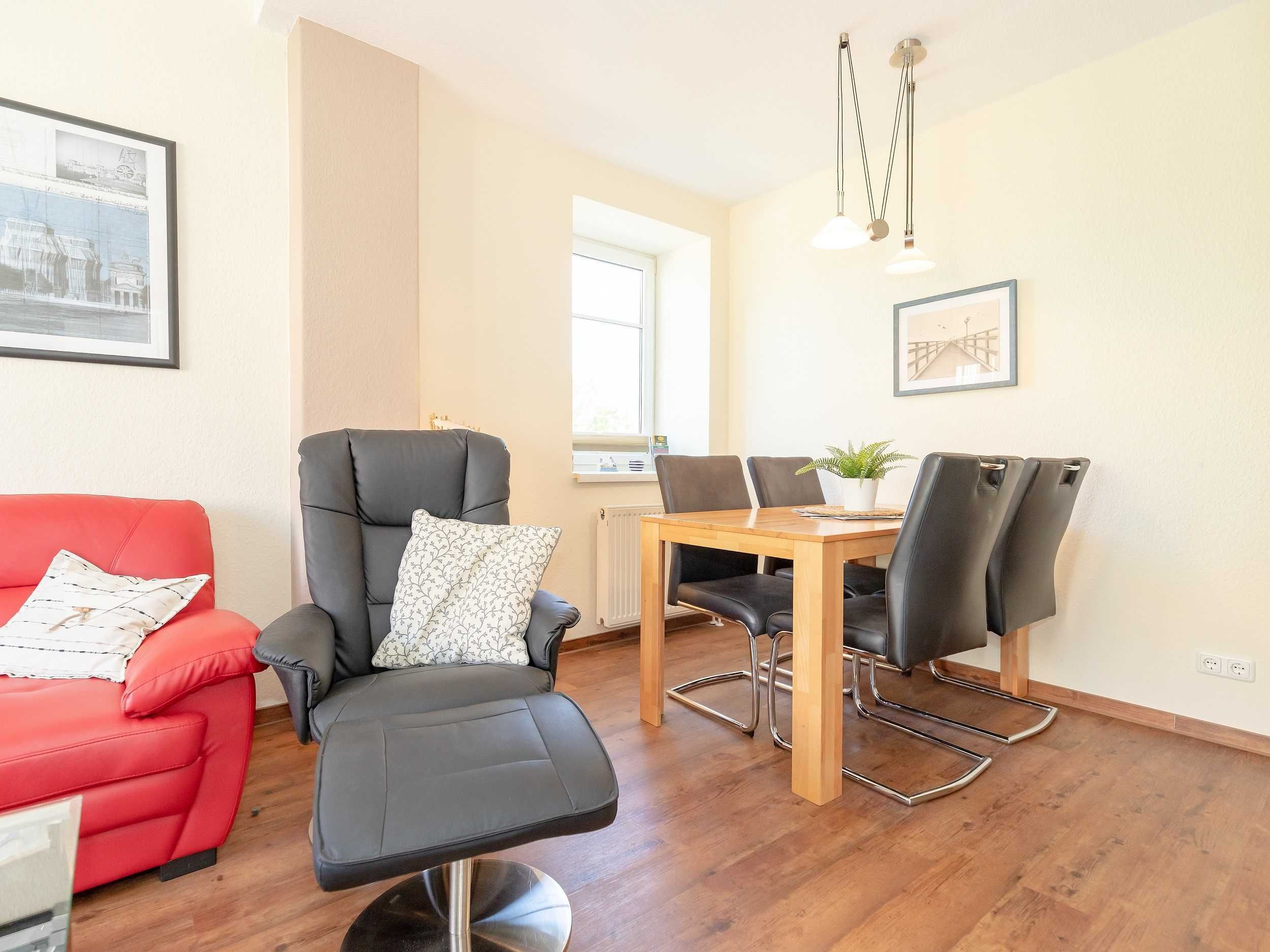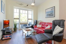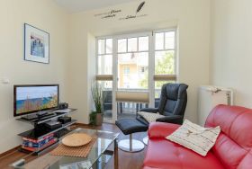 Die helle und freundliche 3-Raum-Ferienwohnung von 52qm befindet sich im ersten Obergeschoss und bietet genügend Platz für 2 bis 4 Personen. Es begrüßt Sie ein liebevoll eingerichteter Wohnraum mit 2 Sesseln, Couchgarnitur und Flachbild-TV. Von hier können Sie den nach Westen ausgerichteten möblierten Balkon betreten, einen schönen Ausblick auf die Stadt genießen und schöne Stunden in der Sonne verbringen. Anschließend an den Wohnraum befinden sich der Essbereich mit 4 Stühlen sowie die gut ausgestattete Küchenzeile (mit Geschirrspüler, Backofen, 4-Platten-Cerankochfeld, Mikrowelle, Dunstabzugshaube, Kühlschrank, Kaffeemaschine, Wasserkocher, Toaster). Ein Schlafzimmer mit Doppelbett, großem Kleiderschrank und Flachbild-TV sowie ein weiteres Schlafzimmer mit Queensize-Bett (1,60 m x 2,0 m) und Kleiderschrank sowie das Bad mit Dusche und WC vervollständigen das Gesamtbild dieser wunderschönen Wohnung.