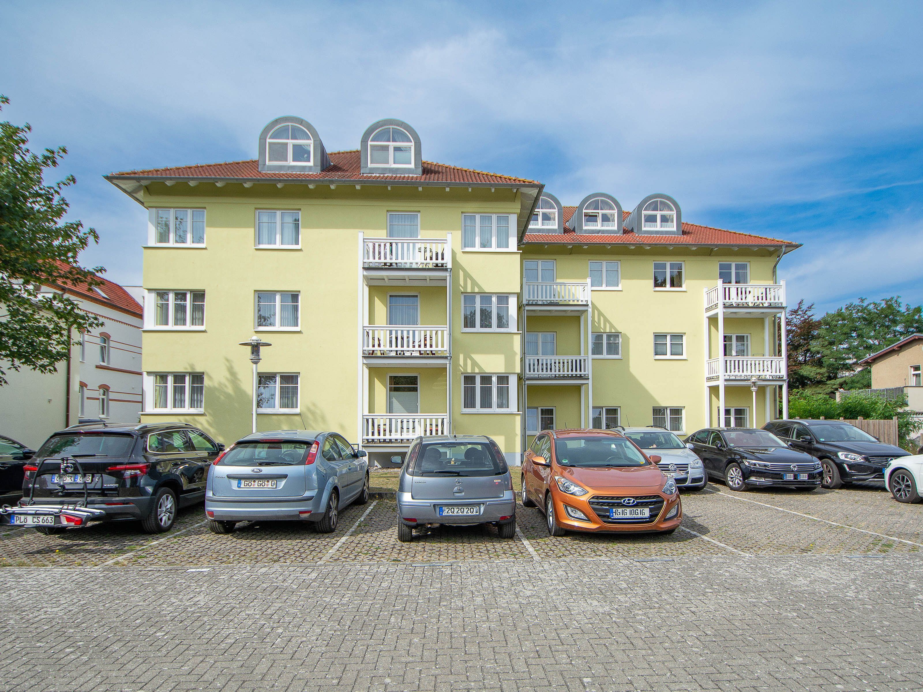 Die Appartementanlage Strandschlösschen wurde im Stil der Bäderarchitektur erbaut und liegt im westlichen Teil von Kühlungsborn, zentral und in Strandnähe. Die liebevoll eingerichteten 2- bis 3-Raum-Ferienwohnungen sind Nichtraucherwohnungen und haustierfrei. Jeder Wohnung ist ein kostenloser, nummerierter Pkw-Stellplatz hinter dem Haus zugeordnet. Für zusätzlichen Komfort steht Ihnen im Haus ein Aufzug zur Verfügung. Für Ihre ausgeliehenen oder mitgebrachten Fahrräder gibt es einen Fahrradraum im Keller (über eine Außentreppe zugänglich) sowie Fahrradständer hinter dem Haus.