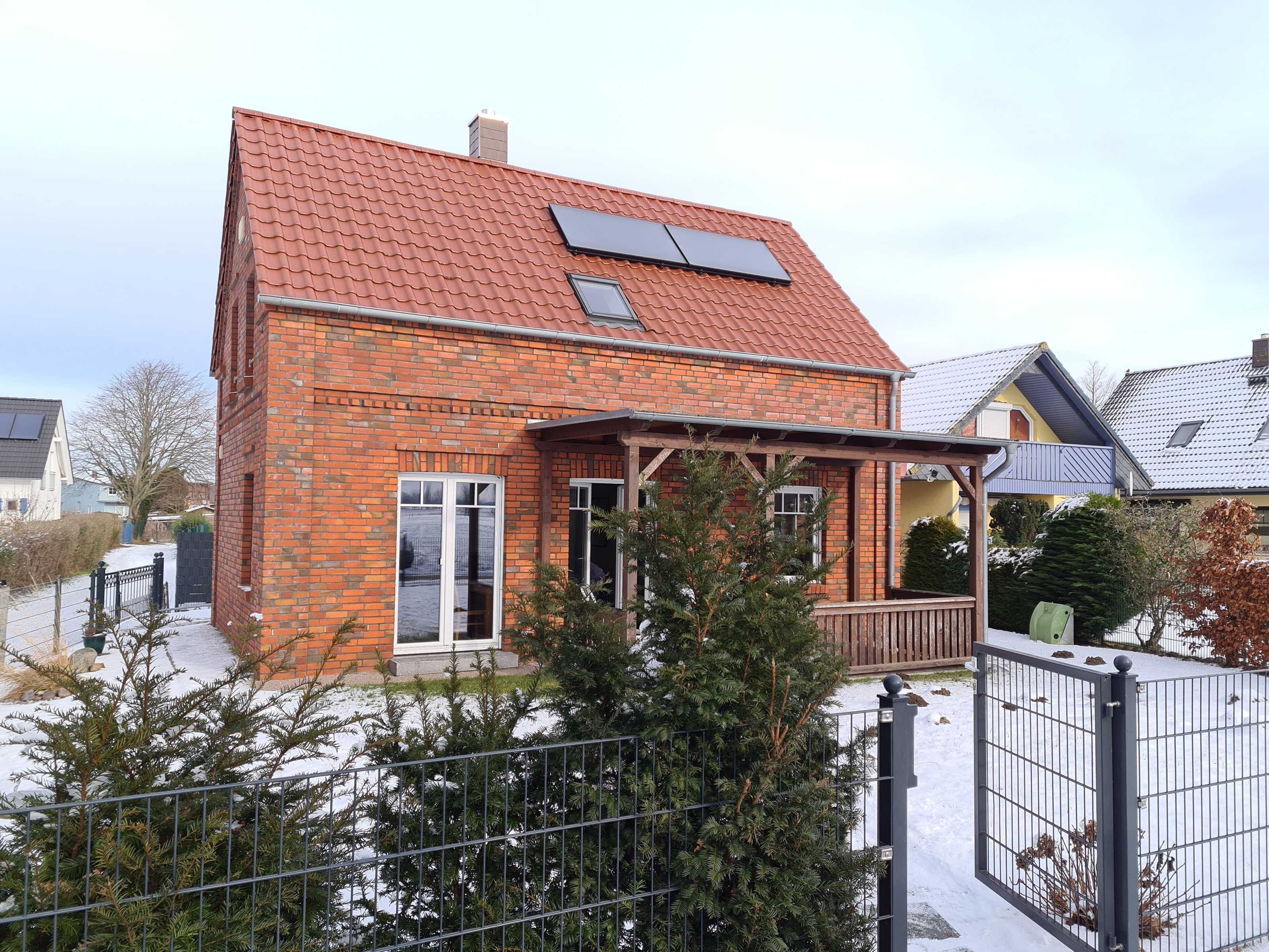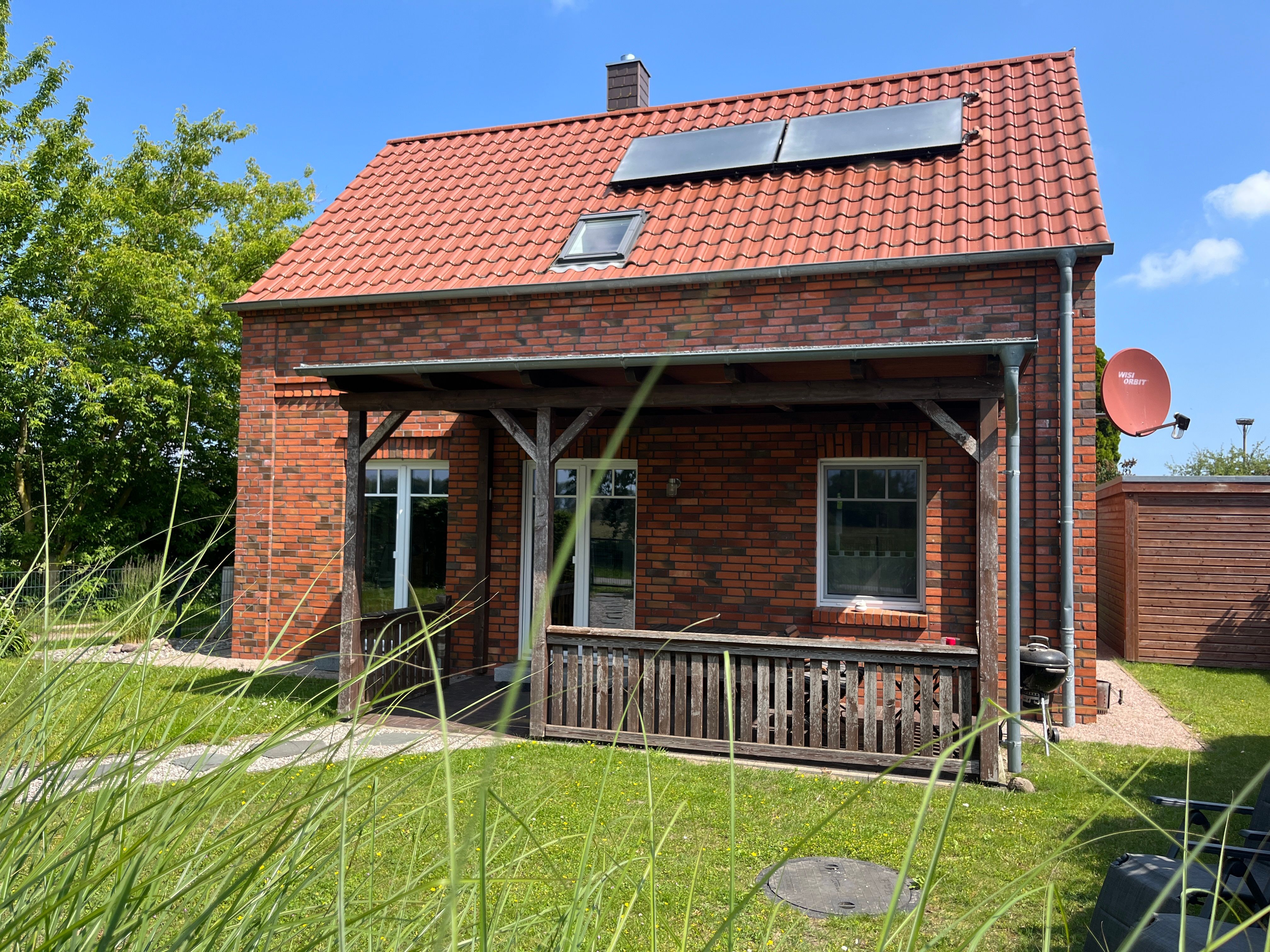 3-Raum-Ferienhaus (90m²; max. 5 Personen), 2 Bäder, überdachte Grillterrasse, Waschmaschine, eingezäunter und sichtgeschützter Garten. Abschließbarer Unterstellplatz für eigene Fahrräder oder Surfbretter am Haus.