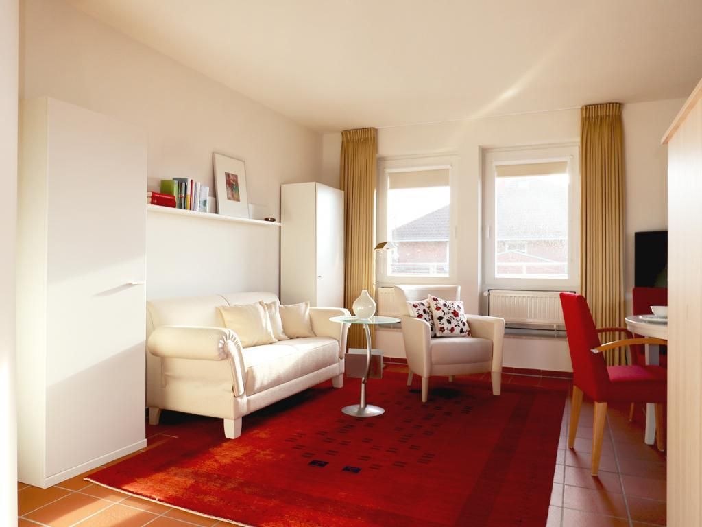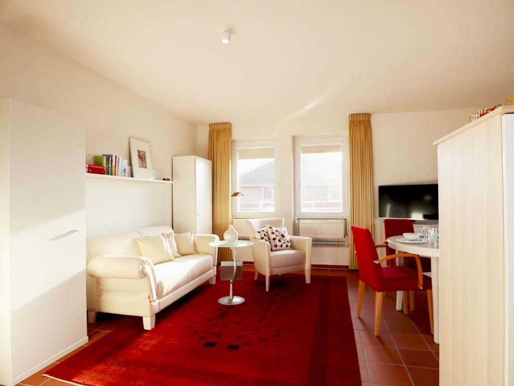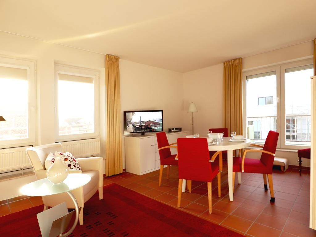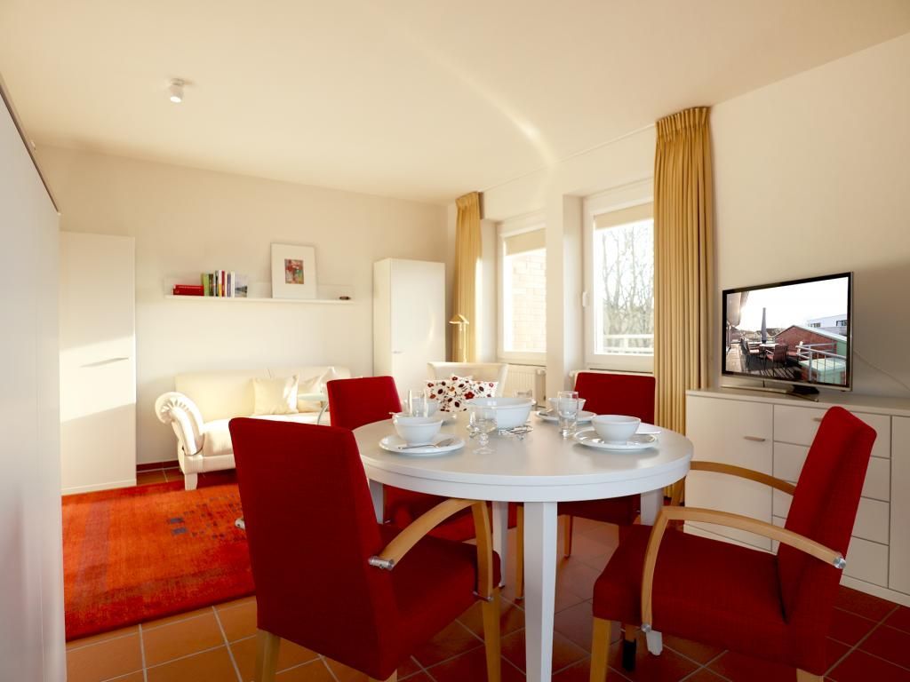Im 2. Obergeschoss des Hauses empfängt Sie die attraktive 3-Zimmer Ferienwohnung Goosbrink 10 mit einer Wohnfläche von 60qm und umlaufender Dachterrasse in Ausrichtung Nord -Nordwest und Süd. Eine Belegung der Wohnung ist mit maximal 4 Personen möglich. Der helle und gemütliche Wohn-Essbereich ist mit einer Sitzgarnitur, Side Bord sowie einem großen Esstisch möbliert. Flachbildfernseher und Musikanlage sorgen für Unterhaltung. Die in den Wohnbereich integrierte Küchenzeile ist bestens ausgestattet mit Ceranfeldherd, Backofen, Kühlschrank mit Gefrierfach, Geschirrspülmaschine sowie Wasserkocher, Kaffeemaschine usw. Des Weiteren ermöglichen zwei separate Schlafzimmer jeweils mit Doppelbett angenehme Nächte. In einem der Schlafzimmer befindet sich ein zweites TV - Gerät. Ihre Urlaubsgarderobe können Sie in einem großzügigen Kleiderschrank unterbringen. Ein Tageslicht Duschbad mit Waschmaschinen Nutzung ist ebenso in dem Appartement vorhanden. Ihren PKW parken Sie kostenfrei auf dem für Sie reservierten Außenstellplatz. Bitte beachten Sie, dass es sich um eine Nichtraucherwohnung handelt. Haustiere sind nicht gestattet. Die strandnahe Appartementanlage lieg nah zu einem Lebensmittel Geschäft und auch gastronomische Ziele erreichen Sie in Kürze.