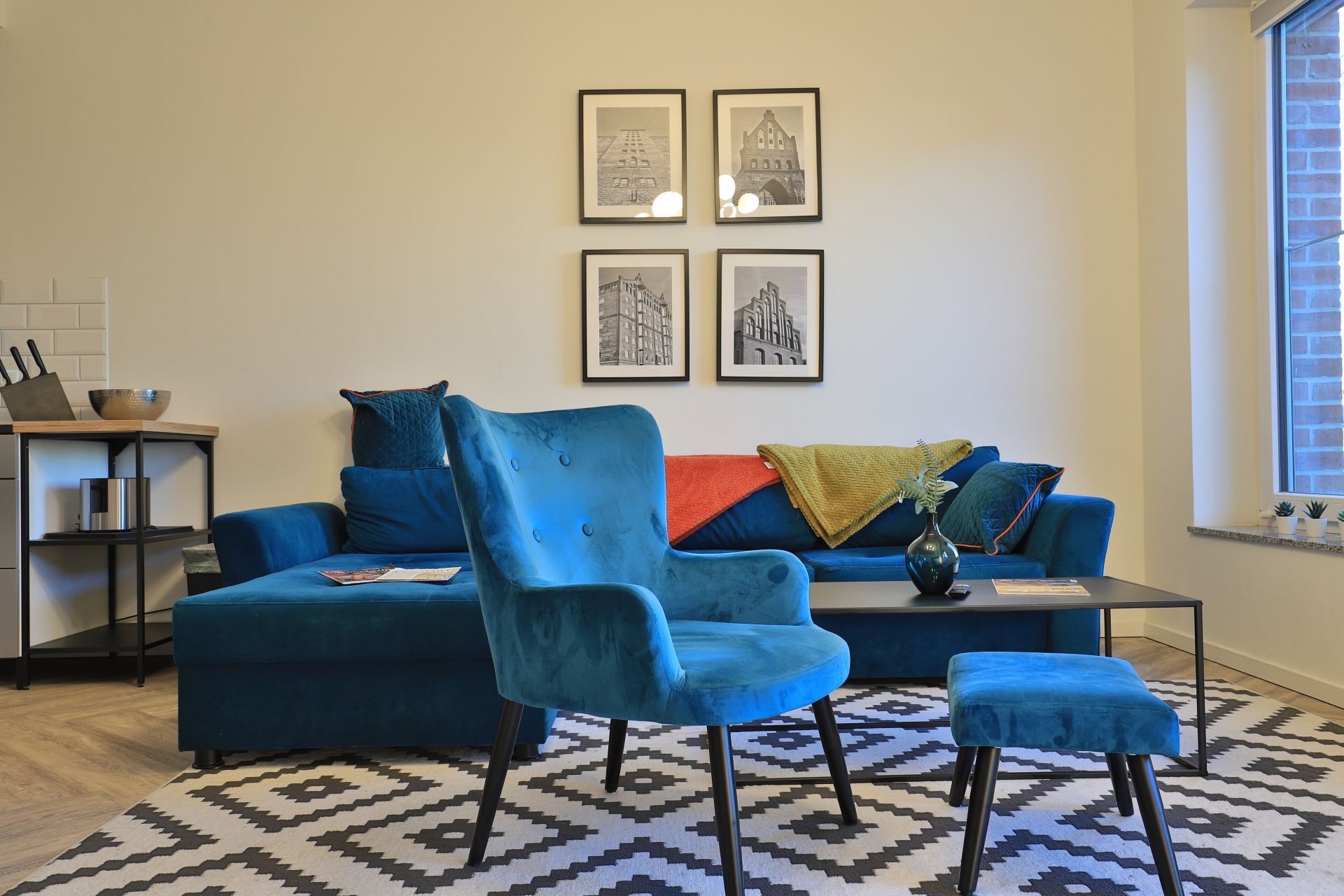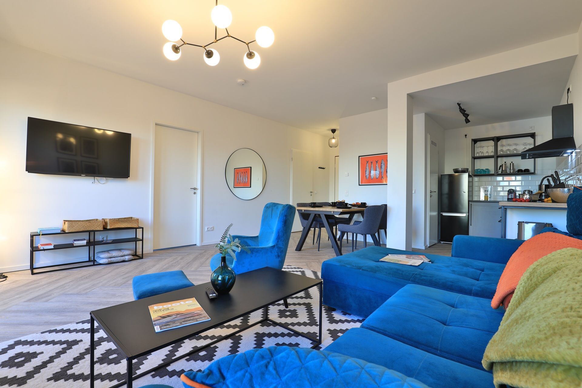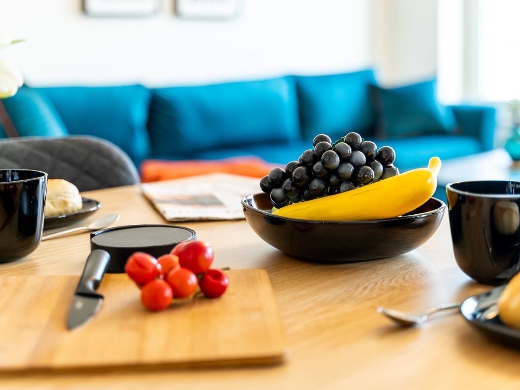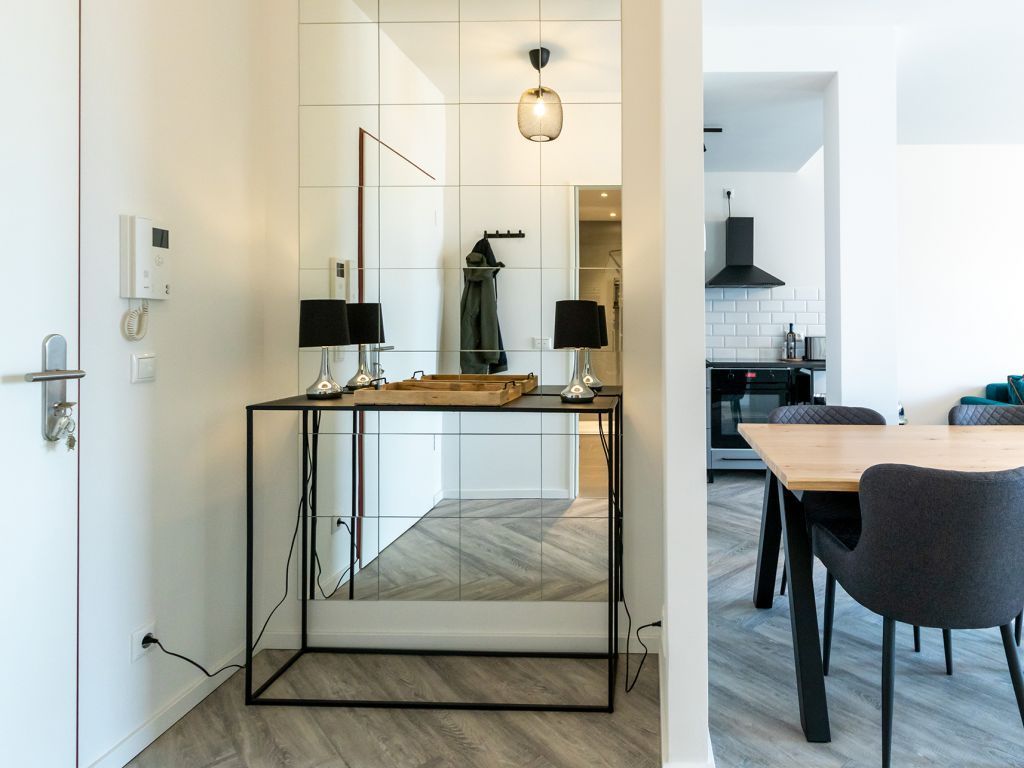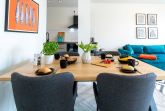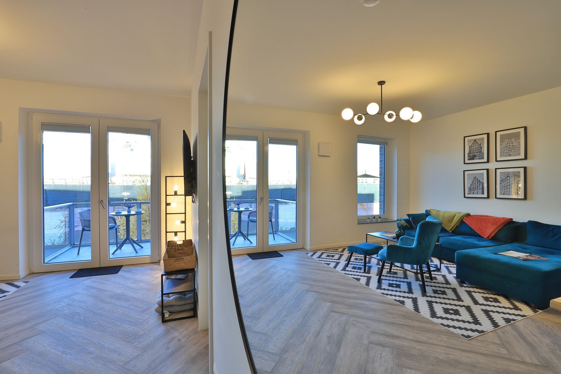 Das Appartement in der Hafenspitze 21 befindet sich im 2. Obergeschoss des Hauses und ist mit dem Personenaufzug leicht erreichbar. Die attraktive 2-Zimmer-Wohnung besitzt einen saisonal möblierten Balkon mit Blickrichtung zum Alten Holzhafen. Es empfängt Sie ein sehr modernes Ferienappartement für maximal 4 Personen mit einer Wohnfläche von 56qm. Der elegant gestaltete Wohn-Essbereich empfängt Sie herzlich mit einer bequemen Sitzgarnitur, welche Ihnen zwei zusätzliche Schlafgelegenheiten bieten kann, einem Ruhesessel sowie technischer Unterhaltung mit Internet fähigem TV sowie Radio mit Hotelmodus. WLAN nutzen Sie selbstverständlich kostenfrei.