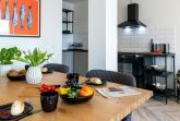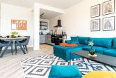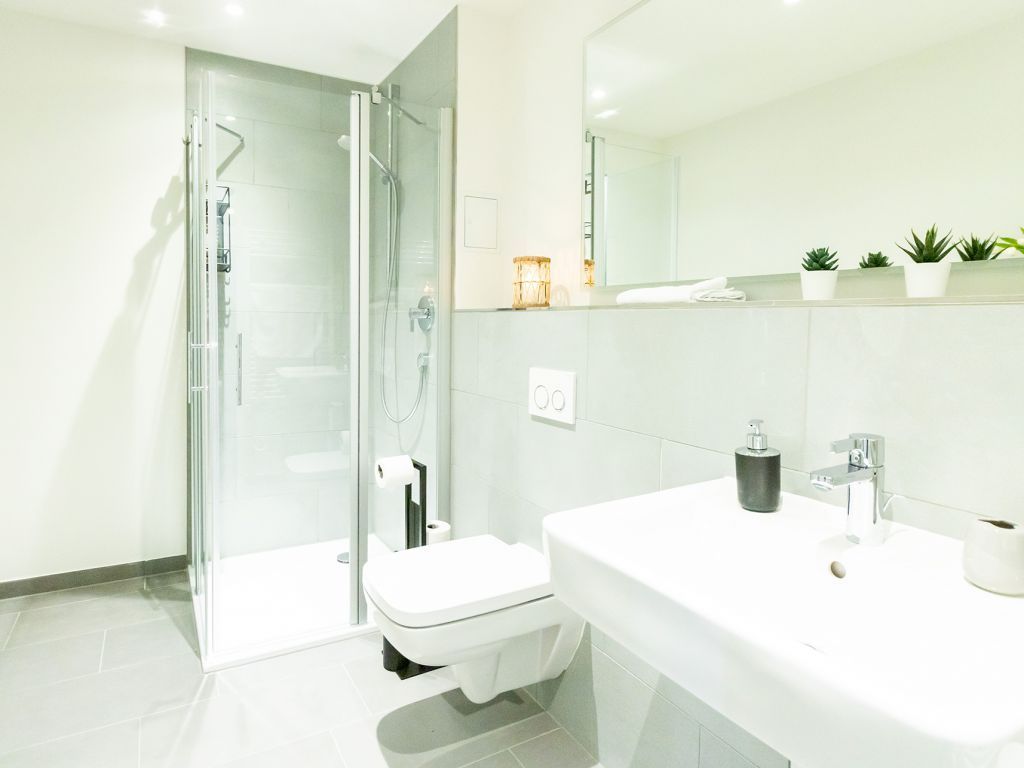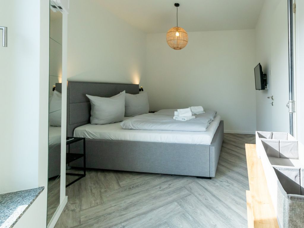 Für gemeinsame Mahlzeiten befindet sich ein großzügiger Esstisch im Wohnraum Ihres Appartements. Integriert ist zudem eine offene Wohnküchenzeile, die bestens ausgestattet ist mit Ceranfeldherd sowie Kleingeräten Toaster, Kaffeemaschine, Wasserkocher usw. Die Ferienwohnung verfügt ebenso über ein separates Schlafzimmer mit Doppelbett und einem Schrank für Ihre Garderobe. Ihr Morgen beginnt in einem komfortablen, innenliegenden Badezimmer mit bodentiefer Dusche, WC und Handtuchheizkörper. Als inklusive Leistung sind bei Ihrer Anreise die Betten für 2 Personen bereits bezogen und auch Hand/ Duschtücher liegen bereit.