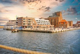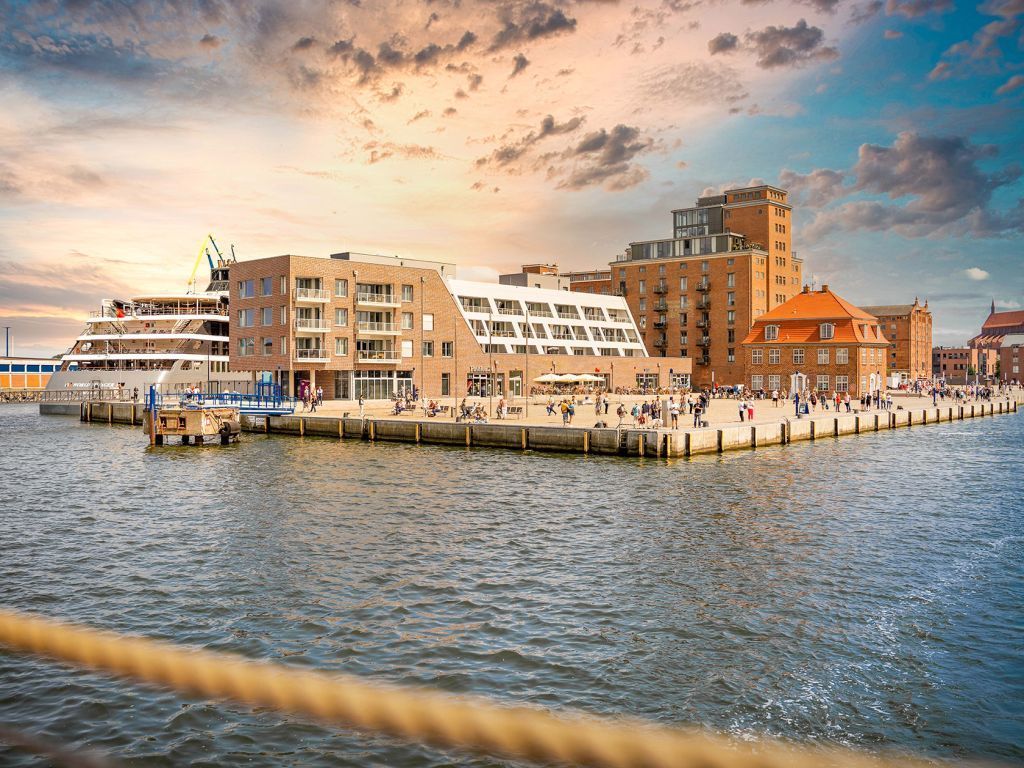 Direkt am Alten Hafen der Hansestadt Wismar, befindet sich als Nachbargebäude zum restaurierten Ohlerich Speicher die neu erbaute Luxus Ferienwohnanlage “Hafenspitze“. Es erwarten Sie insgesamt 39 hotelähnliche, exklusive Ferienappartements jeweils mit Balkon, Loggia oder Terrasse. Bei den exzellenten Appartements handelt es sich um 2- und 3-Zimmer Wohnungen von 42qm bis 99qm Wohnfläche in hochwertiger Ausstattung. Alle Appartements verfügen über Fußbodenheizung. Die Wohneinheiten unterteilen sich über drei Geschosse und sind bequem mit dem Fahrstuhl erreichbar. Einige der Feriendomizile sind barrierearm konzipiert. Kostenfreie WLAN-Nutzung ist selbstverständlich. Fahrradabstellmöglichkeit in begrenzter Anzahl sind vorhanden. Jede Ferienwohnung bietet die Aussicht auf das Hafengebiet und die Ostsee. In der Hafenspitze befinden sich zudem eine BAIS-Gäste-Rezeption sowie Gastronomie und diverse kleine Shops. Sie verbringen Ihren Aufenthalt in maritimer Umgebung und gelangen in wenigen Gehminuten zur Altstadt von Wismar mit historischen Bauten und Kirchen der Backsteingotik mit Aussichtsplattform und Blick über die Hansestadt.