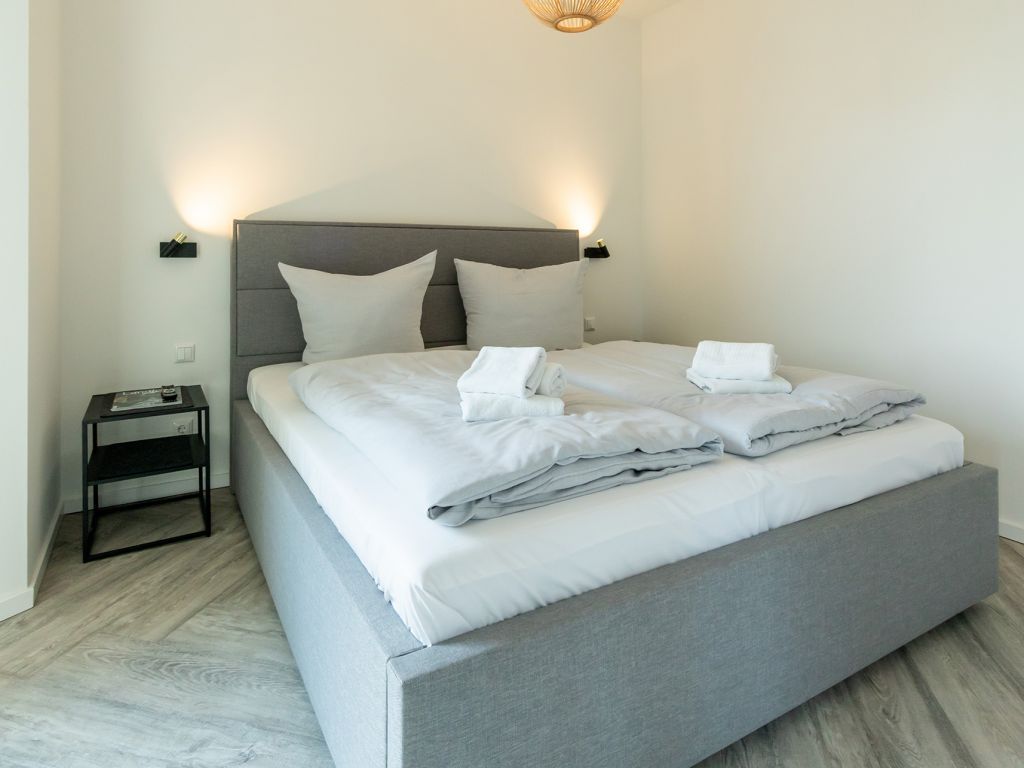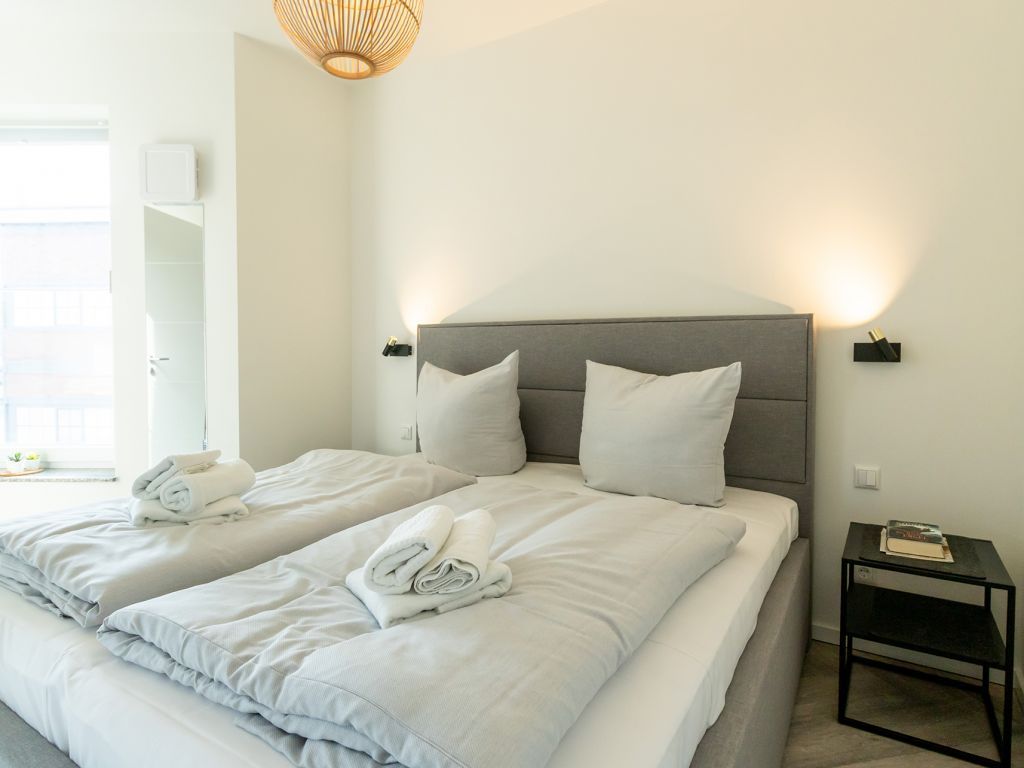Das hier beschriebene Domizil Hafenspitze 21 bietet als 2-Zimmer-Ferienwohnung mit Balkon besten Komfort. Die geräumige Wohnfläche beträgt 56qm und ist ideal für eine Belegung mit 2 Personen. Mit maximal 4 Personen ist eine Buchung möglich. Diese Wohneinheit verfügt, wie alle Appartements der Hafenspitze, über eine voll ausgestattete Küchenzeile. Ein separates Schlafzimmer sowie 1 moderndes Duschbad mit Fußbodenheizung sind zugehörig. Bei Anreise mit 2 Personen sind bezogene Betten und Handtücher inklusive. Es handelt sich um eine Wohnung für Nichtraucher. Parkmöglichkeiten gegen Gebühr befinden sich im nah gelegenen Parkhaus in ca. 300 Meter.