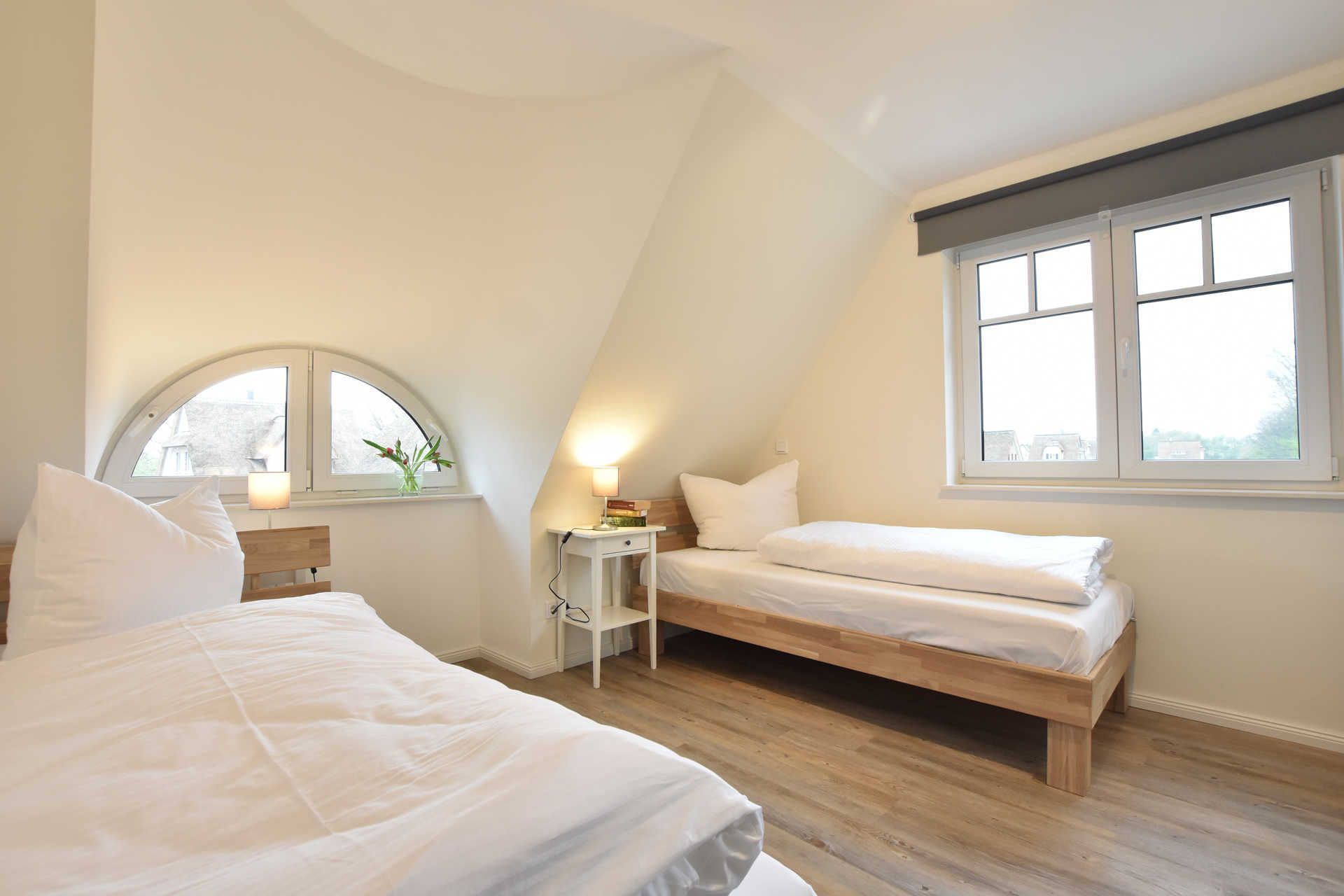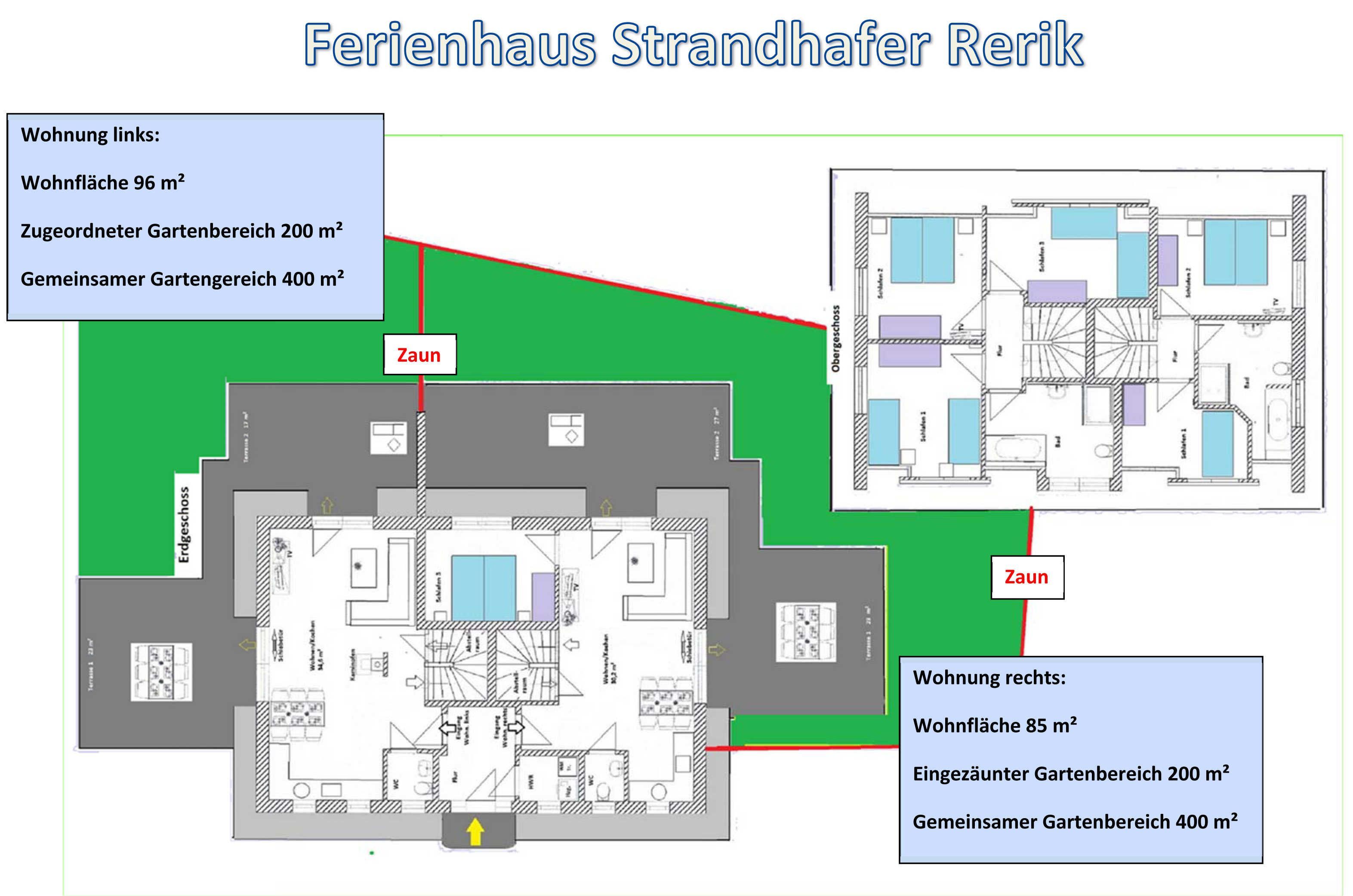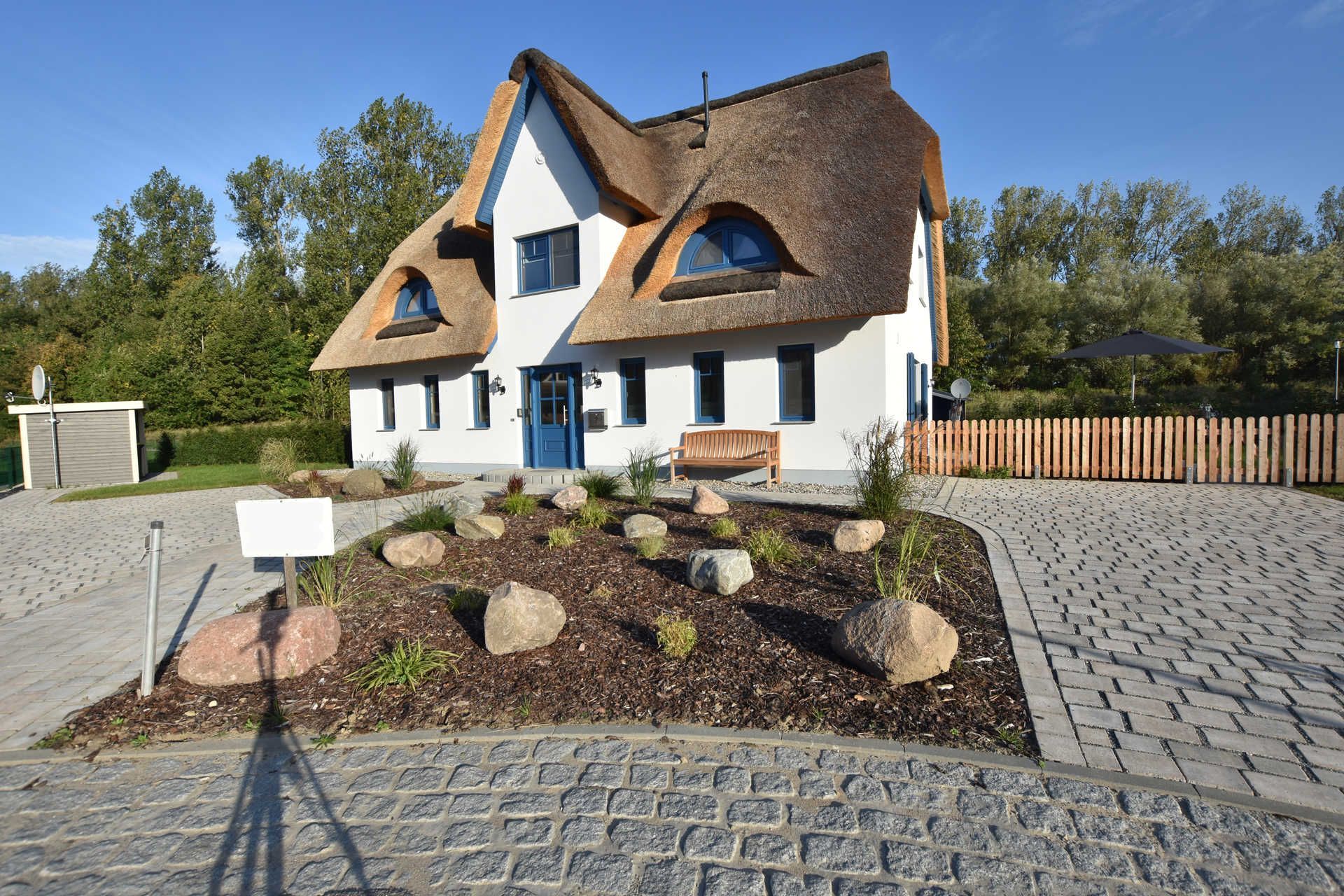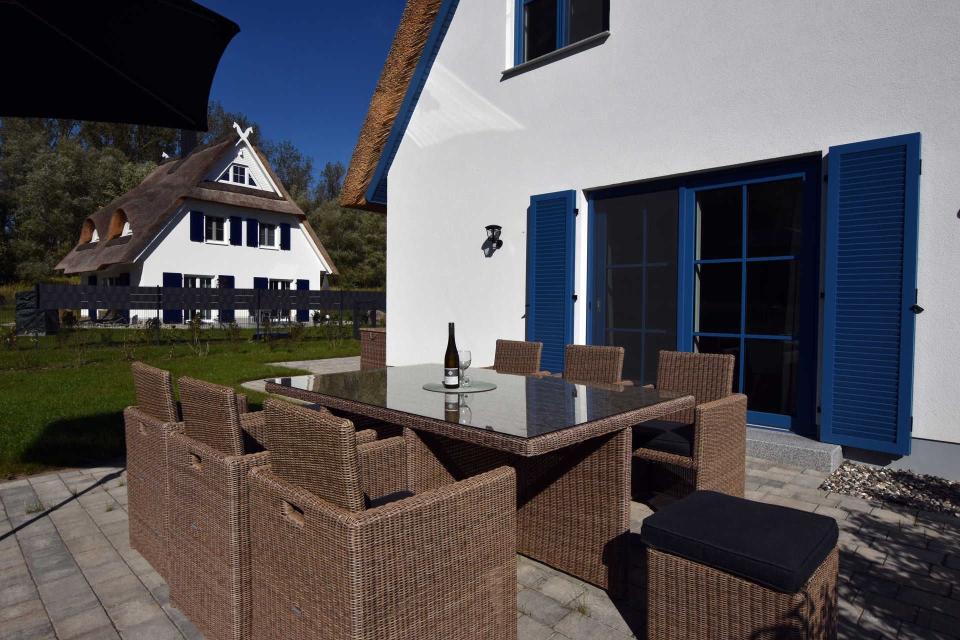 Reetdach-Ferienhaus im Ostseebad Rerik mit 2 Doppelhaushälften. Die Doppelhaushälfte links (96m²) ist für 6 Personen + 1 Baby geeignet.