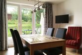 Die Ferienwohnung Peene befindet sich im Erdgeschoss des Hauses und ist ca. 59 m² groß. Das geräumige Wohnzimmer ist ausgestattet mit einem gemütlichen Sofa, Sessel zum Lesen und Fernsehen, mit einem Fernseher und mit einem Radio, sowie mit einem Esstisch und vier Stühlen. Durch das große Terrassenfenster haben Sie einen schönen Ausblick ins Grüne. Die offene Küchenzeile verfügt über eine Ausstattung zum alltäglichen Kochen: Geschirr, Kochgeschirr, Ceranfeld, Backofen, Kühlschrank, Spülmaschine, Mikrowelle, Kaffeemaschine, Wasserkocher und Toaster.
