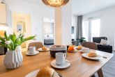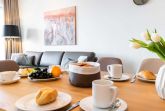 Ihr Urlaubsmorgen beginnt in einem innenliegenden, modernen Duschbad mit Waschbecken, WC und Handtuchheizkörper. Die Raumtemperatur im gesamten Appartement lässt sich über eine Fußbodenheizung steuern. Wir empfangen Sie im Hotelcharakter ähnlichem Stil. Somit sind bei Anreise die Betten für 2 Personen bereits bezogen und Handtücher liegen bereit. Eine Belegung ist mit maximal 4 Personen möglich. Für Gäste, die mit dem PKW anreisen bietet das Parkhaus im Alten Hafen in 300 Meter Stellplätze gegen Gebühr. Haustiere sind in der Nichtraucherwohnung nicht gestattet.