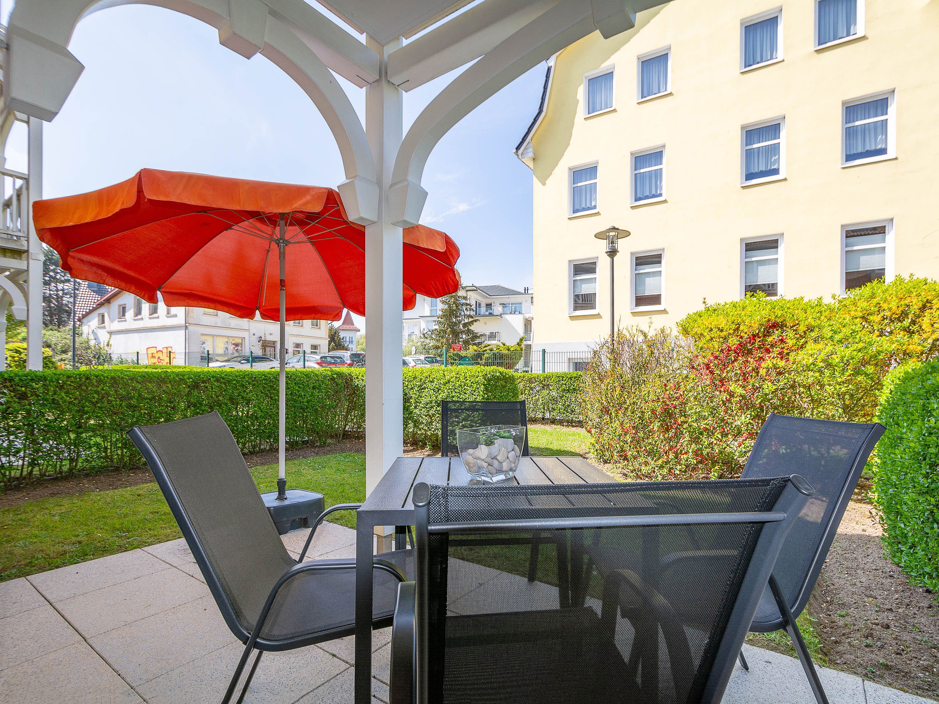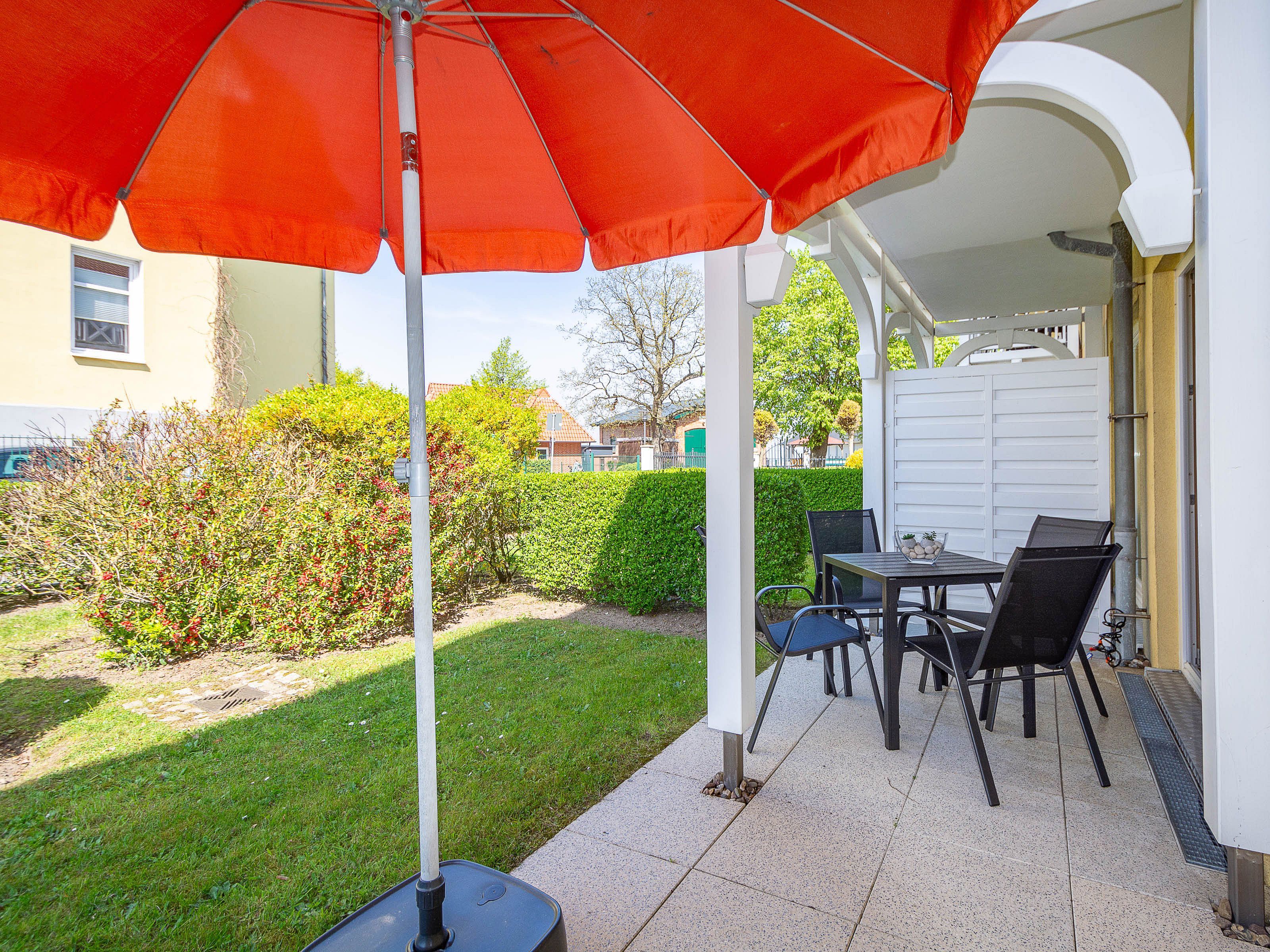 Von hier betreten Sie die möblierte Terrasse (mit Sonnenschirm und Tisch mit 4 Stühlen), die nach Nord-Westen ausgerichtet ist und zum Verweilen einlädt. Hier können Sie Sonne tanken, relaxen und den Abend nach einem schönen Tag am Meer ausklingen lassen.