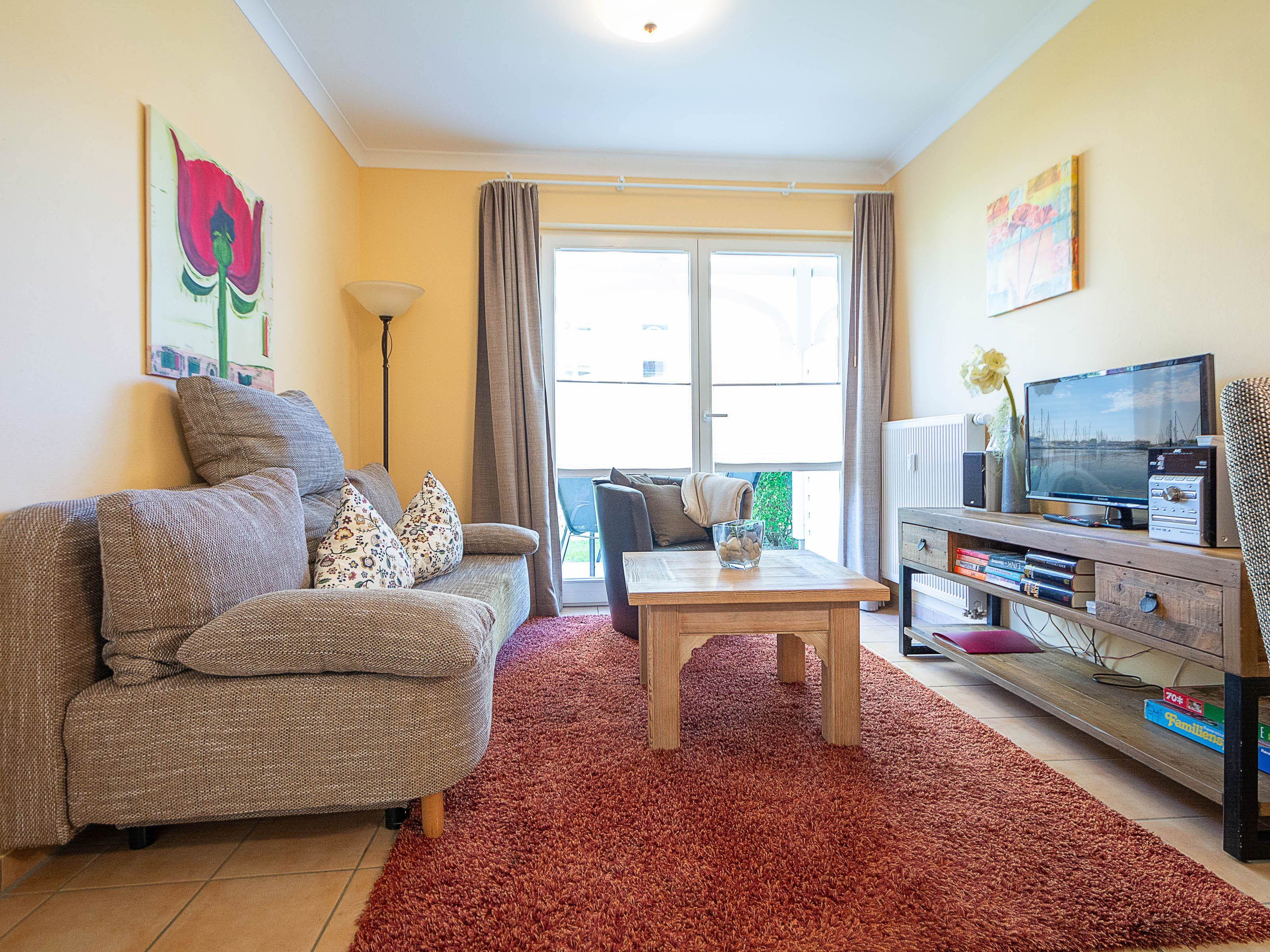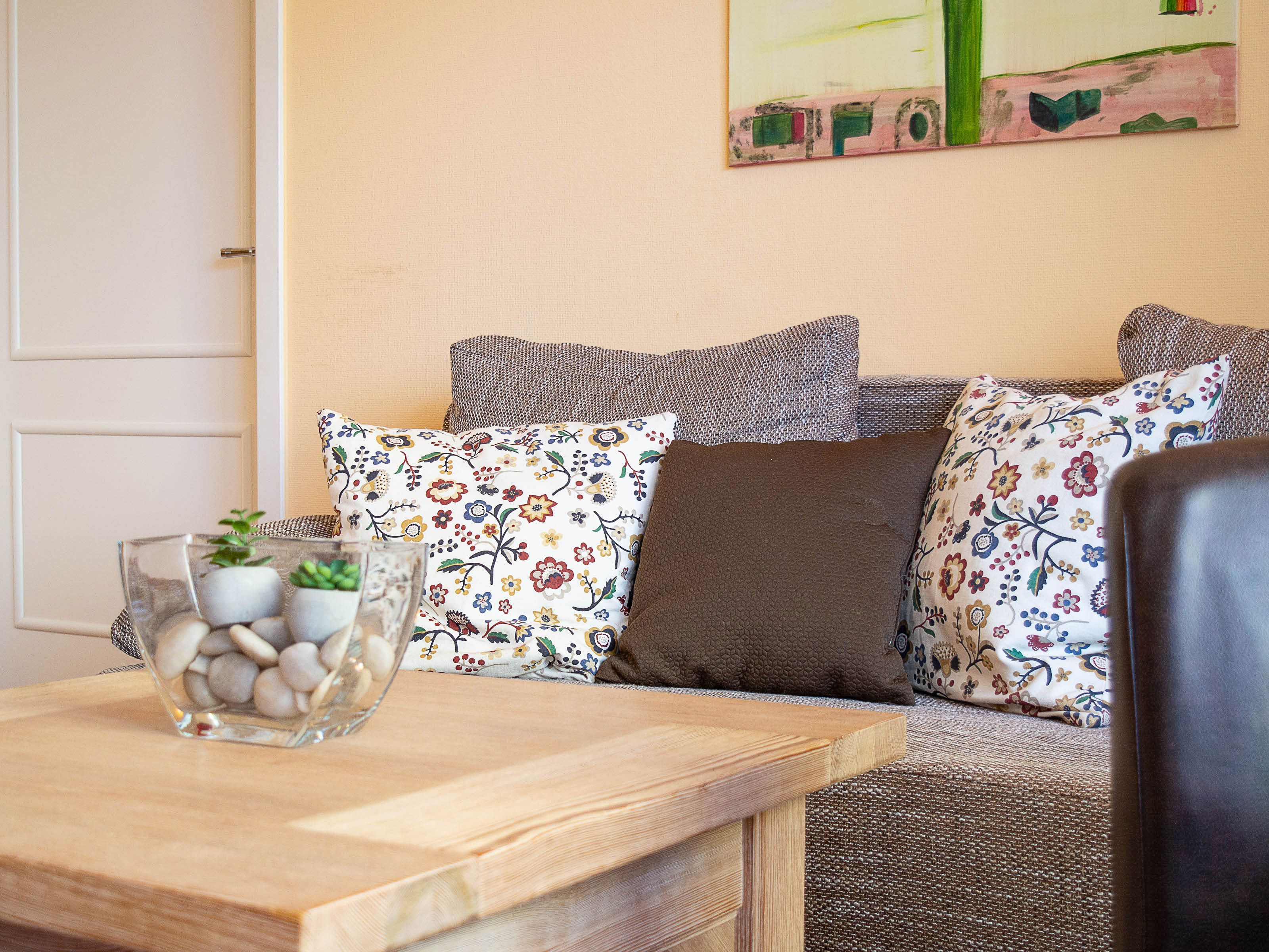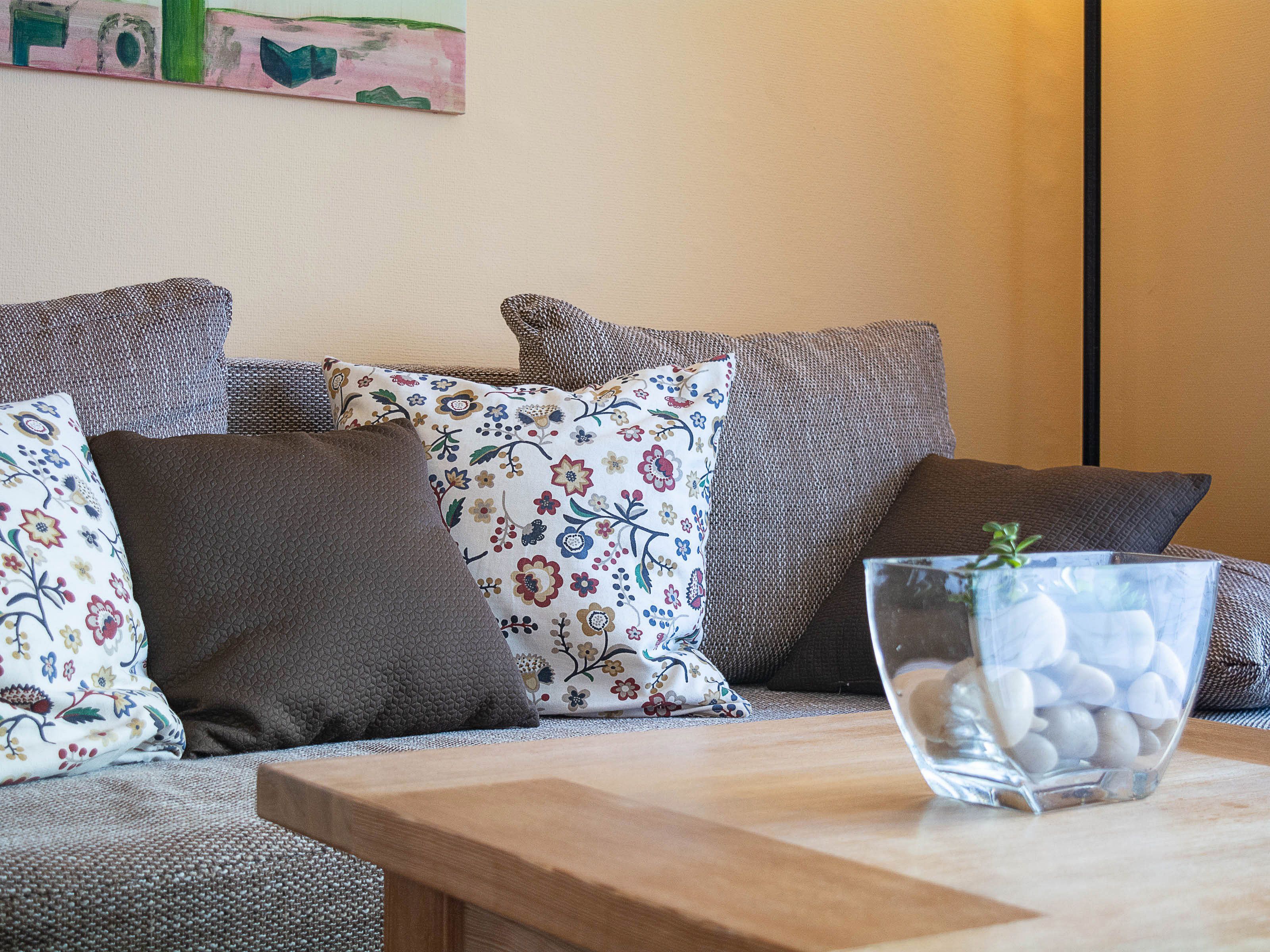 Der geschmackvoll eingerichtete Wohnbereich ist mit einer gemütlichen Couchgarnitur und einem 32-Zoll Flatscreen-TV eingerichtet. Die Couch können Sie mit nur wenigen Handgriffen in einen bequemen Schlafplatz für 2 Personen (160cm Breite) umwandeln.