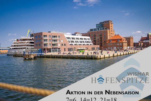 Direkt am Alten Hafen der Hansestadt Wismar, befindet sich als Nachbargebäude zum restaurierten Ohlerich Speicher die neu erbaute Luxus Ferienwohnanlage “Hafenspitze“. Es erwarten Sie insgesamt 39 hotelähnliche, exklusive Ferienappartements jeweils mit Balkon, Loggia oder Terrasse. Bei den exzellenten Appartements handelt es sich um 2- und 3-Zimmer Wohnungen von 42qm bis 99qm Wohnfläche in hochwertiger Ausstattung. Alle Appartements verfügen über Fußbodenheizung. Die Wohneinheiten unterteilen sich über drei Geschosse und sind bequem mit dem Fahrstuhl erreichbar. Einige der Feriendomizile sind barrierearm konzipiert. Kostenfreie WLAN-Nutzung ist selbstverständlich. Fahrradabstellmöglichkeit in begrenzter Anzahl sind vorhanden. Jede Ferienwohnung bietet die Aussicht auf das Hafengebiet und die Ostsee. In der Hafenspitze befinden sich zudem eine BAIS-Gäste-Rezeption sowie Gastronomie und diverse kleine Shops. Sie verbringen Ihren Aufenthalt in maritimer Umgebung und gelangen in wenigen Gehminuten zur Altstadt von Wismar mit historischen Bauten und Kirchen der Backsteingotik mit Aussichtsplattform und Blick über die Hansestadt.