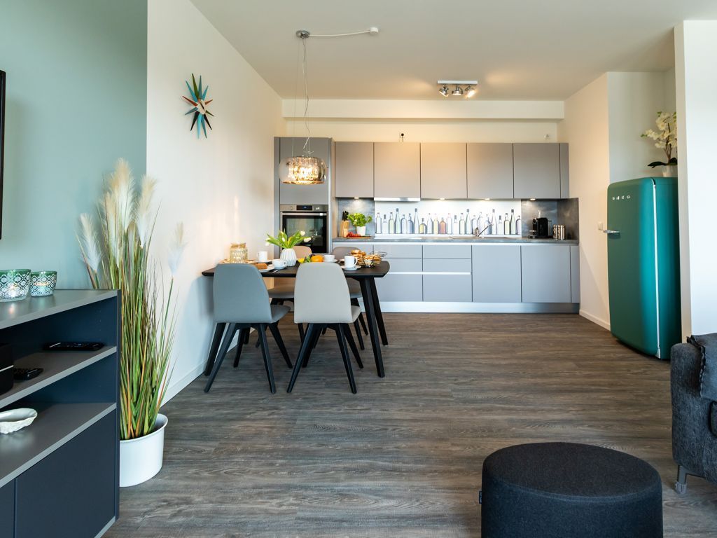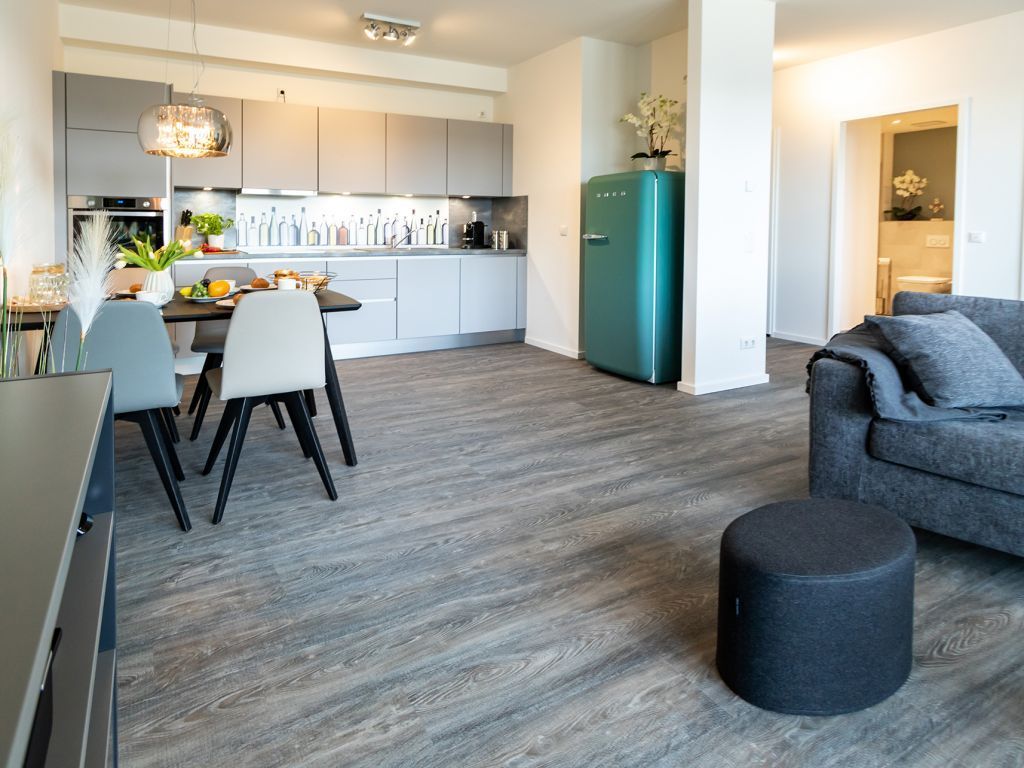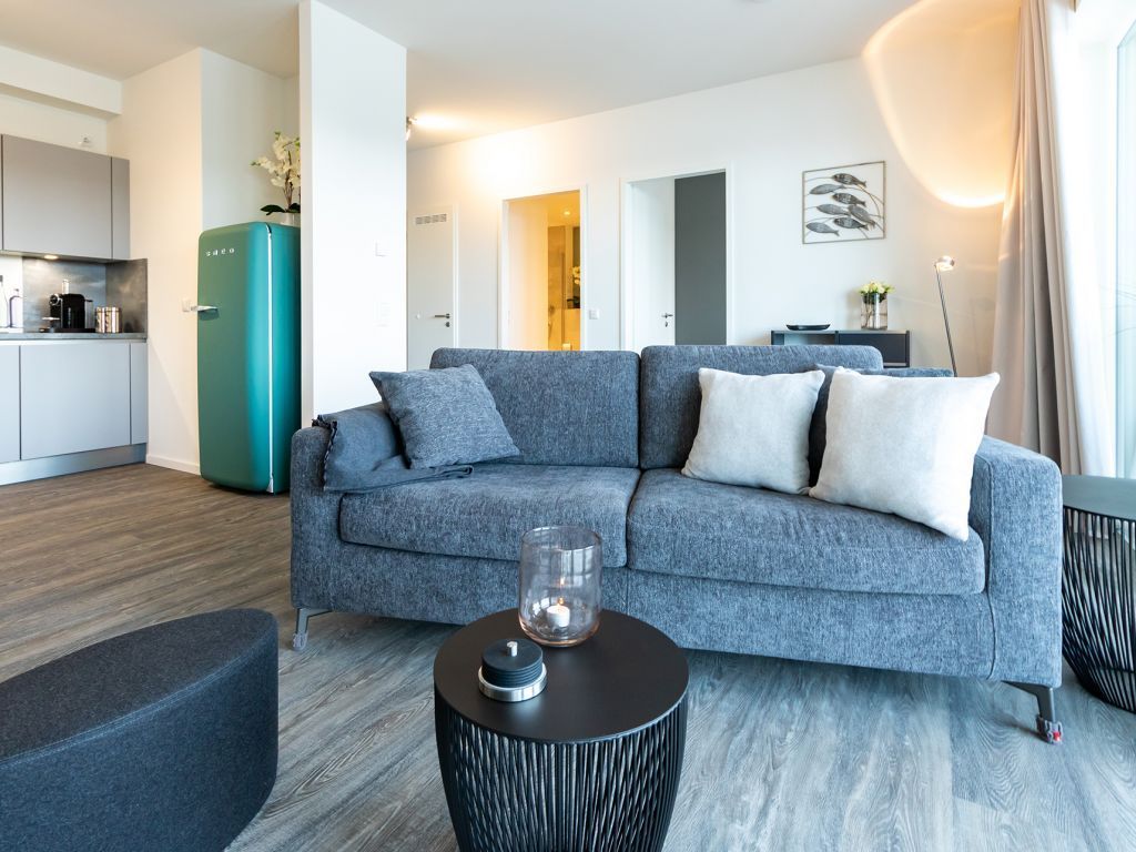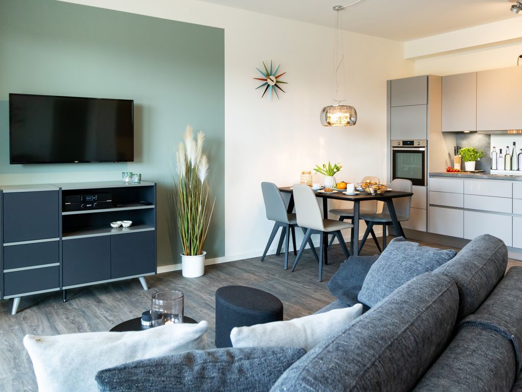 Ein Komfort Schlafsofa ermöglicht zwei zusätzliche Schlafplätze. Zudem bieten internetfähiges Fernsehen und Radio mit Hotelmodus Abwechslung. Der Internetzugang über WLAN ist inkludiert. Für gemeinsame Mahlzeiten, welche Sie in der hochwertigen, voll ausgestatteten Wohnküche zubereiten, befindet sich auch ein großzügiger Esstisch im Wohnbereich. Erholsame Nächte verbringen Sie in einem separaten Schlafzimmer mit Doppelbett und Garderobenschrank.