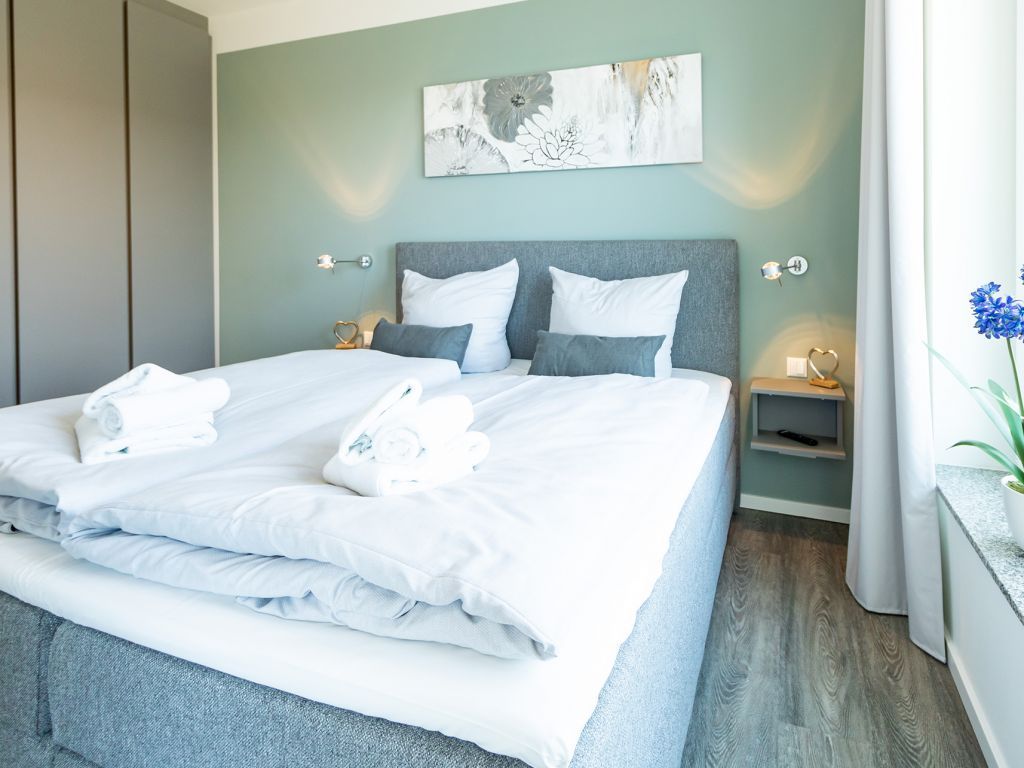 Das innenliegende Duschbad ist neuwertig und besitzt einen bodengleichen Duscheinstieg, Waschtisch, WC und Handtuchheizkörper. Bei Anreise sind die Betten für 2 Personen bereits bezogen und Handtücher liegen ebenso bereit. Sollten Sie weitere Wäschepakete benötigen, so sind diese gegen Gebühr zu buchbar. Mit wohliger Wärme im gesamten Feriendomizil verwöhnt die regulierbare Fußbodenheizung.