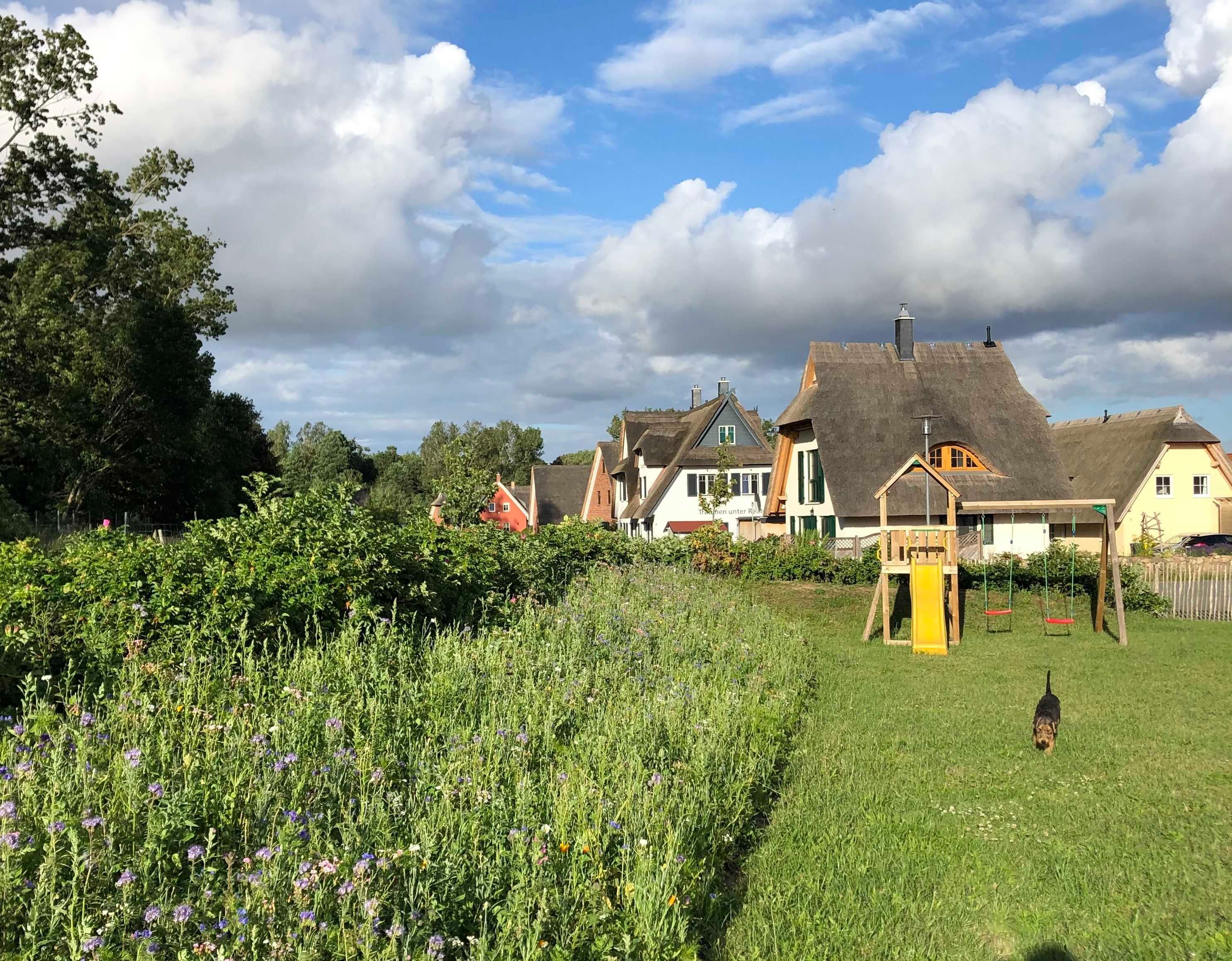Ostseeurlaub unter Reet im komfortablen 6-Raum-Ferienhaus für 10 Personen mit 5 Schlafräumen, 3 Duschbädern und 2 Sonnenterrassen. Im verkehrsruhigen Ferienpark am ruhigen Ortsrand des Ostseebades Rerik. Komplett umzäuntes 800m² Gartengrundstück, ideal für Urlaub mit Hund und Kindern und gemeinsam reisende Familien. Ruhige Lage direkt am Wander- und Radweg zum Ostseestrand ohne störenden Durchgangsverkehr.