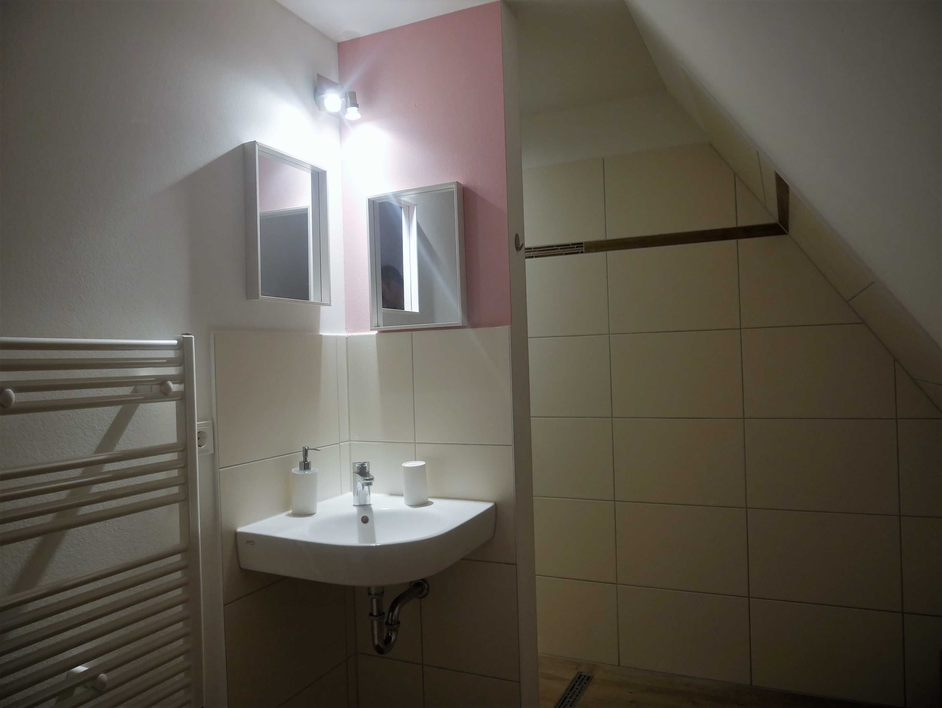 Infos für Gäste mit Handicap: Schlafzimmer 1 ist behindertenfreundlich, auch Duschbad 1 (keine Stufen, für Rollstuhlfahrer ebenerdig). Duschbad 1 - Tür mit 81 cm Breite, der Zugang zur Dusche ist nur 73 cm breit.  Zwischen Waschbecken und WC ist der engste Durchgang 90 cm, die Dusche hat innen eine Breite von 91 cm.