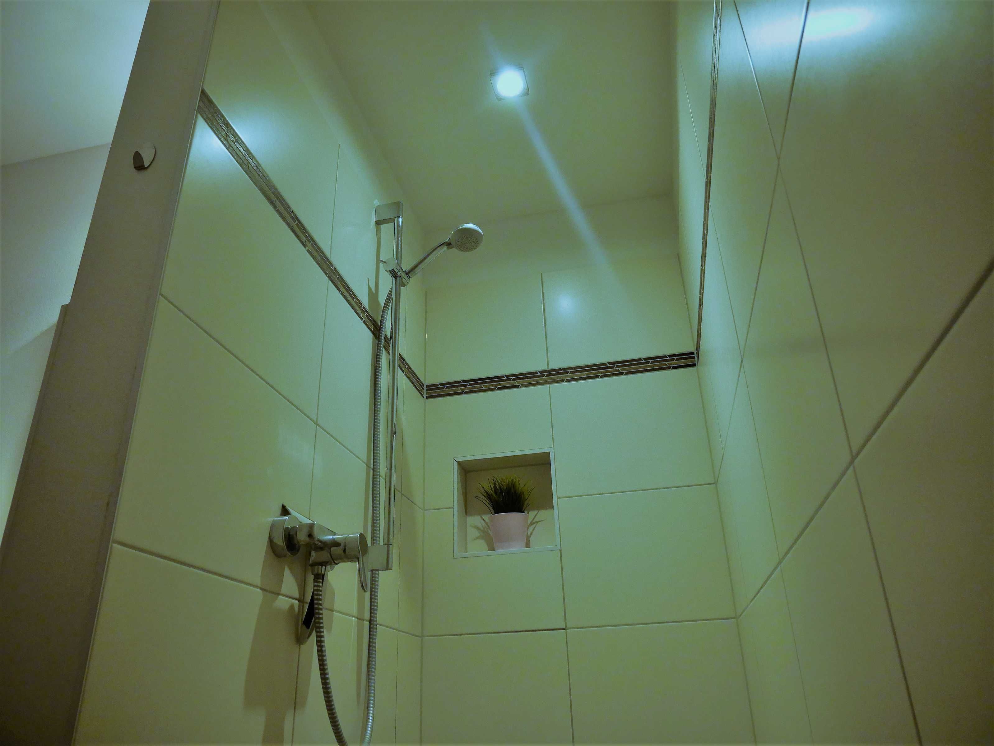 3. Duschbad mit ebenerdiger Dusche/ WC, angeschlossen ist die hauseigene Sauna mit Blick ins Grüne.