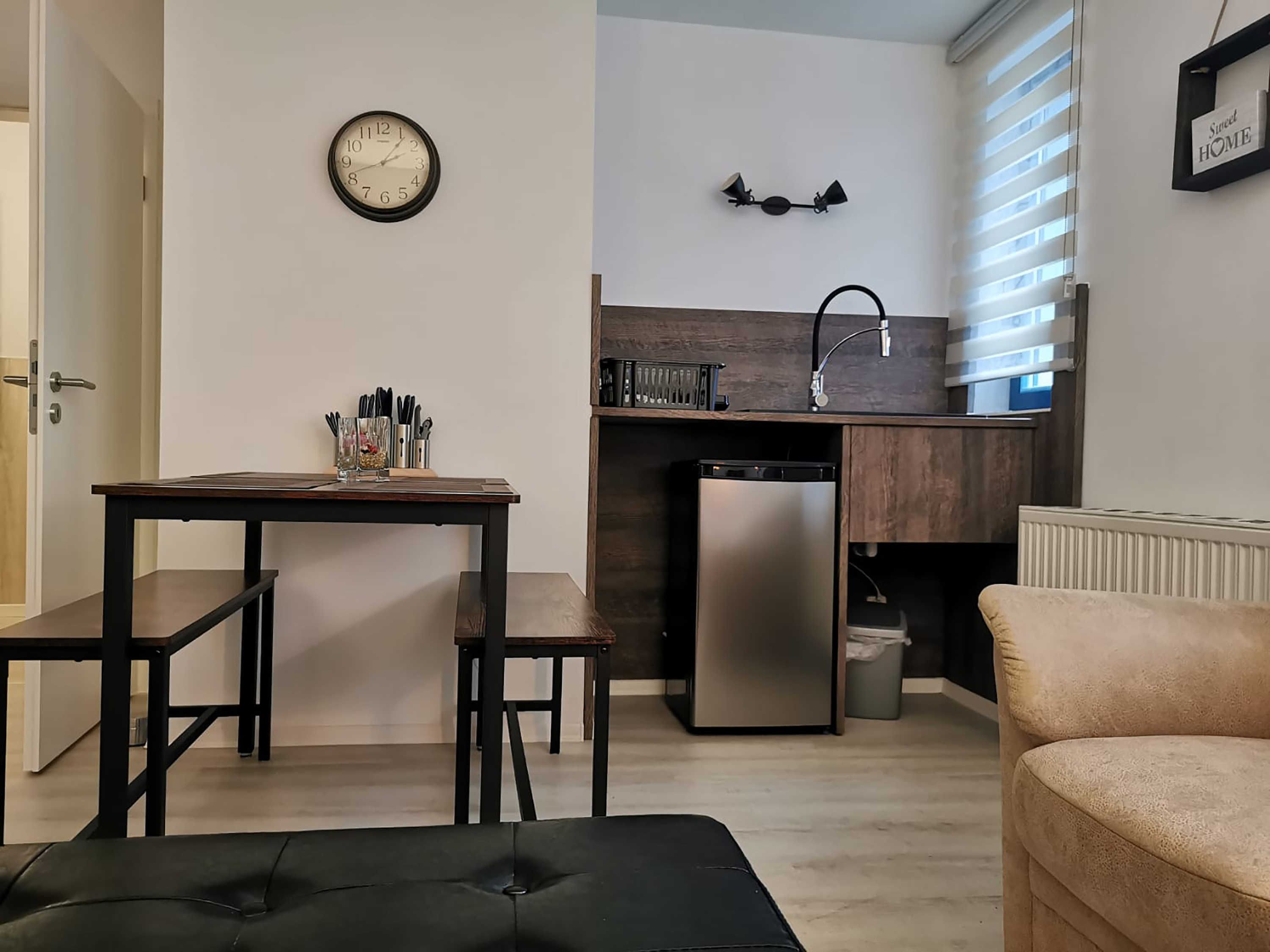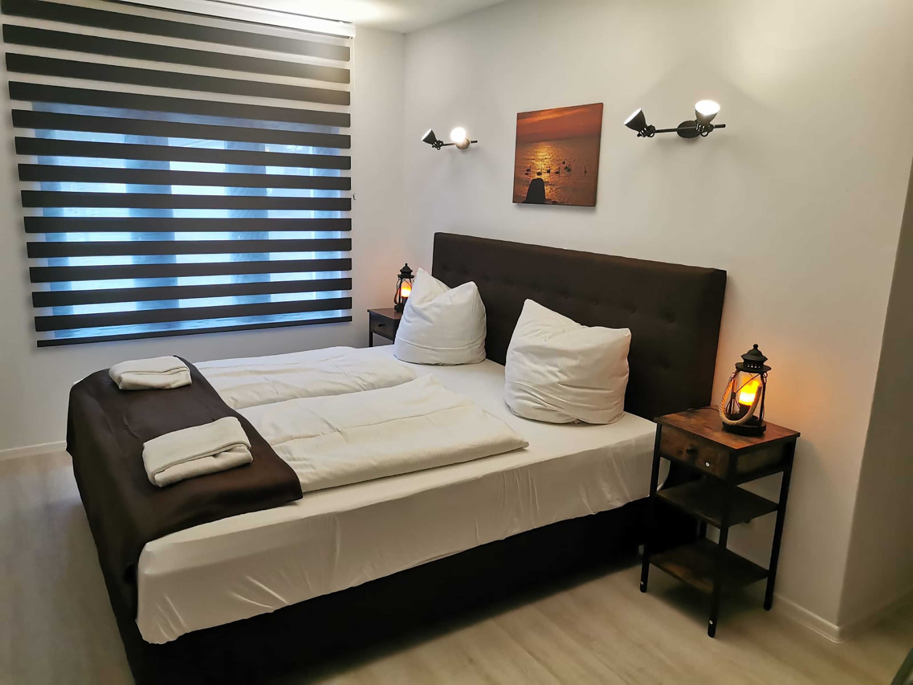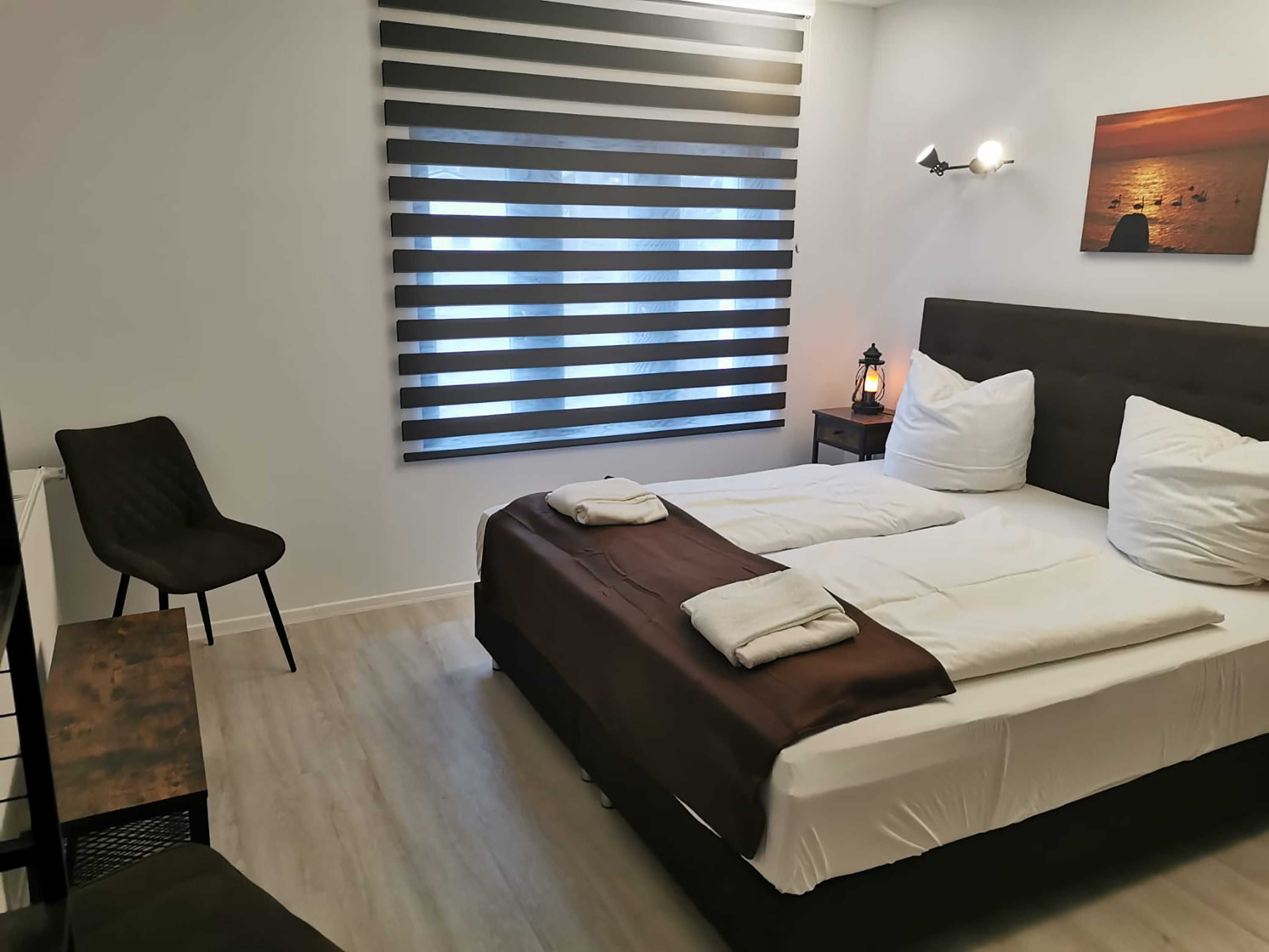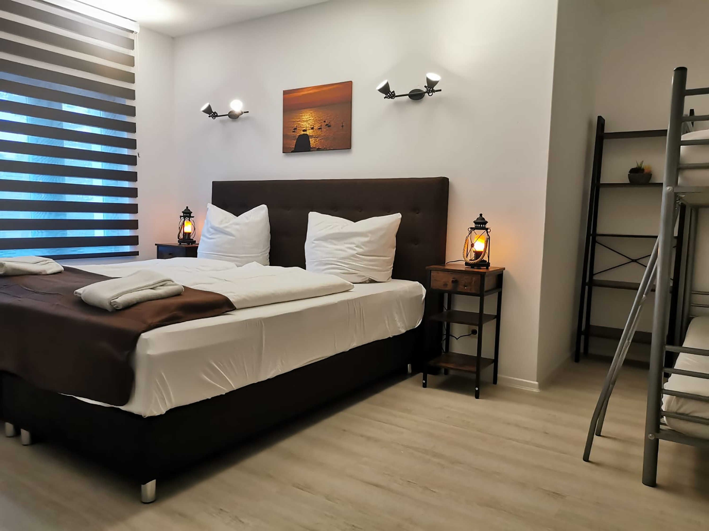 Die ca. 44 m² große Ferienwohnung mit Meerblick befindet im Gästehaus mit 5 Wohneinheiten. Sie verfügt über ein Wohnzimmer mit Küchenzeile, einem separatem Schlafzimmer, Flur, Bad mit Dusche und einer Terrasse. Das Wohnzimmer ist mit einer modernen Couch, TV, einem Esstisch und einer Küchenzeile mit Kühlschrank eingerichtet. Im Schlafzimmer befindet sich ein gemütliches Doppelbett und ein Etagenbett mit Kleiderschrank. Das freundliche Tageslichtbad hat eine Dusche und ein WC. Zum Entspannen und Sonne tanken lädt die Terrasse direkt vor der Wohnung ein.