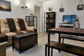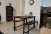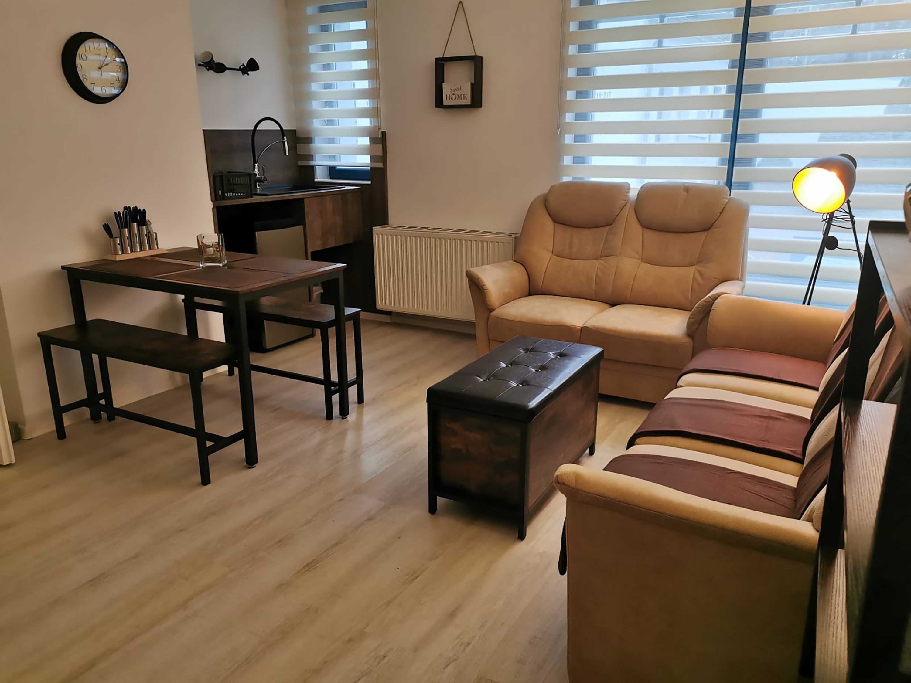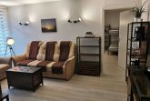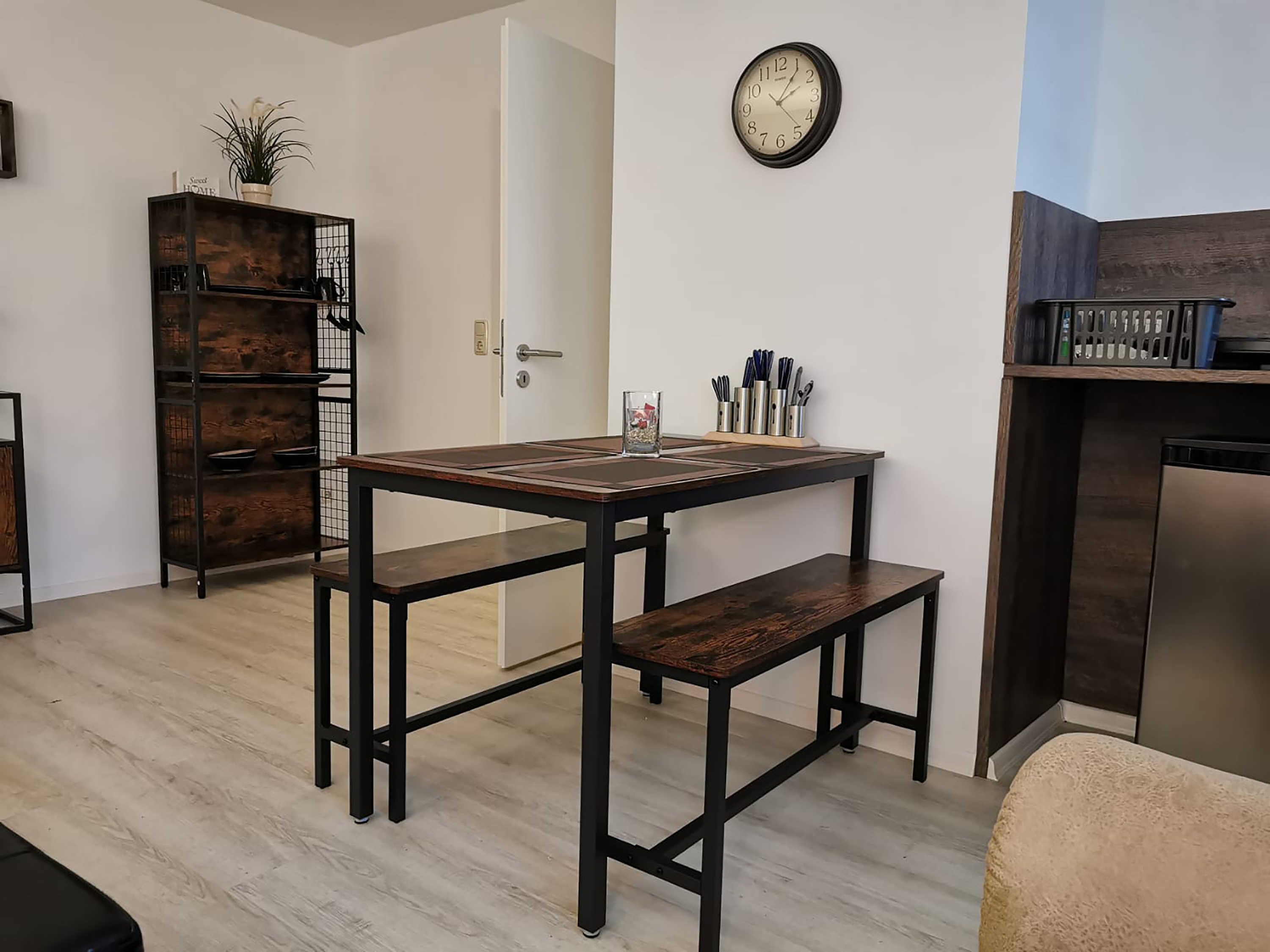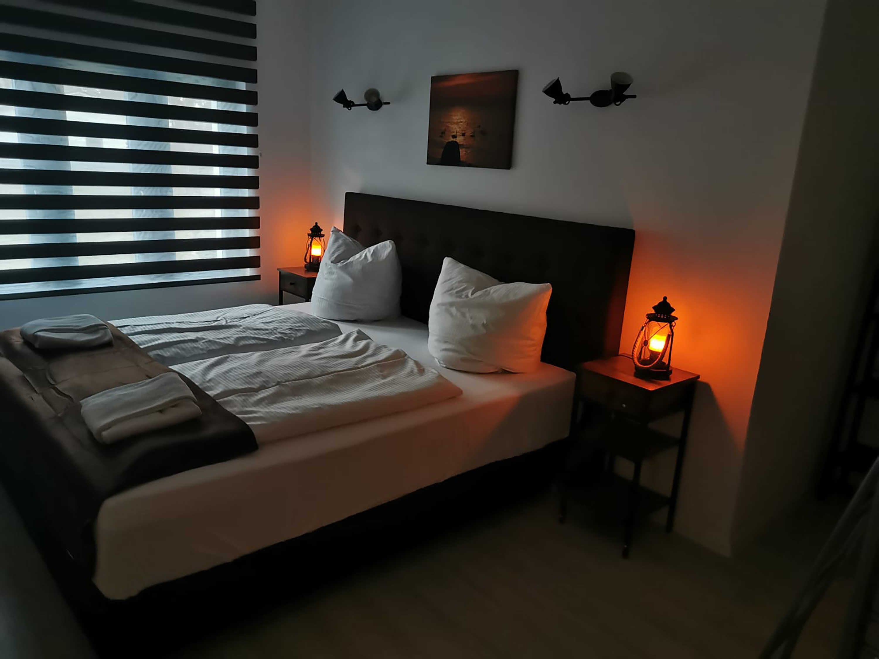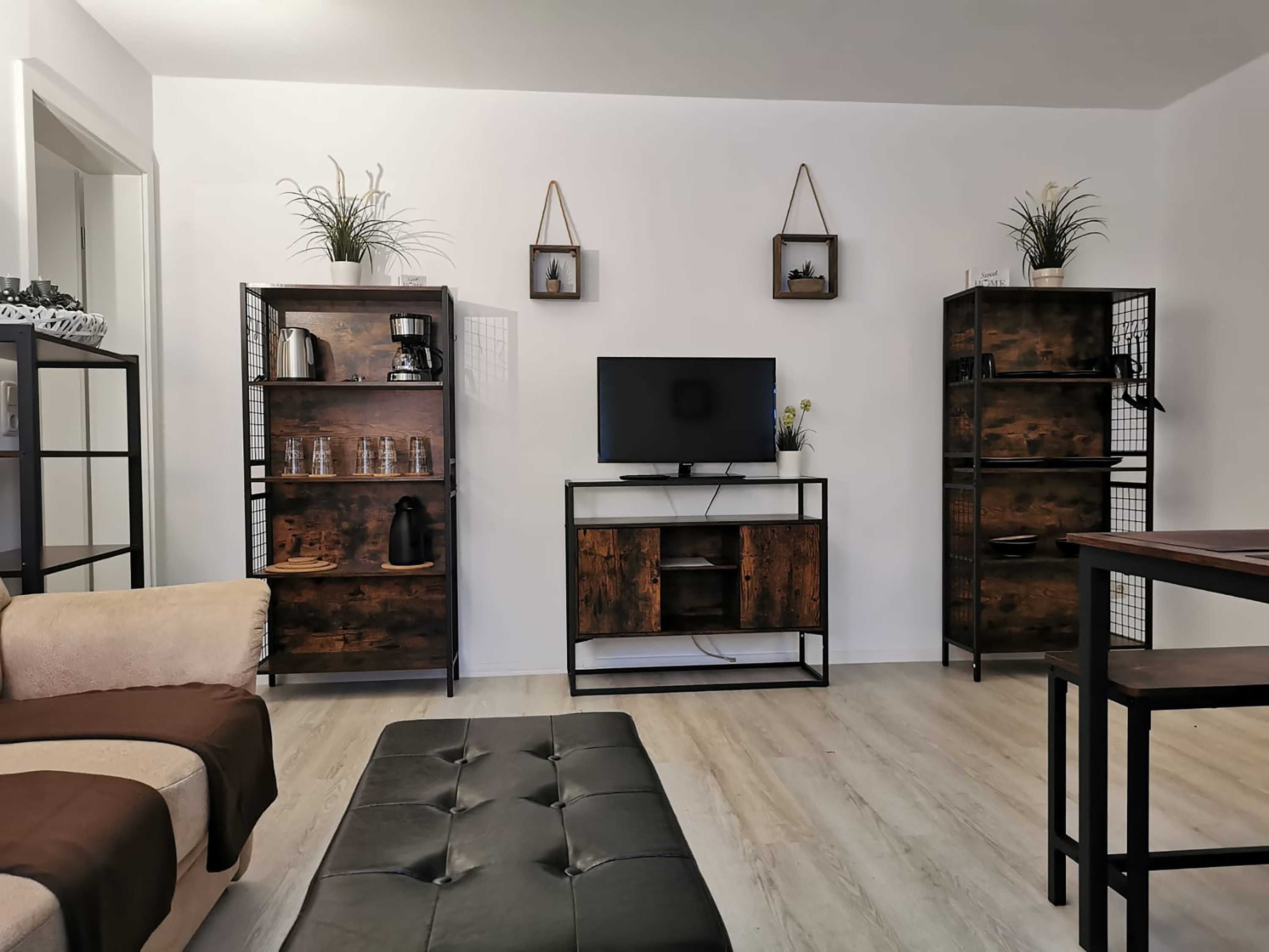 Die ca. 44 m² große Ferienwohnung mit Meerblick befindet im Gästehaus mit 5 Wohneinheiten. Sie verfügt über ein Wohnzimmer mit Küchenzeile, einem separatem Schlafzimmer, Flur, Bad mit Dusche und einer Terrasse. Das Wohnzimmer ist mit einer modernen Couch, TV, einem Esstisch und einer Küchenzeile mit Kühlschrank eingerichtet. Im Schlafzimmer befindet sich ein gemütliches Doppelbett und ein Etagenbett mit Kleiderschrank. Das freundliche Tageslichtbad hat eine Dusche und ein WC. Zum Entspannen und Sonne tanken lädt die Terrasse direkt vor der Wohnung ein.