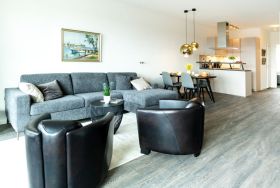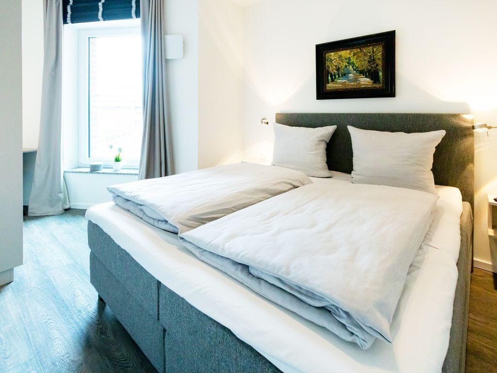 Eine voll ausgestattete, offene Küchenzeile ist integriert. Zwei separate Schlafzimmer sowie ein modernes Duschbad mit Fußbodenheizung sind vorhanden. Bei Ihrer Ankunft sind die Betten für 2 Personen bereits bezogen. Handtücher/Duschtücher sind ebenfalls für 2 Personen inklusive. Weitere Wäschepakete sind gegen Gebühr zu buchbar. Es handelt sich um eine Wohneinheit für Nichtraucher. Gegen Gebühr können Sie im öffentlichen Hafenparkhaus in ca. 300 Meter Ihr Fahrzeug parken.