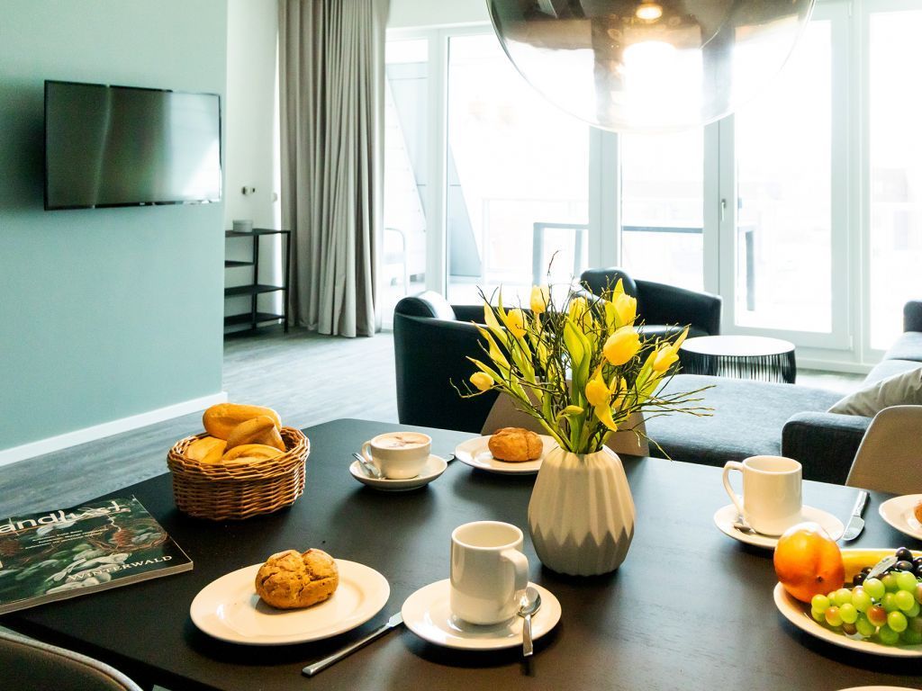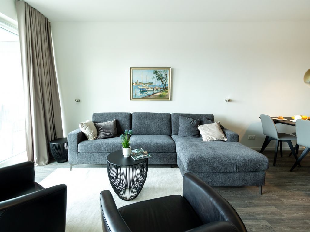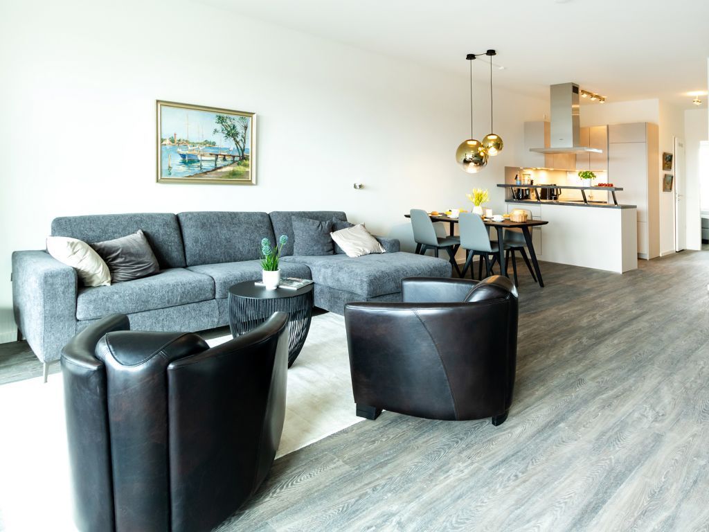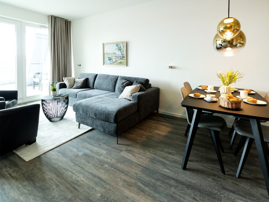 Die moderne 3-Zimmer-Wohnung Hafenspitze 35 mit Hafenflick Loggia besitzt eine geräumige Wohnfläche von 84qm und ist auf eine Belegung mit bis zu 4 Personen ausgerichtet. Mit dem Personenaufzug, welcher in die 2. Etage fährt, erreichen Sie dann über das Treppenhaus Ihr schickes Urlaubsdomizil im 3. Obergeschoss. Mit Wohlfühlkomfort empfängt Sie ein heller Wohn-Essbereich mit bodentiefen Fenstern sowie einer Komfort Sitzgarnitur, einem Esstisch zudem Flachbild Fernseher und Internetradio mit Hotelmodus.