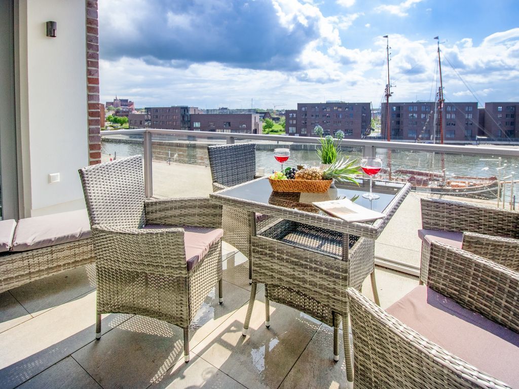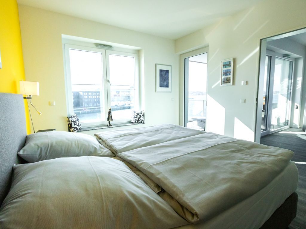 Hervorragendes 3-Zimmer Luxus Appartement in der Hafenspitze 29 mit Balkon und Ausblick zum Hafen. Ein Personenaufzug fährt Sie hinauf in die 3. Etage des Gebäudes. Mit bis zu 4 Personen genießen Sie auf einer Wohnfläche von 99qm einen perfekten Urlaub. Eine hochwertige Küchenzeile ist ebenso vorhanden, wie zwei separates Schlafzimmer und zwei moderne Badezimmer. Bei Ihrer Ankunft sind die Betten für 2 Personen bereits bezogen. Handtücher sind ebenfalls für 2 Personen inklusive. Es handelt sich um eine Nichtraucherwohnung. Gegen Gebühr können Sie im Parkhaus am Alten Hafen in ca. 300 Meter Ihr Fahrzeug abstellen.