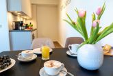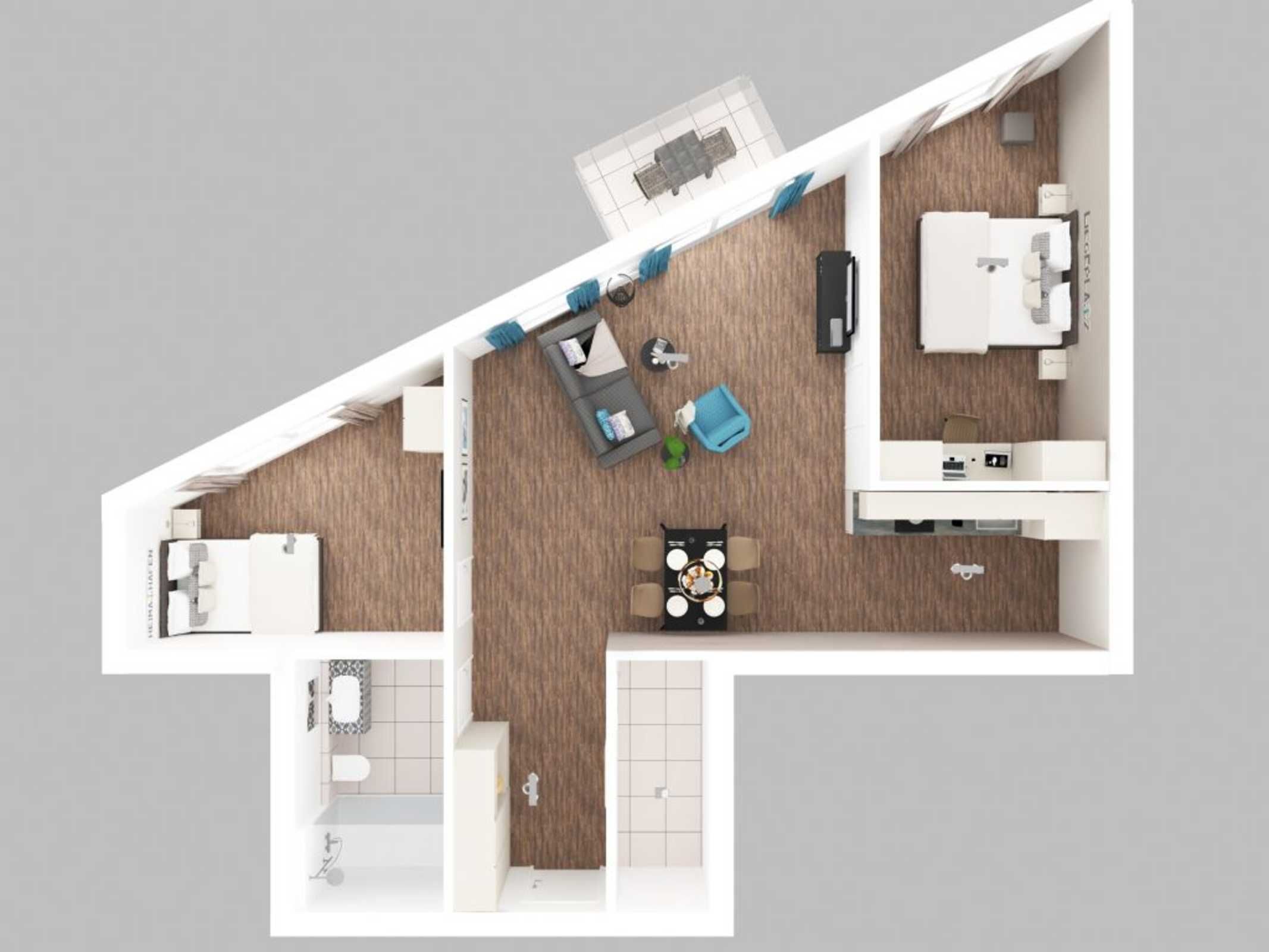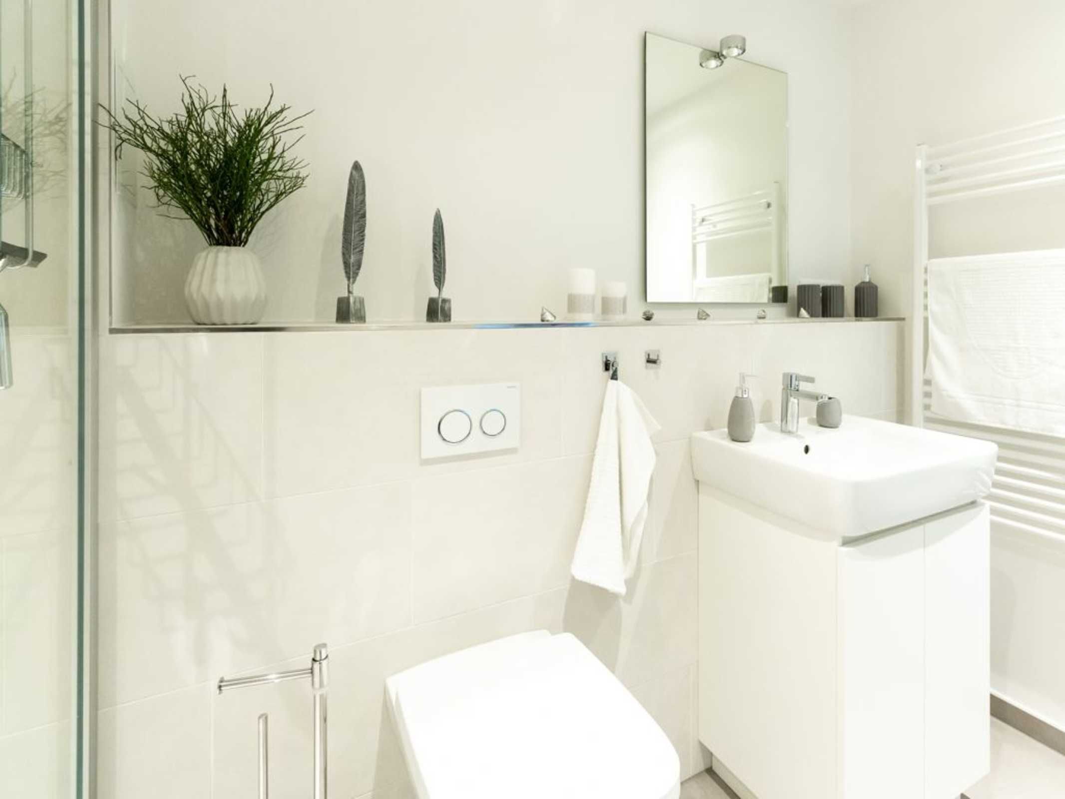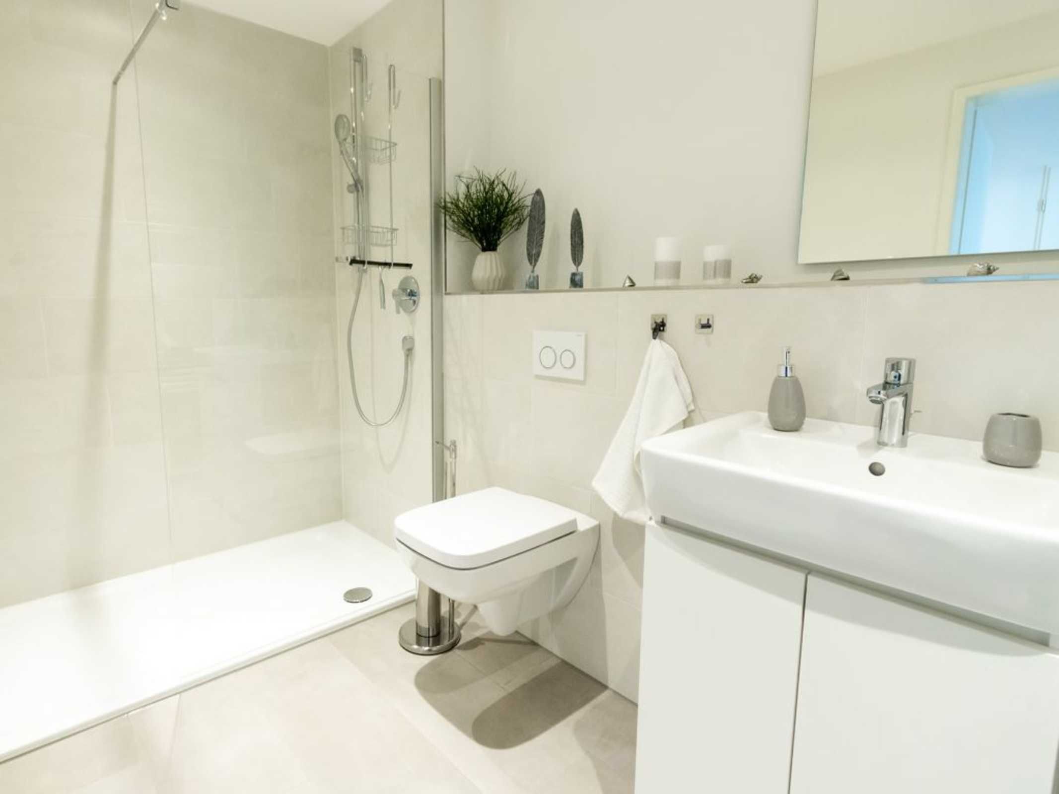 Eines der Schlafzimmer bietet ebenfalls einen Zugang zum Balkon. Selbstverständlich erwartet Sie in dieser Wohneinheit auch ein modernes Badezimmer mit ebenerdiger Dusche, Waschtisch, WC, Handtuchheizkörper und Fußbodenheizung. Wir möchten an diese Stelle darauf aufmerksam machen, dass es sich bei diesem Angebot um eine Nichtraucherwohnung handelt. Bei Ihrer Anreise sind die Betten als inklusive Leistung für 2 Personen bereits bezogen und auch Hand/ Duschtücher liegen schon bereit.