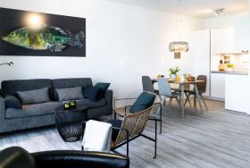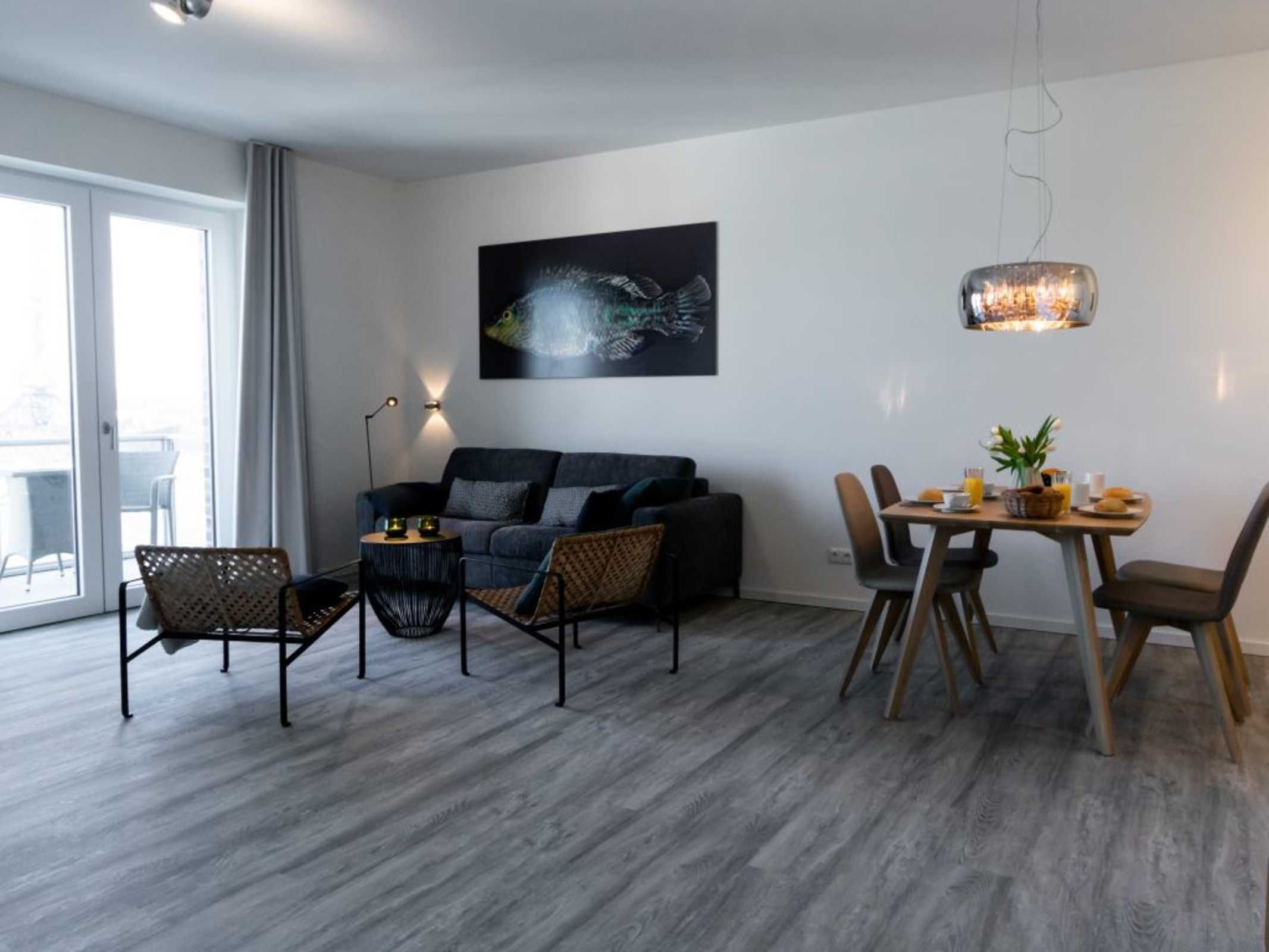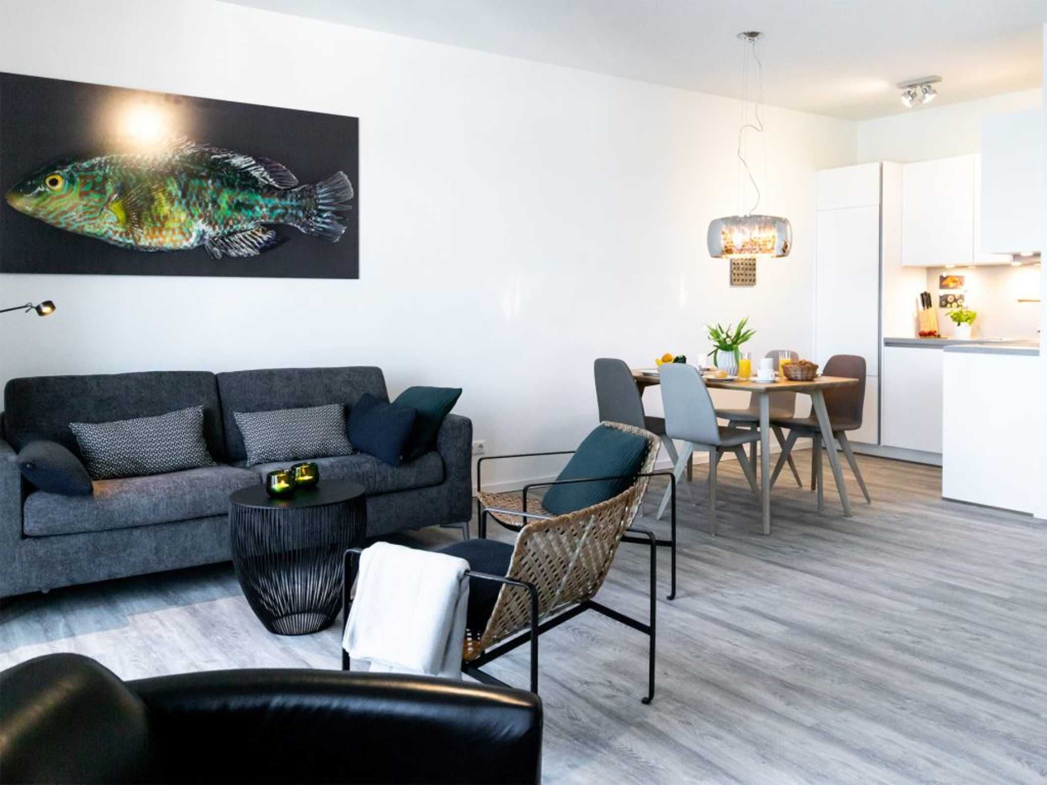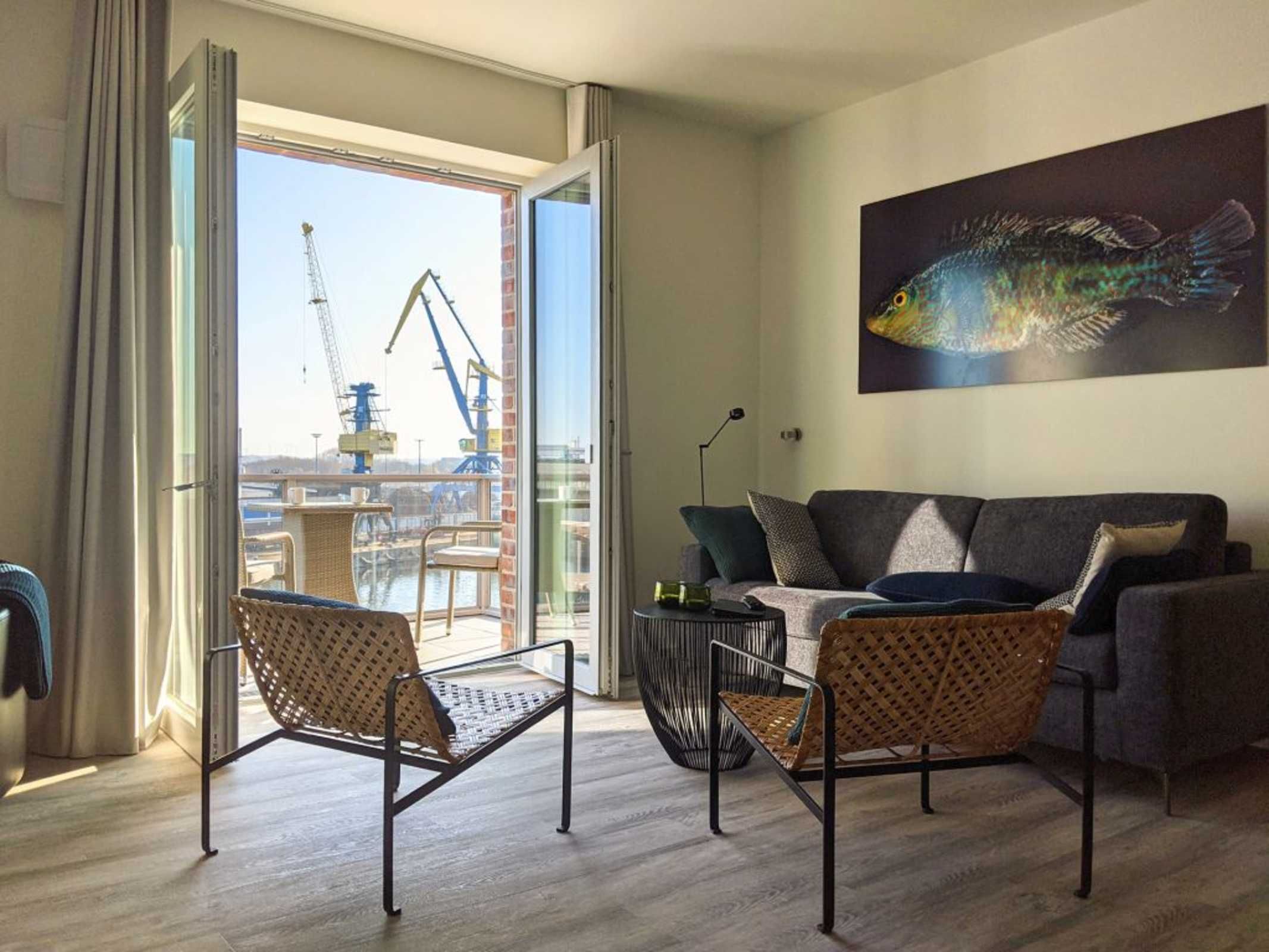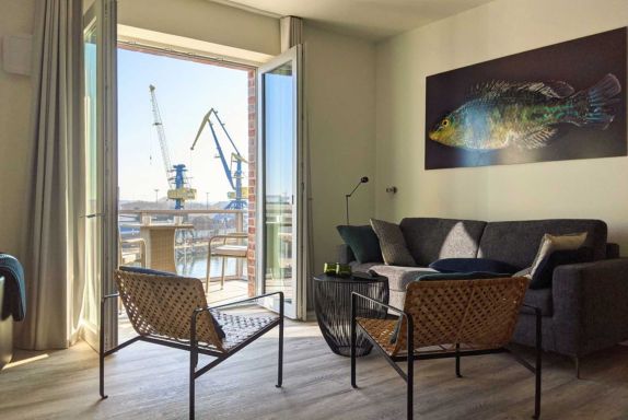 Urlaub in exklusiver Ostseelage, sozusagen direkt an der Kaikante. Die 2-Zimmer-Ferienwohnung Hafenspitze 31 mit Balkon in nördliche Ausrichtung empfängt Sie mit einer geräumigen Wohnfläche von 63qm. Die sehr hochwertige Ausstattung bietet Ihnen eine perfekte Auszeit für bis zu 4 Personen. Der helle Wohn-Essbereich ist komfortabel und einladend möbliert, so dass Sie sich nach Ihrer Ankunft sofort wohlfühlen werden.
